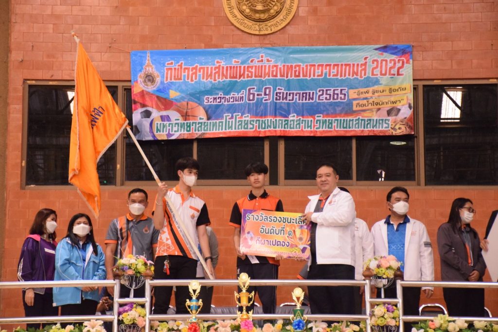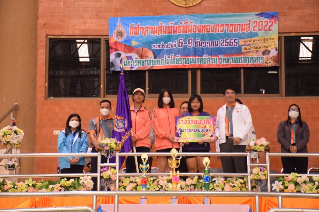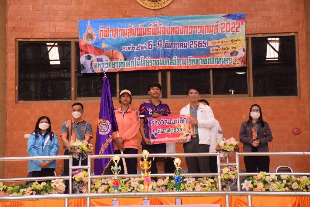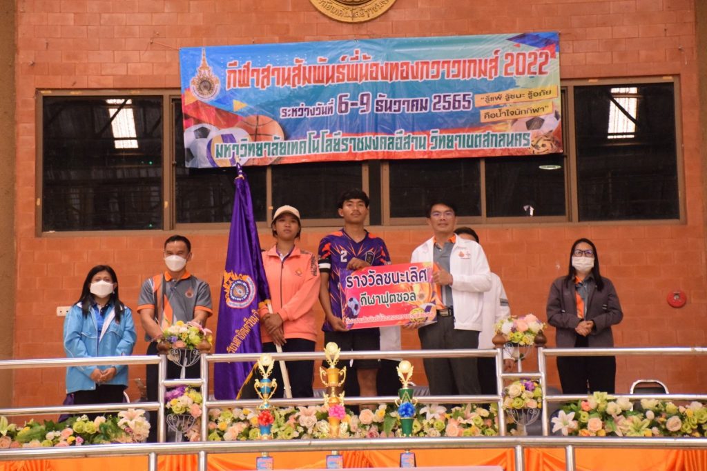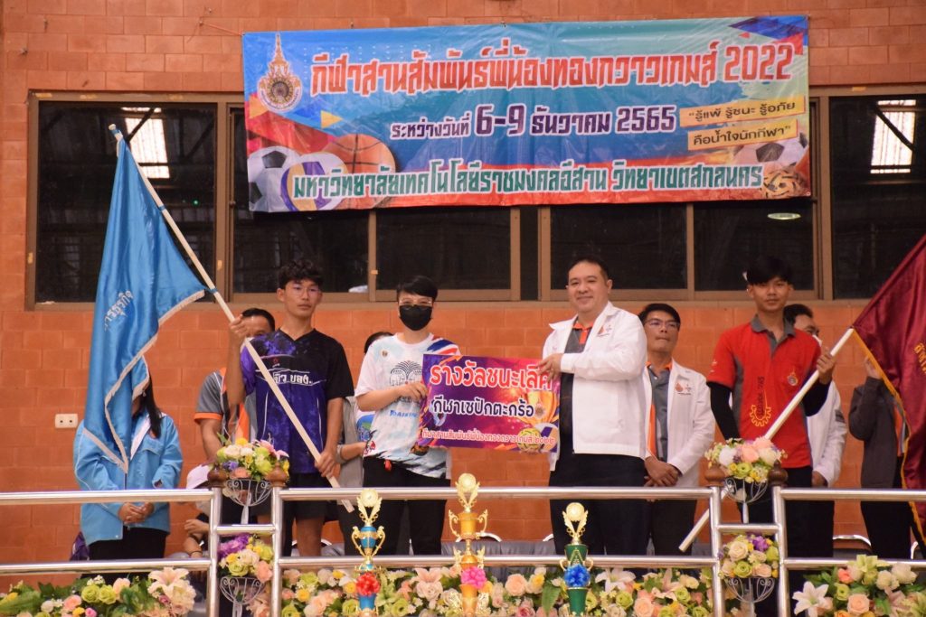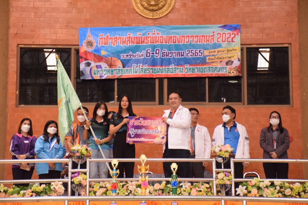 วันที่ 9 ธันวาคม 2565 สโมสรนักศึกษาคณะอุตสาหกรรมและเทคโนโลยี จัดกิจกรรมการแข่งขัน “กีฬาทองกวาวเกมส์ 2022” ประจำปี 2565 ณ อาคารกิจการนักศึกษา มหาวิทยาลัยเทคโนโลยีราชมงคลอีสาน วิทยาเขตสกลนคร โดยมีการดำเนินการแข่งขันในระหว่าง วันที่ 6-9 ธันวาคม 2565 การแข่งขันประกอบด้วย กีฬาฟุตซอล วอลเลย์บอล เซปักตะกร้อ และเปตอง โดยมีวัตถุประสงค์เพื่อเชื่อมความสัมพันธ์สร้างความรักสามัคคีของนักศึกษา ส่งเสริมสุขภาพกายและสุขภาพจิตที่ดี ปลูกฝังความมีน้ำใจเป็นนักกีฬาให้แก่นักศึกษาอีกด้วย ในการนี้ ผศ.ดร.พรเทพ ปัญญาแก้ว รองคณบดีฝ่ายวิชาการและวิจัย ให้เกียรติเป็นประธาน ในพิธีมอบรางวัลแก่ผู้ชนะการแข่งขันในครั้งนี้