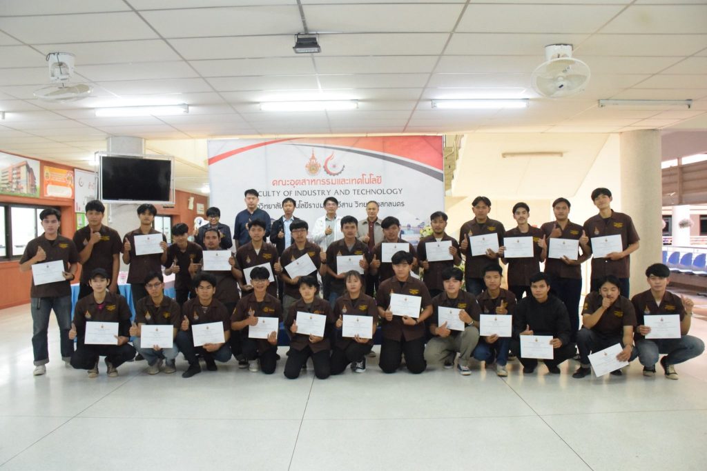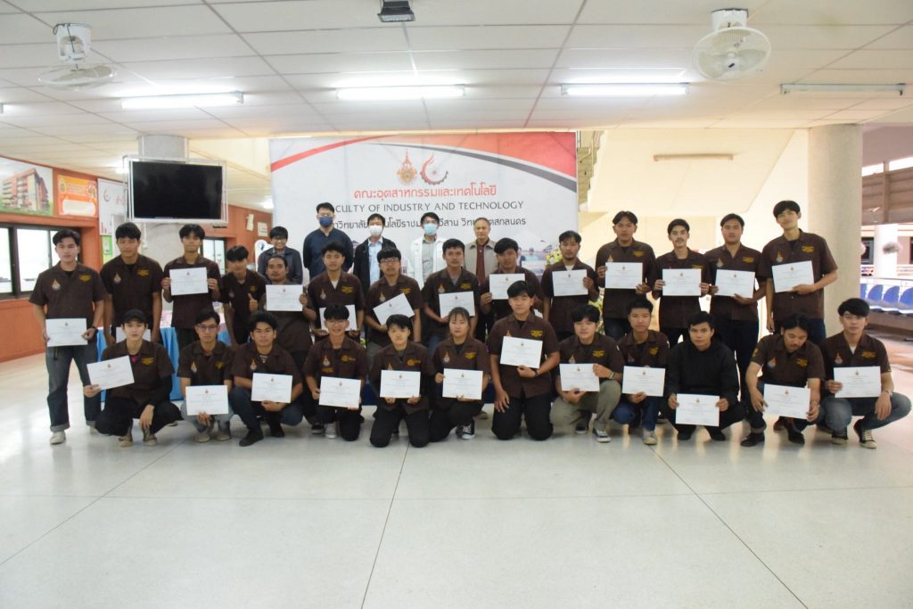 วันที่ 11-14 ธันวาคม 2565 คณะอุตสาหกรรมเละเทคโนโลยี มทร.อีสาน วิทยาเขตสกลนคร จัดกิจกรรมอบรมให้ความรู้ก่อนทดสอบมาตรฐานฝีมือแรงงาน สาขาช่างเครื่องปรับอากาศในบ้าน และการพาณิชย์ขนาดเล็ก ระดับ 1 ณ สาขาวิศวกรรมเครื่องกล คณะอุตสาหกรรมและเทคโนโลยี โดยมีวัตถุประสงค์เพื่อยกระดับความรู้ให้แก่ผู้ที่จะเข้ารับการทดสอบมาตรฐานฝีมือแรงงาน สาขาช่างเครื่องปรับอากาศในบ้านและการพาณิชย์ขนาดเล็ก ระดับ 1 โดยได้รับเกียรติจาก ผศ.ดร.สัณหวัจน์ ทองแดง อาจารย์ ดร.อมร ดอนเมือง ผศ.โอสถ คนซื่อ และ ผศ.ไพรทูล ไชยวงศา อาจารย์ประจำสาขาวิศวกรรมเครื่องกล เป็นวิทยากร ในการนี้ อาจารย์จารุวัฒน์ ถาวรไพศาลชีวะ รองคณบดีฝ่ายพัฒนานักศึกษา ให้เกียรติเป็นประธานมอบใบประกาศแก่ผู้ผ่านการอบรมครั้งนี้ โดยมีผู้เข้าร่วมอบรมในครั้งนี้ จำนวน 26 คน
