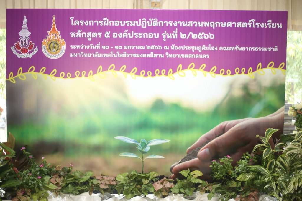 วันที่ 10 – 13 มกราคม 2566 คณาจารย์คณะอุตสาหกรรมและเทคโนโลยี เข้าร่วมโครงการฝึกอบรมปฏิบัติการงานสวนพฤกษศาสตร์โรงเรียน หลักสูตร 5 องค์ประกอบ รุ่นที่ 2/2566 ภายใต้โครงการอนุรักษ์พันธุกรรมพืช อันเนื่องมาจากพระราชดำริ สมเด็จพระเทพรัตนราชสุดาฯ สยามบรมราชกุมารี (อพ.สธ.) ร่วมกับศูนย์ประสานงานโครงการ อพ.สธ. มทร.อีสาน วิทยาเขตสกลนคร ณ ห้องประชุมภูส้มโฮง คณะทรัพยากรธรรมชาติ มทร.อีสาน วิทยาเขตสกลนคร เพื่อให้ ผู้เข้ารับการอบรมได้รับความรู้ ความเข้าใจ เเนวทางการดำเนินงานตามนโยบาย ทิศทาง เป้าหมายของโครงการอนุรักษ์พันธุกรรมพืชฯ โดยคณาจารย์คณะอุตสาหกรรมและเทคโนโลยีร่วมเป็นคณะกรรมการดำเนินงานและเป็นวิทยากร ในการนี้ ผศ.น.สพ.ดร.ชเวง สารคล่อง รองอธิการบดีประจำวิทยาเขตสกลนคร ให้เกียรติเป็นประธานในพิธีเปิดโครงการ