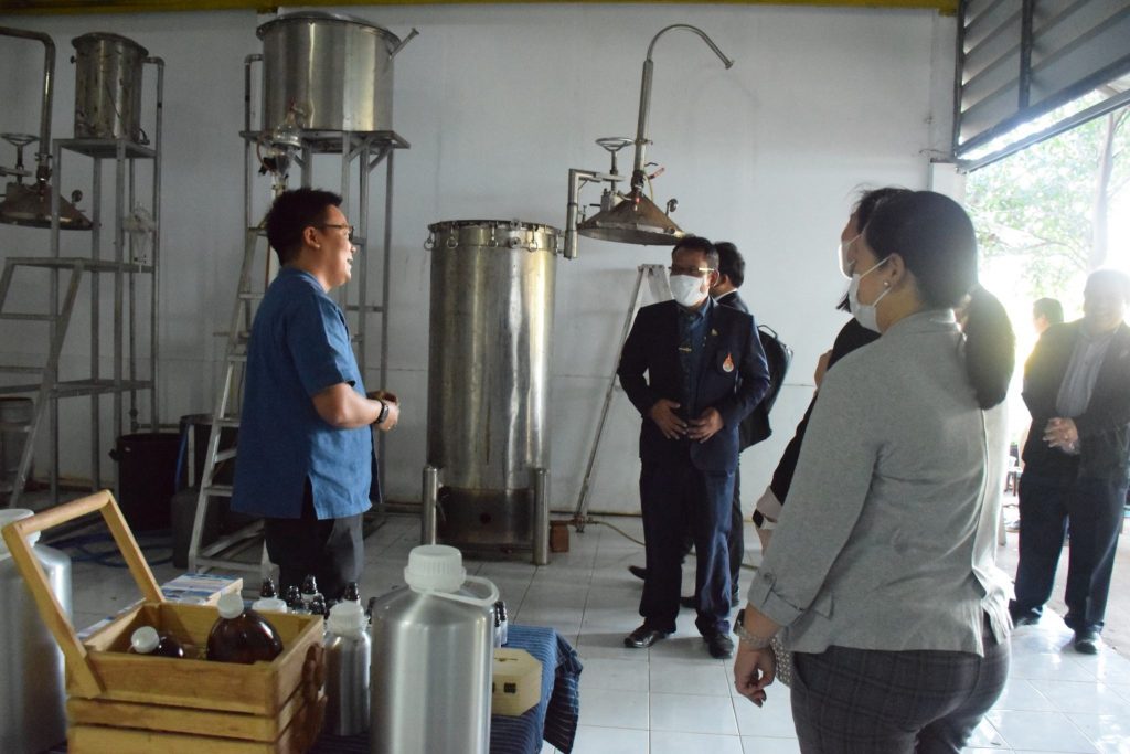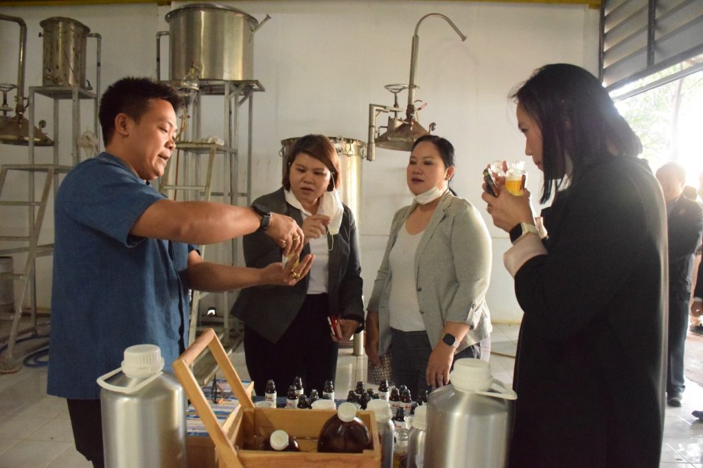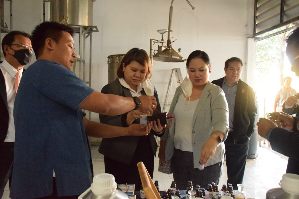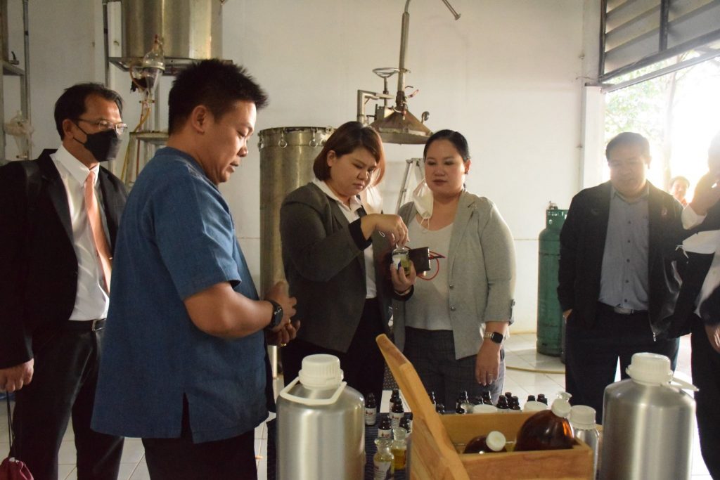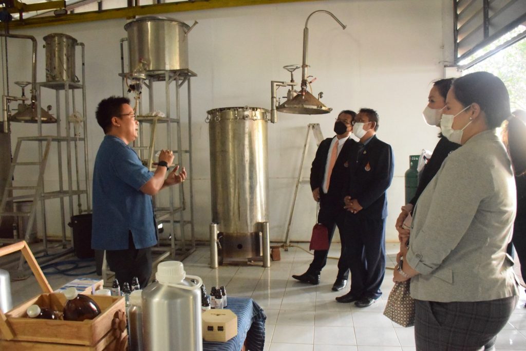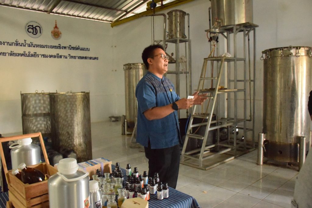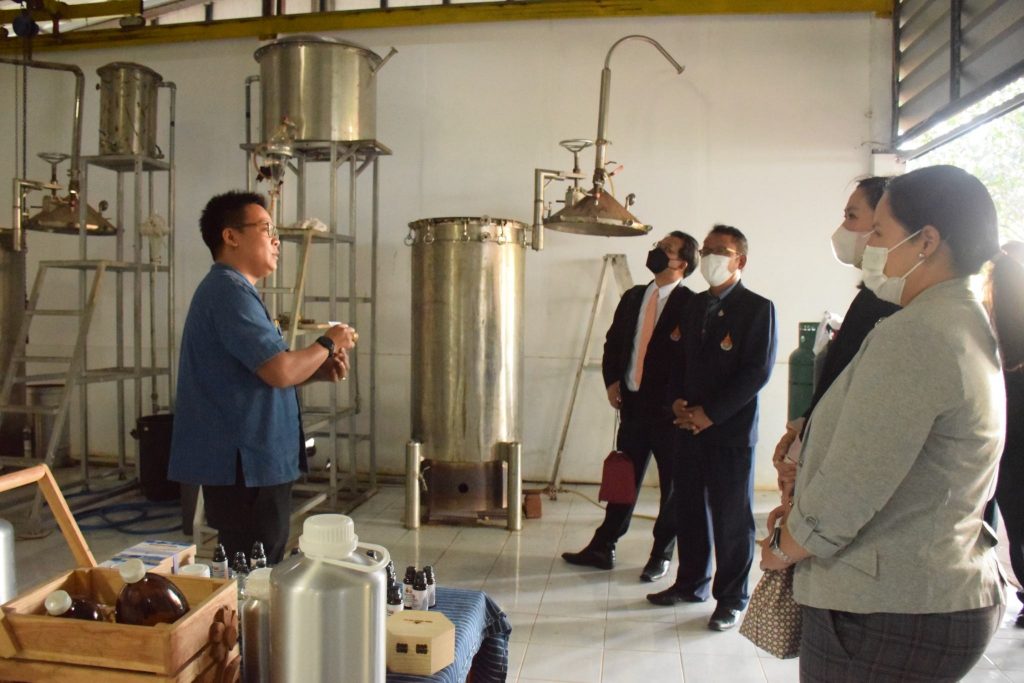 19 มกราคม 2566 คณะอุตสาหกรรมและเทคโนโลยี มทร.อีสาน วิทยาเขตสกลนคร นำโดย ผศ.ดร.สุริยา แก้วอาษา คณบดีคณะอุตสาหกรรมและเทคโนโลยี พร้อมด้วยคณะผู้บริหาร คณาจารย์ และเจ้าหน้าที่ ร่วมต้อนรับคณะผู้บริหารจากสถาบันการจัดการปัญญาภิวัฒน์ ในโอกาสเข้าหารือความร่วมมือด้านการศึกษาและแนะนำโครงการหลักสูตรด้านวิทยาศาสตร์สุขภาพ ทั้งนี้ได้เข้าศึกษาดูงานโรงงานกลั่นน้ำมันหอมระเหยเชิงพาณิชย์ต้นแบบคณะอุตสาหกรรมและเทคโนโลยี มทร.อีสาน วิทยาเขตสกลนคร โดยได้รับเกียรติจาก ผศ.ดร.นำพน พิพัฒน์ไพบูลย์ ผู้ช่วยอธิการบดี ประจำวิทยาเขตสกลนคร บรรยายให้ความรู้เกี่ยวกับการกลั่นน้ำมันหอมระเหยจากสมุนไพรพื้นบ้าน