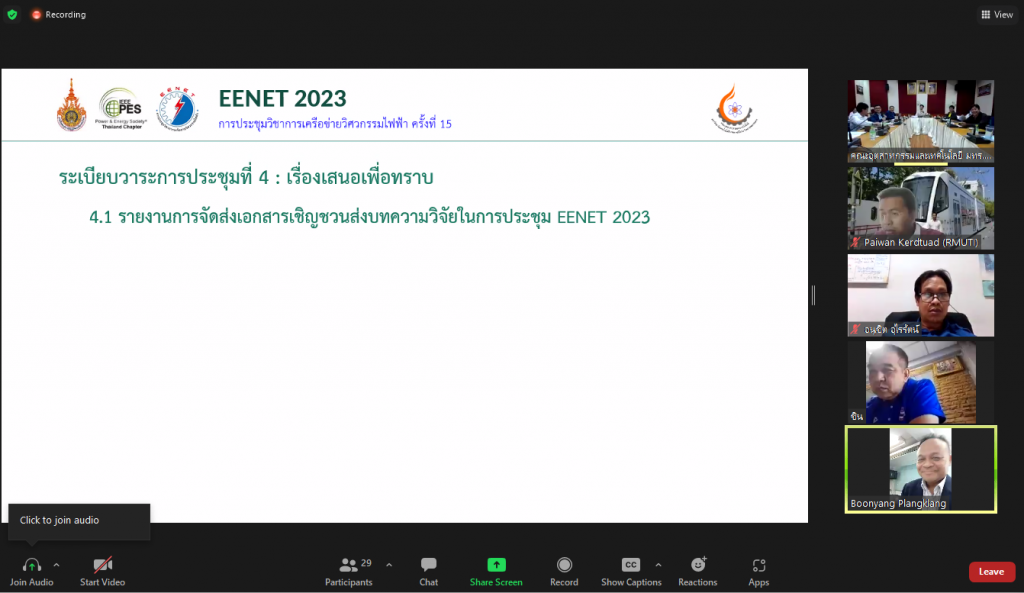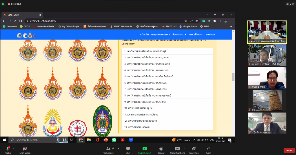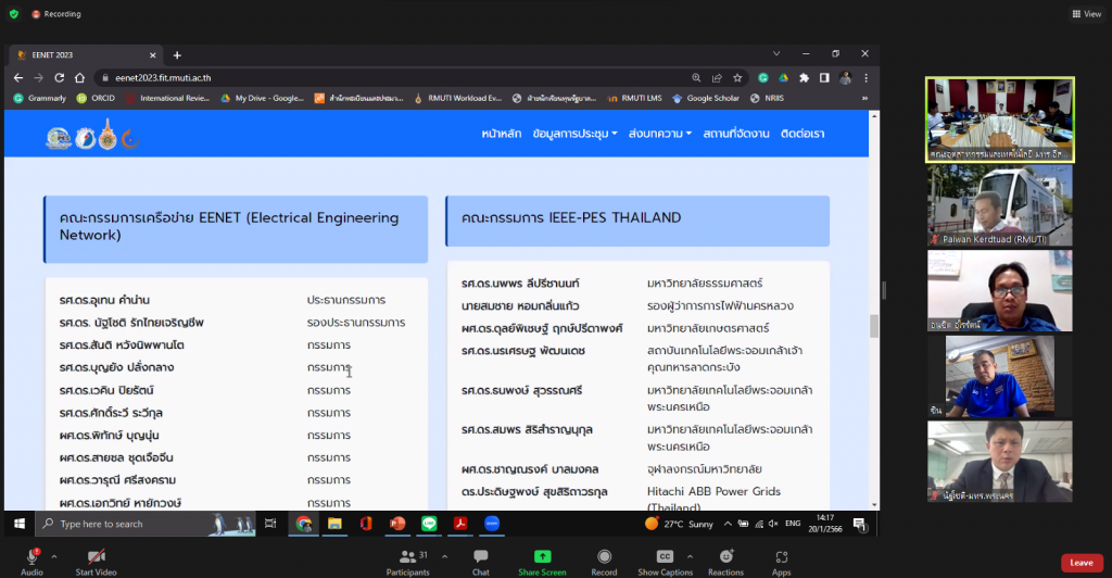 วันที่ 20–21 มกราคม 2566 คณะอุตสาหกรรมและเทคโนโลยี มทร.อีสาน วิทยาเขตสกลนคร จัดการประชุมร่วมกับคณะกรรมการเครือข่ายวิศวกรรมไฟฟ้า (Electrical Engineering Network) ผ่านระบบออนไลน์ zoom meeting ณ ห้องประชุมสำนักงานคณบดีคณะอุตสาหกรรมและเทคโนโลยี เพื่อเตรียม ความพร้อมการเป็นเจ้าภาพจัดการประชุมวิชาการเครือข่ายวิศวกรรมไฟฟ้า ครั้งที่ 15 (EENET.2023) ณ โรงแรมฟอร์จูน รีเวอร์วิว นครพนม จังหวัดนครพนม ที่จะจัดขึ้นในระหว่างวันที่ 1 – 3 พฤษภาคม 2566 โดยรศ.ดร.อุเทน คำน่าน ประธานคณะกรรมการเครือข่ายวิศวกรรมไฟฟ้า ให้เกียรติเป็นประธานในที่ประชุม โดยมีคณะผู้บริหาร คณาจารย์ และเจ้าหน้าที่คณะอุตสาหกรรมและเทคโนโลยี เข้าร่วมประชุมโดยพร้อมเพรียงกัน