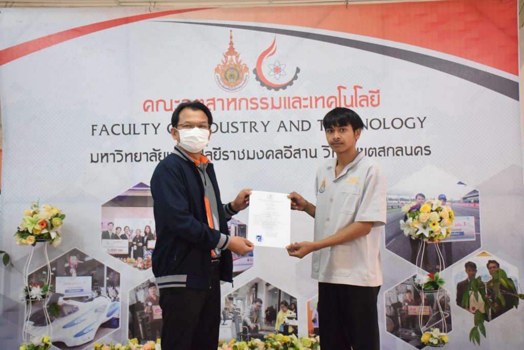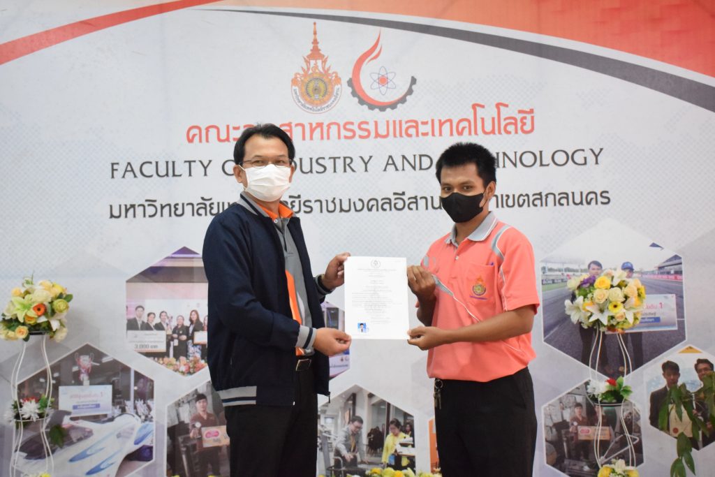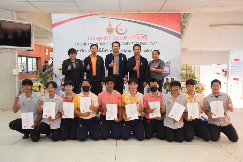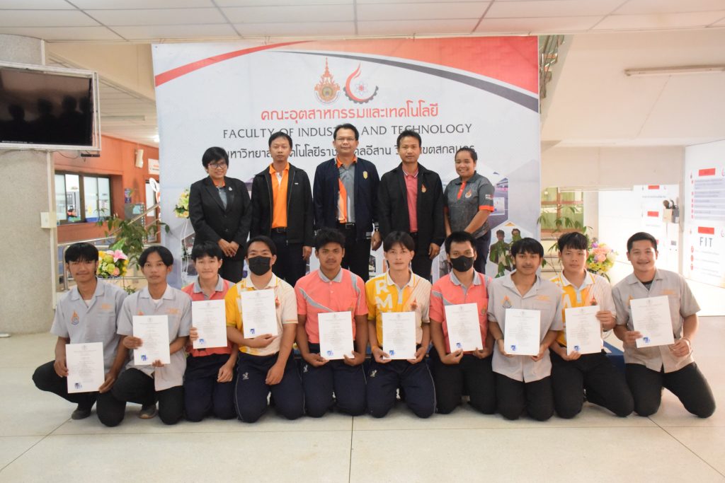 วันที่ 26 มกราคม 2566 คณะอุตสาหกรรมและเทคโนโลยี มทร.อีสาน วิทยาเขตสกลนคร จัดพิธีมอบหนังสือรับรองผู้ผ่านการทดสอบมาตรฐานฝีมือแรงงาน ตามพระราชบัญญัติส่งเสริมการพัฒนาฝีมือแรงงาน พ.ศ. 2545 ในสาขาช่างบำรุงรักษารถยนต์ ระดับ 1 ณ สำนักงานคณบดีคณะอุตสาหกรรมและเทคโนโลยี โดยศูนย์ทดสอบมาตรฐานฝีมือแรงงาน มหาวิทยาลัยเทคโนโลยีราชมงคลอีสาน วิทยาเขตสกลนคร ได้ดำเนินการทดสอบมาตรฐานฝีมือแรงงานแห่งชาติ ในสาขาช่างบำรุงรักษารถยนต์ ระดับ 1 ครั้งที่ 2/2565 ในวันที่ 19 – 20 ธันวาคม 2565 เรียบร้อยแล้วนั้น โดยมีผู้ผ่านการทดสอบตามเกณฑ์มาตรฐานฝีมือแรงงานกำหนด จำนวน 16 คน ในการนี้ ผศ.ดร.สุริยา แก้วอาษา คณบดีคณะอุตสาหกรรมและเทคโนโลยี ให้เกียรติเป็นประธานมอบหนังสือรับรองแก่ผู้ผ่านการทดสอบในครั้งนี้