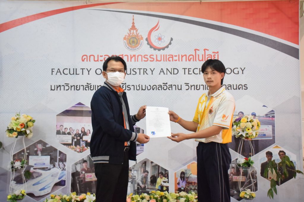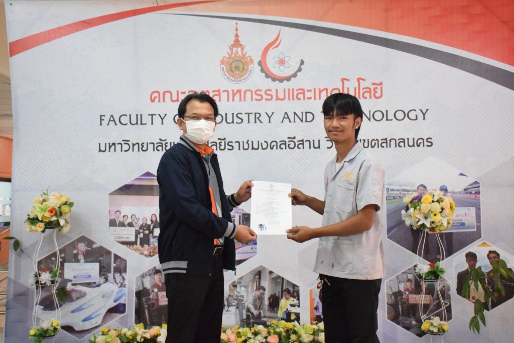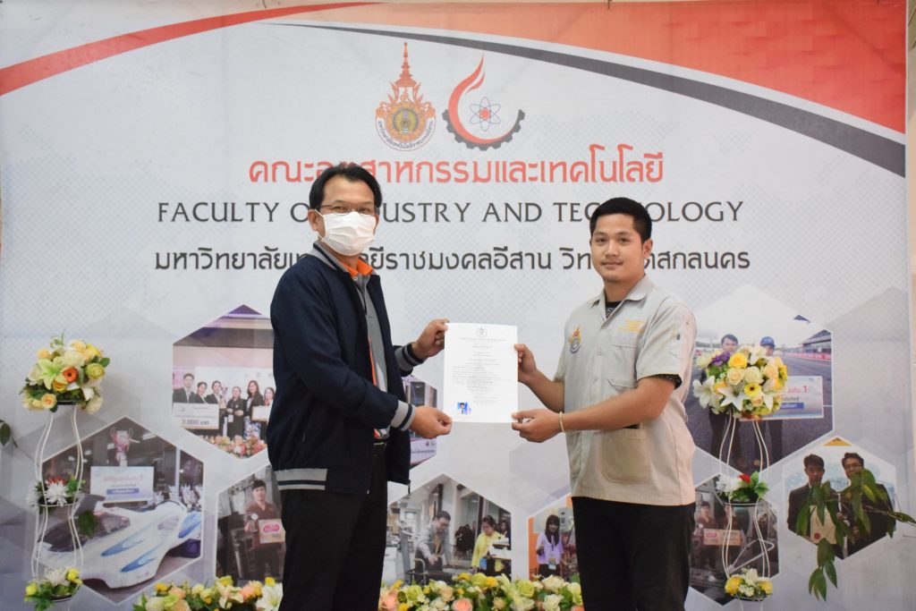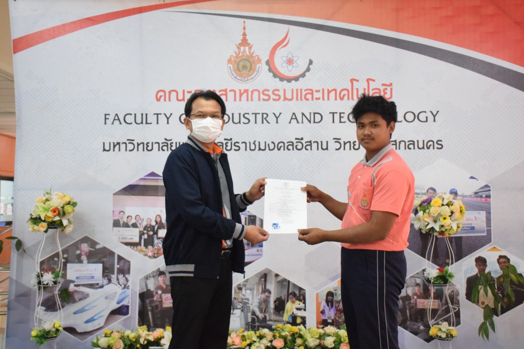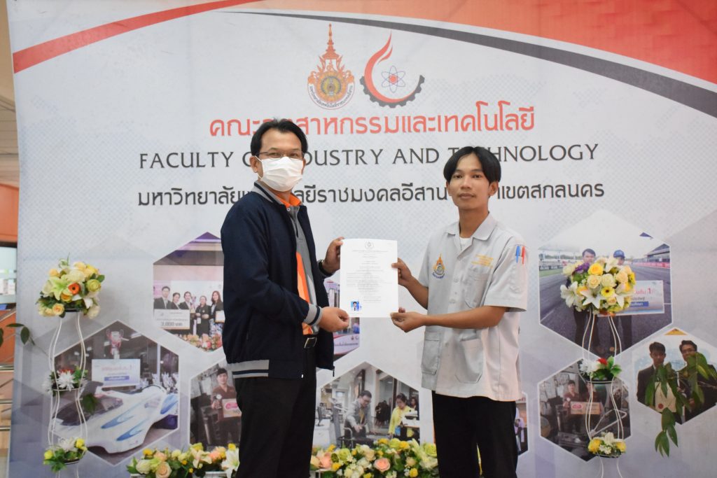 วันที่ 26 มกราคม 2566 คณะอุตสาหกรรมและเทคโนโลยี มทร.อีสาน วิทยาเขตสกลนคร จัดพิธีมอบหนังสือรับรองผู้ผ่านการทดสอบมาตรฐานฝีมือแรงงาน ตามพระราชบัญญัติส่งเสริมการพัฒนาฝีมือแรงงาน พ.ศ. 2545 ในสาขาช่างบำรุงรักษารถยนต์ ระดับ 1 ณ สำนักงานคณบดีคณะอุตสาหกรรมและเทคโนโลยี โดยศูนย์ทดสอบมาตรฐานฝีมือแรงงาน มหาวิทยาลัยเทคโนโลยีราชมงคลอีสาน วิทยาเขตสกลนคร ได้ดำเนินการทดสอบมาตรฐานฝีมือแรงงานแห่งชาติ ในสาขาช่างบำรุงรักษารถยนต์ ระดับ 1 ครั้งที่ 2/2565 ในวันที่ 19 – 20 ธันวาคม 2565 เรียบร้อยแล้วนั้น โดยมีผู้ผ่านการทดสอบตามเกณฑ์มาตรฐานฝีมือแรงงานกำหนด จำนวน 16 คน ในการนี้ ผศ.ดร.สุริยา แก้วอาษา คณบดีคณะอุตสาหกรรมและเทคโนโลยี ให้เกียรติเป็นประธานมอบหนังสือรับรองแก่ผู้ผ่านการทดสอบในครั้งนี้