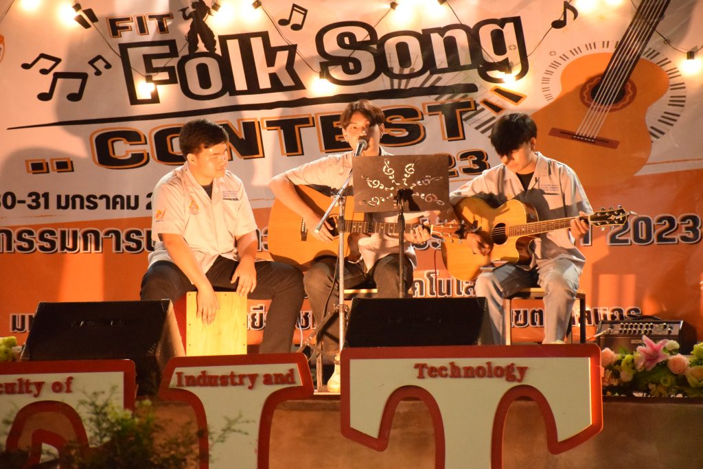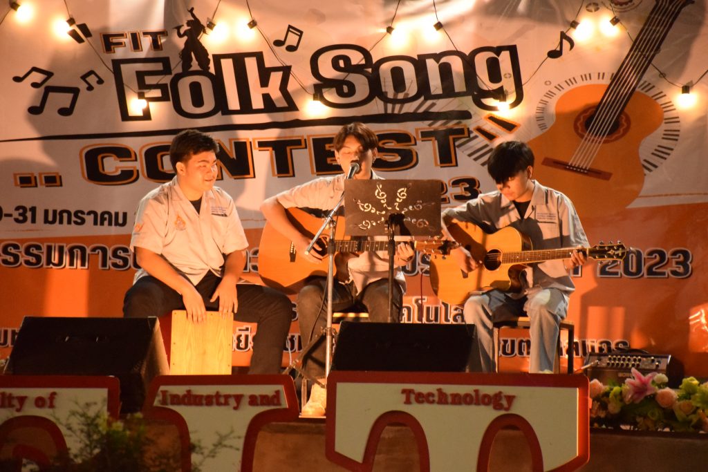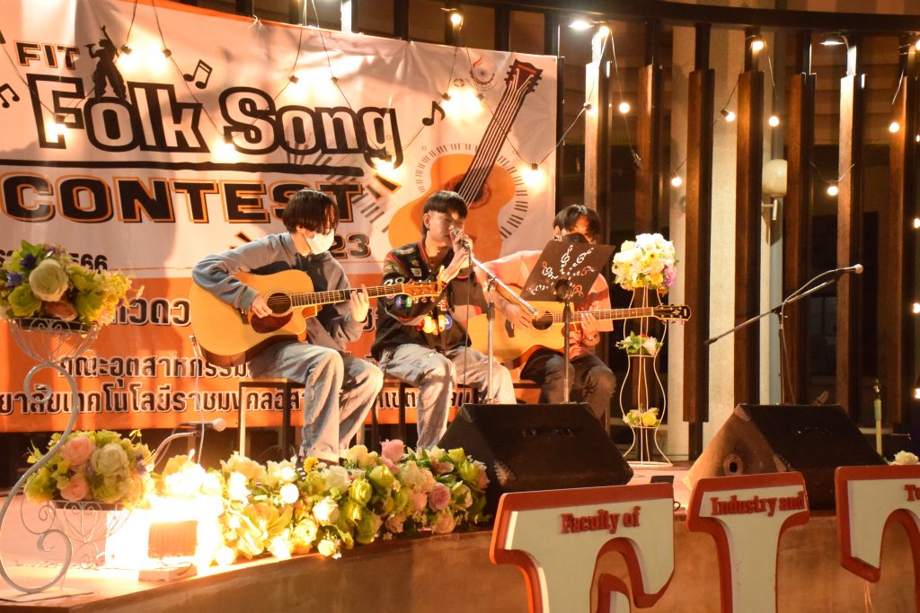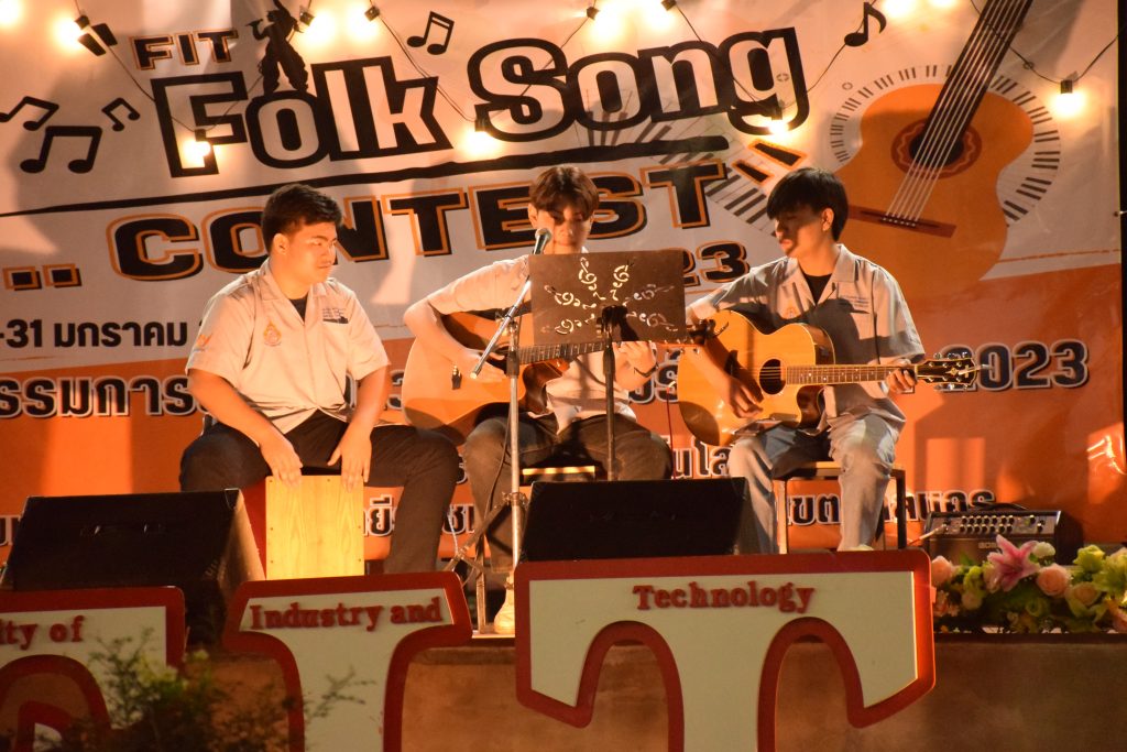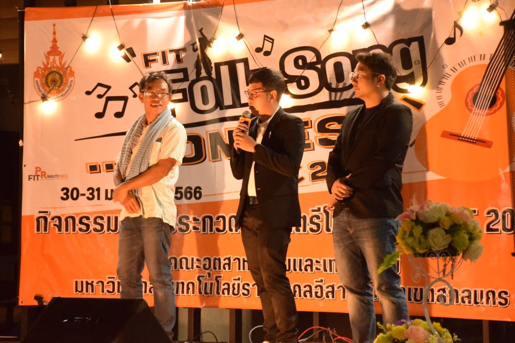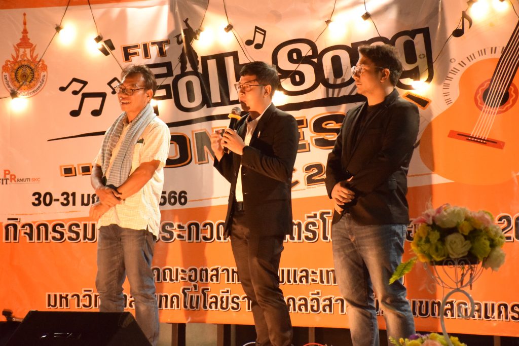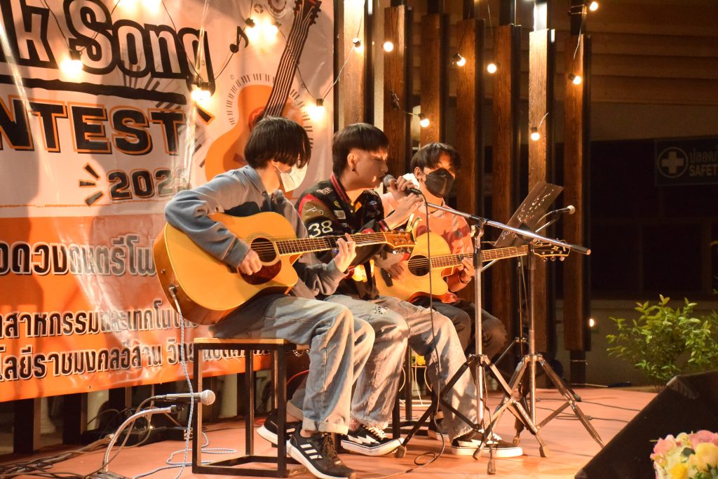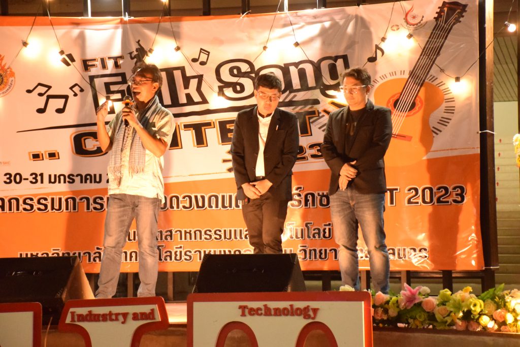 วันที่ 30 – 31 มกราคม 2566 คณะอุตสาหกรรมและเทคโนโลยี มทร.อีสาน วิทยาเขตสกลนคร จัดกิจกรรมการประกวดวงดนตรี Folk Song Contest 2023 ณ เวทีกลางลานกิจกรรมคณะอุตสาหกรรมและเทคโนโลยี โดยมีวัตถุประสงค์เพื่อส่งเสริมศักยภาพและทักษะทางด้านดนตรีของนักศึกษา เป็นเวทีให้นักศึกษาได้แสดงออกถึงสามารถทางดนตรีต่อสาธารณะ ใช้เวลาว่างให้เกิดประโยชน์ และห่างไกลจากยาเสพติด โดยมีนักศึกษาเข้าร่วมประกวดจำนวน 8 ทีม และผ่านเข้ารอบจำนวน 4 ทีม โดยได้รับเกียรติจาก ผศ.อมรเดช นวลมณี คุณธีระวุฒิ สูตรไชย และคุณขุนพล ศรีโคตา ผู้ทรงคุณวุฒิที่มีความรู้และประสบการณ์ทางด้านดนตรีเป็นคณะกรรมการในการตัดสินการประกวดในครั้งนี้ ในการนี้ ผศ.น.สพ.ดร.ชเวง สารคล่อง รองอธิการบดีประจำวิทยาเขตสกลนคร ให้เกียรติเป็นประธานในพิธีเปิดกิจกรรม พร้อมทั้งมอบรางวัลแก่นักศึกษาที่ได้รับรางวัลชนะเลิศการแข่งขัน พร้อมกันนี้ ผศ.ดร.สุริยา แก้วอาษา คณบดีคณะอุตสาหกรรมและเทคโนโลยี มอบเงินสนับสนุนเป็นรางวัลพิเศษเพื่อเป็นขวัญกำลังใจแก่นักศึกษาที่ผ่านเข้ารอบทั้ง 4 ทีมอีกด้วย