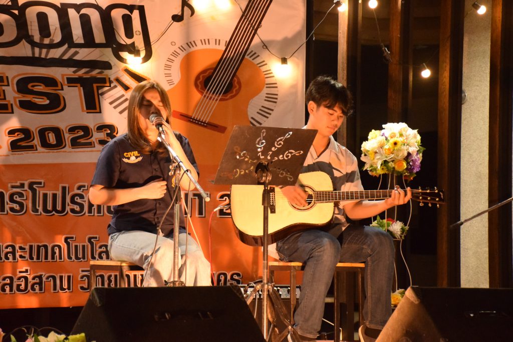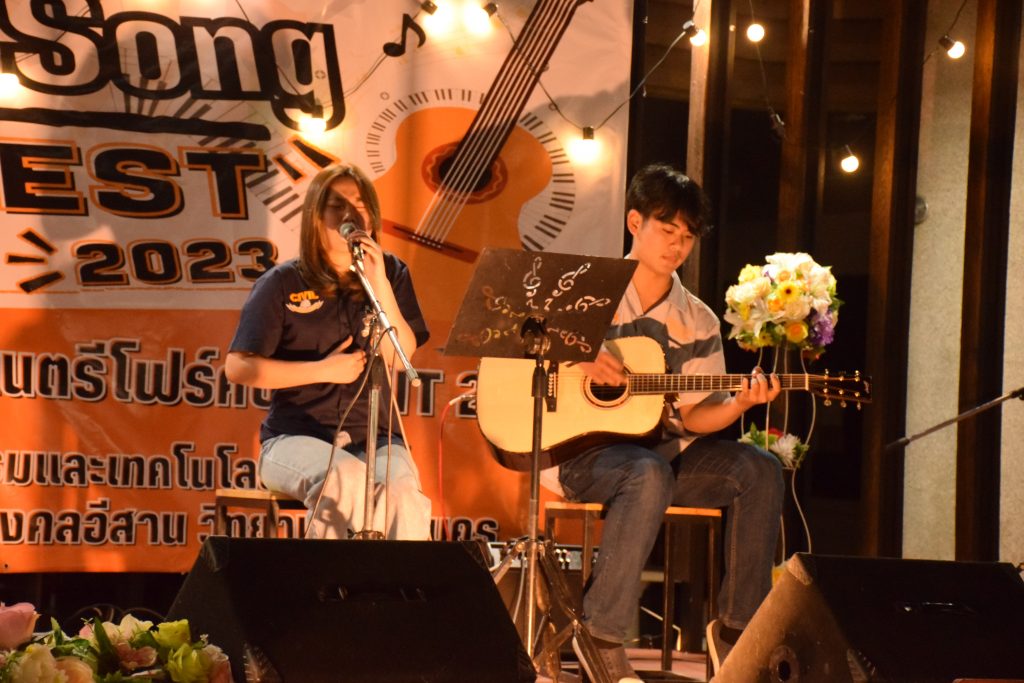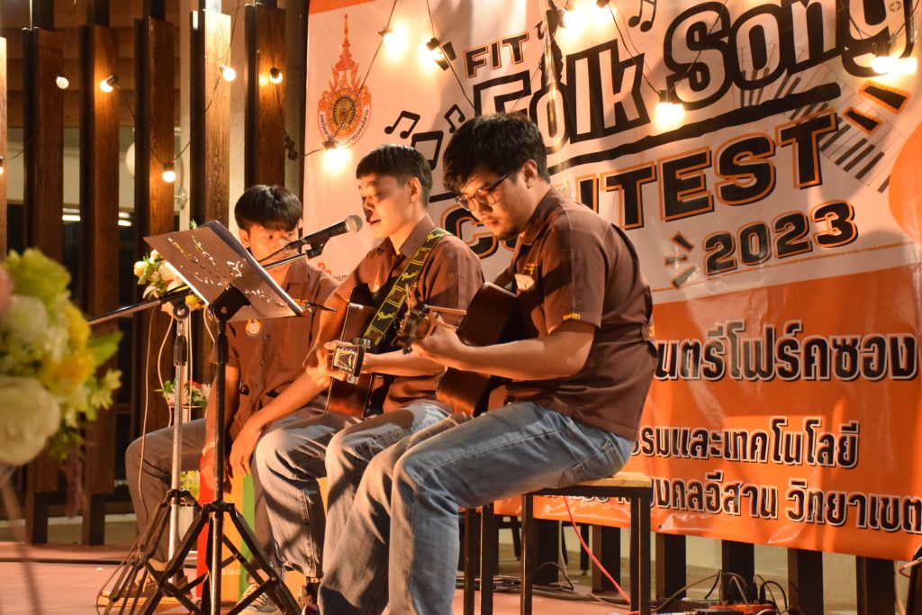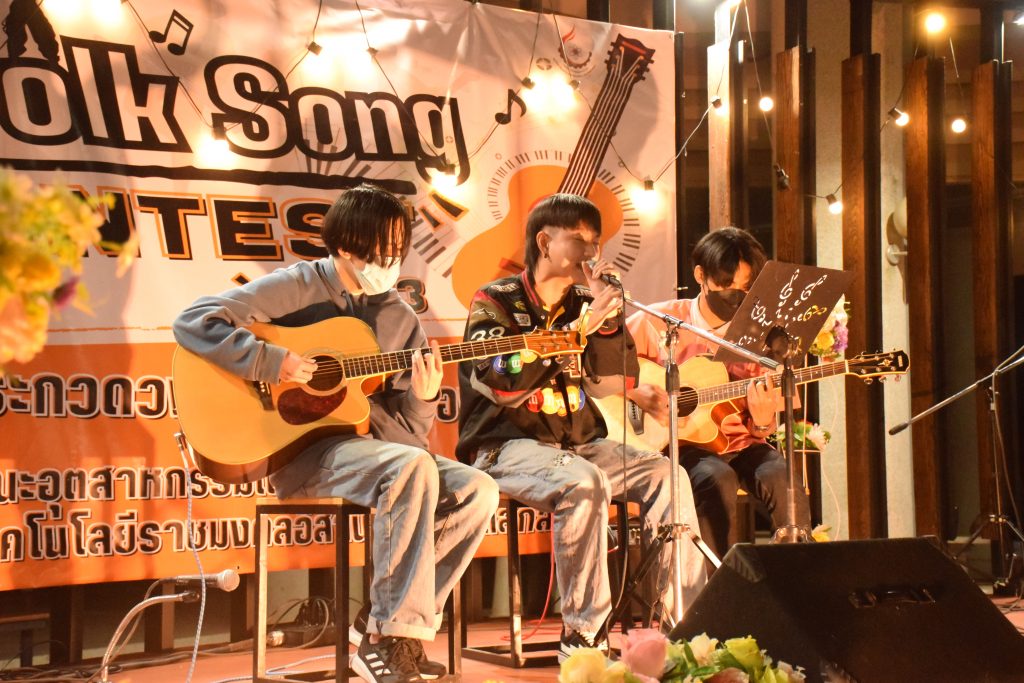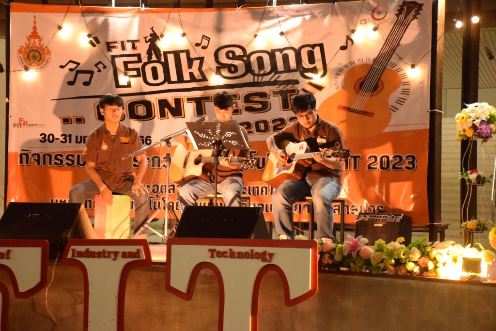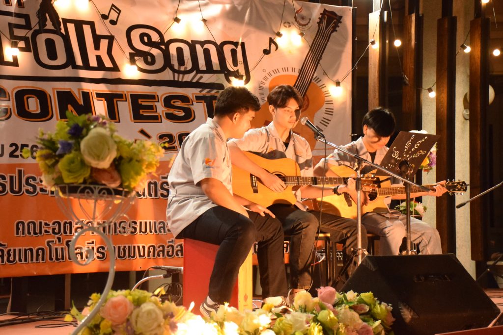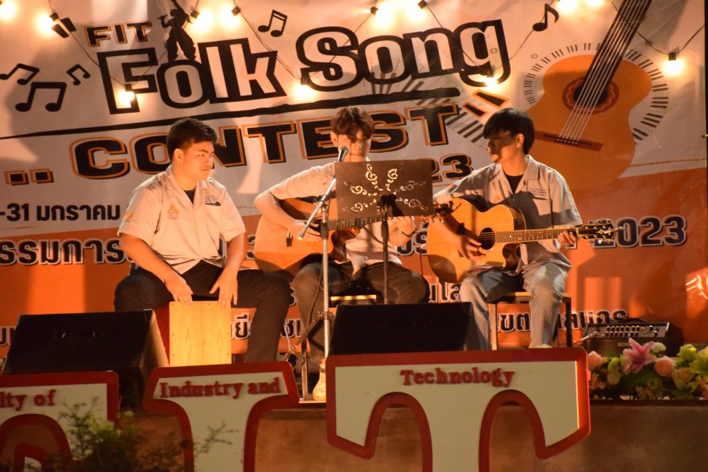 วันที่ 30 – 31 มกราคม 2566 คณะอุตสาหกรรมและเทคโนโลยี มทร.อีสาน วิทยาเขตสกลนคร จัดกิจกรรมการประกวดวงดนตรี Folk Song Contest 2023 ณ เวทีกลางลานกิจกรรมคณะอุตสาหกรรมและเทคโนโลยี โดยมีวัตถุประสงค์เพื่อส่งเสริมศักยภาพและทักษะทางด้านดนตรีของนักศึกษา เป็นเวทีให้นักศึกษาได้แสดงออกถึงสามารถทางดนตรีต่อสาธารณะ ใช้เวลาว่างให้เกิดประโยชน์ และห่างไกลจากยาเสพติด โดยมีนักศึกษาเข้าร่วมประกวดจำนวน 8 ทีม และผ่านเข้ารอบจำนวน 4 ทีม โดยได้รับเกียรติจาก ผศ.อมรเดช นวลมณี คุณธีระวุฒิ สูตรไชย และคุณขุนพล ศรีโคตา ผู้ทรงคุณวุฒิที่มีความรู้และประสบการณ์ทางด้านดนตรีเป็นคณะกรรมการในการตัดสินการประกวดในครั้งนี้ ในการนี้ ผศ.น.สพ.ดร.ชเวง สารคล่อง รองอธิการบดีประจำวิทยาเขตสกลนคร ให้เกียรติเป็นประธานในพิธีเปิดกิจกรรม พร้อมทั้งมอบรางวัลแก่นักศึกษาที่ได้รับรางวัลชนะเลิศการแข่งขัน พร้อมกันนี้ ผศ.ดร.สุริยา แก้วอาษา คณบดีคณะอุตสาหกรรมและเทคโนโลยี มอบเงินสนับสนุนเป็นรางวัลพิเศษเพื่อเป็นขวัญกำลังใจแก่นักศึกษาที่ผ่านเข้ารอบทั้ง 4 ทีมอีกด้วย