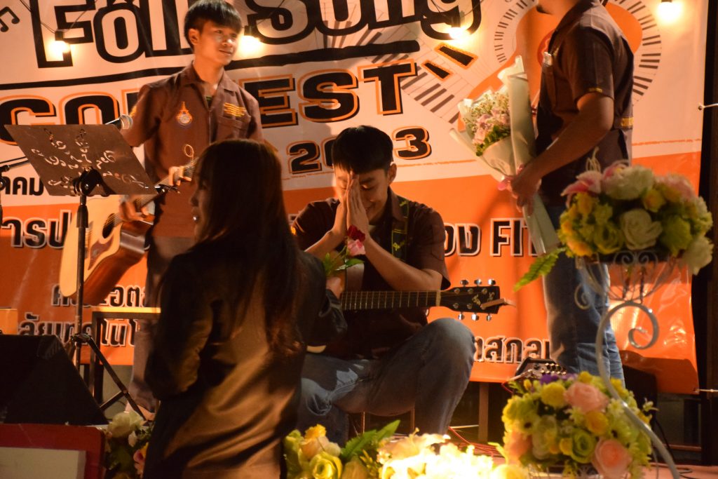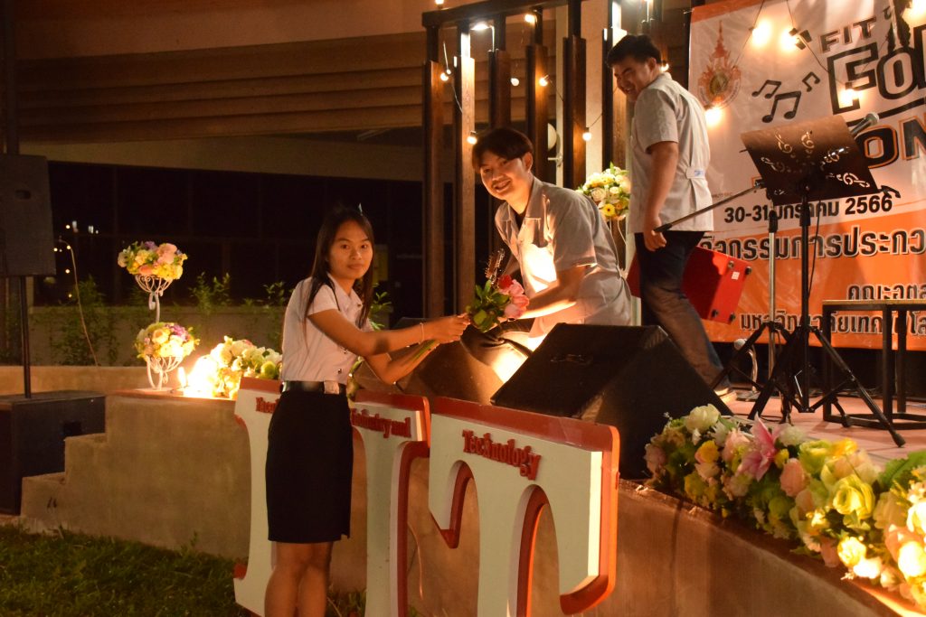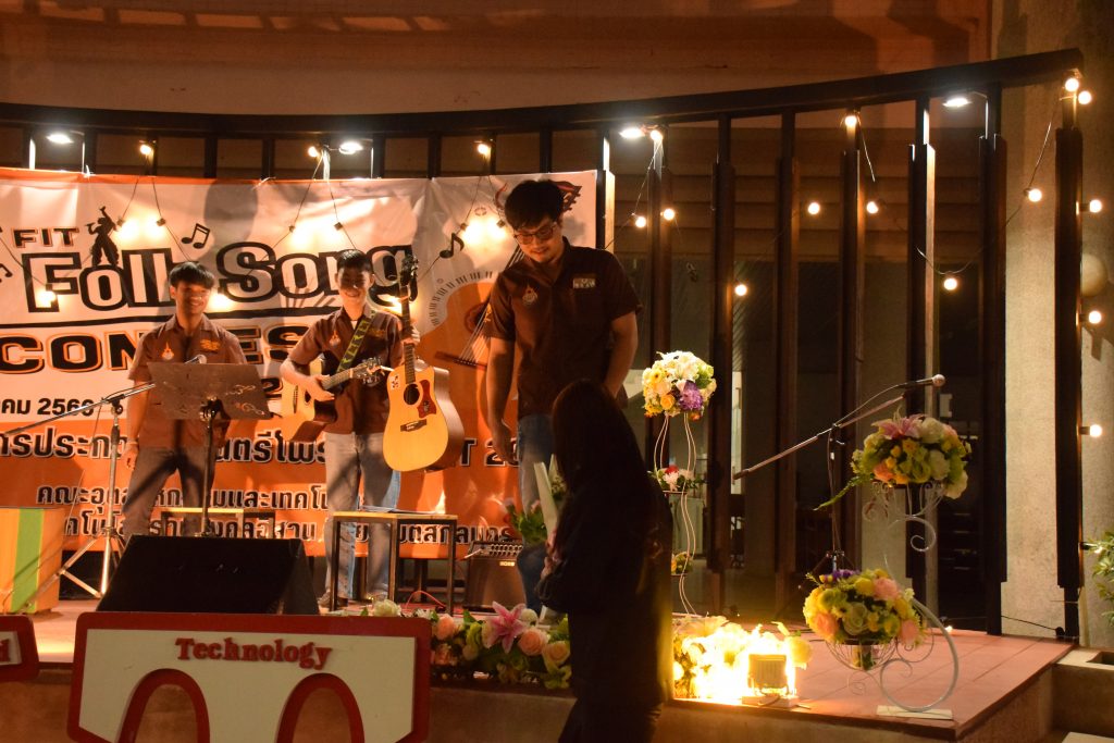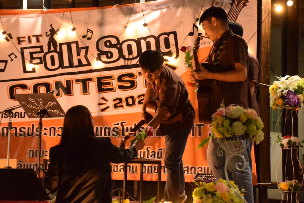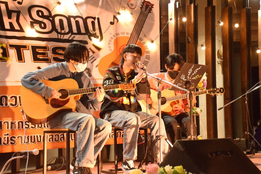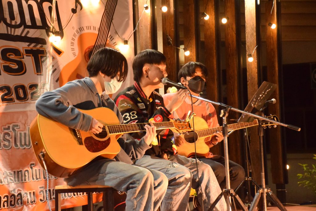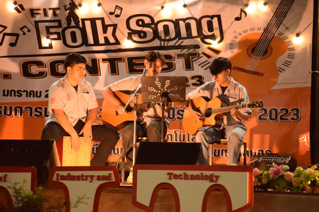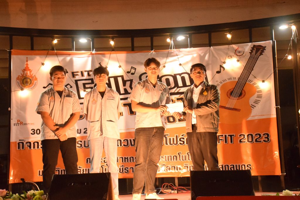 วันที่ 30 – 31 มกราคม 2566 คณะอุตสาหกรรมและเทคโนโลยี มทร.อีสาน วิทยาเขตสกลนคร จัดกิจกรรมการประกวดวงดนตรี Folk Song Contest 2023 ณ เวทีกลางลานกิจกรรมคณะอุตสาหกรรมและเทคโนโลยี โดยมีวัตถุประสงค์เพื่อส่งเสริมศักยภาพและทักษะทางด้านดนตรีของนักศึกษา เป็นเวทีให้นักศึกษาได้แสดงออกถึงสามารถทางดนตรีต่อสาธารณะ ใช้เวลาว่างให้เกิดประโยชน์ และห่างไกลจากยาเสพติด โดยมีนักศึกษาเข้าร่วมประกวดจำนวน 8 ทีม และผ่านเข้ารอบจำนวน 4 ทีม โดยได้รับเกียรติจาก ผศ.อมรเดช นวลมณี คุณธีระวุฒิ สูตรไชย และคุณขุนพล ศรีโคตา ผู้ทรงคุณวุฒิที่มีความรู้และประสบการณ์ทางด้านดนตรีเป็นคณะกรรมการในการตัดสินการประกวดในครั้งนี้ ในการนี้ ผศ.น.สพ.ดร.ชเวง สารคล่อง รองอธิการบดีประจำวิทยาเขตสกลนคร ให้เกียรติเป็นประธานในพิธีเปิดกิจกรรม พร้อมทั้งมอบรางวัลแก่นักศึกษาที่ได้รับรางวัลชนะเลิศการแข่งขัน พร้อมกันนี้ ผศ.ดร.สุริยา แก้วอาษา คณบดีคณะอุตสาหกรรมและเทคโนโลยี มอบเงินสนับสนุนเป็นรางวัลพิเศษเพื่อเป็นขวัญกำลังใจแก่นักศึกษาที่ผ่านเข้ารอบทั้ง 4 ทีมอีกด้วย
