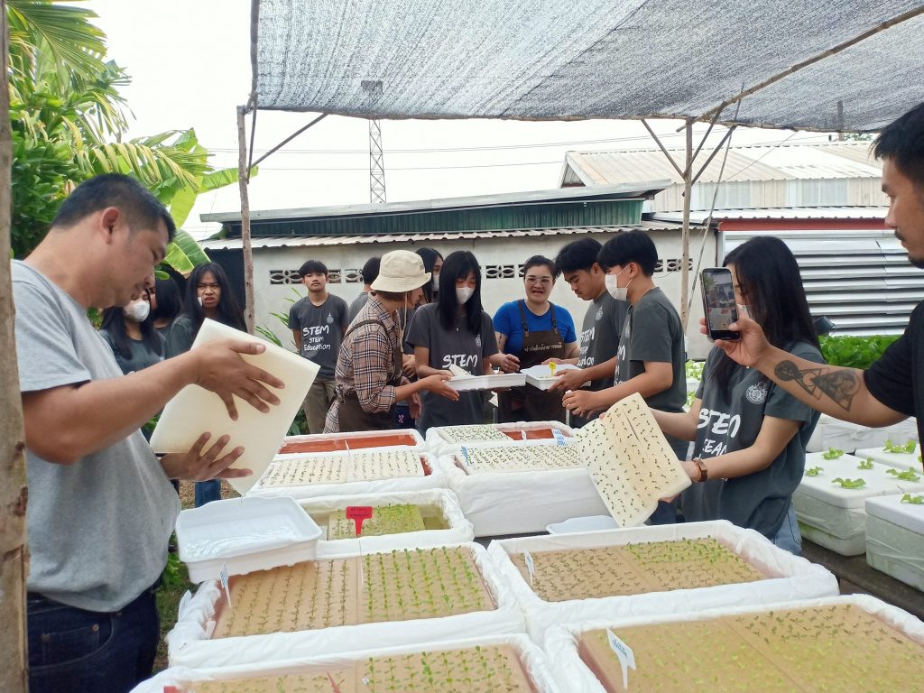 วันที่ 5 กุมภาพันธ์ 2566 คณะอุตสาหกรรมและเทคโนโลยี จัดโครงการส่งเสริมการบ่มเพาะผู้ประกอบการ กิจกรรมอบรมผู้ประกอบการอาชีพอิสระ ให้กับนักศึกษาทุนนวัตกรรมสายอาชีพชั้นสูง ณ ฟาร์มฮักผักอารมณ์ดี อำเภอวาริชภูมิ จังหวัดสกลนคร เพื่อสร้างแรงบันดาลใจให้กับนักศึกษา เป็นแนวทางในการประกอบอาชีพอนาคต และยังสามารถนำความรู้ที่ได้ไปต่อยอดสร้างรายได้ให้กับนักศึกษา โดยได้รับเกียรติจาก คุณกนกวรรณ สุทธิอาจ เจ้าของฟาร์มฮักผักอารมณ์ดี ซึ่งเป็นผู้ประกอบการอิสระ ที่มีเชี่ยวชาญด้านการปลูกผักไฮโดรโปนิกส์ระบบน้ำนิ่ง เป็นวิทยากรให้ความรู้ขั้นตอนการปลูกผักไฮโดรโปนิกส์ระบบน้ำนิ่ง พร้อมทั้งให้นักศึกษาได้ลงมือปฏิบัติจริงทุกขั้นตอน ในการนี้ ผศ.ดร.พรเทพ ปัญญาแก้ว รองคณบดีฝ่ายวิชาการและวิจัย ให้เกียรติเป็นประธานในพิธีเปิดโครงการ