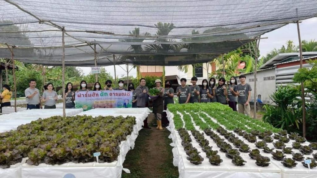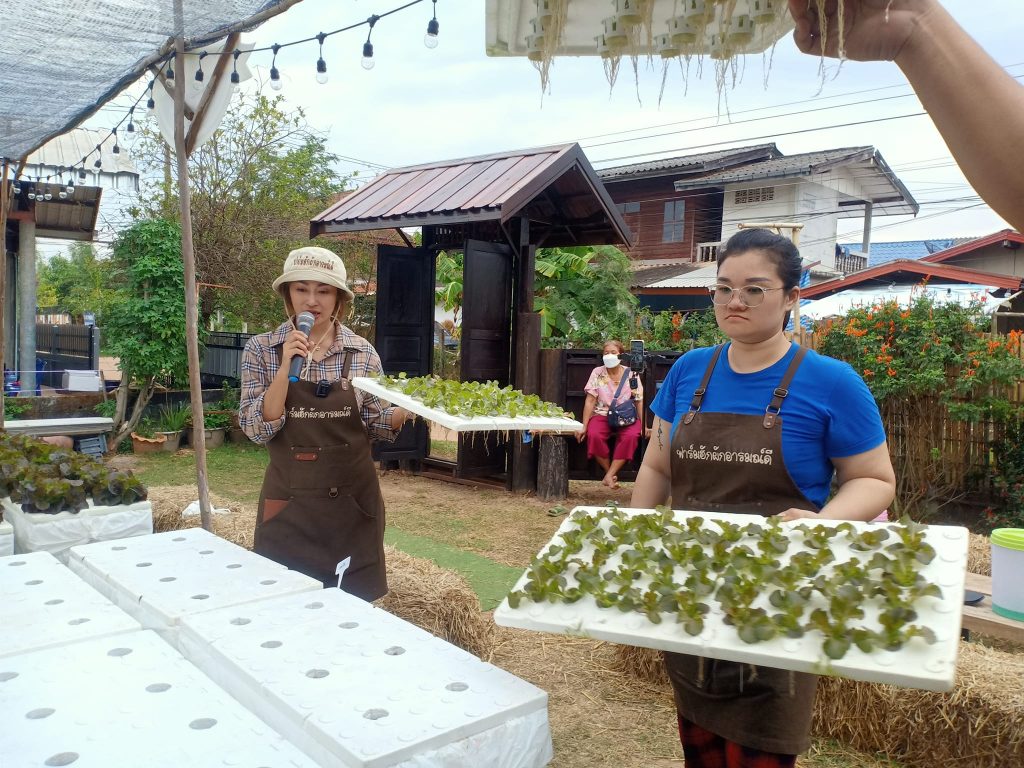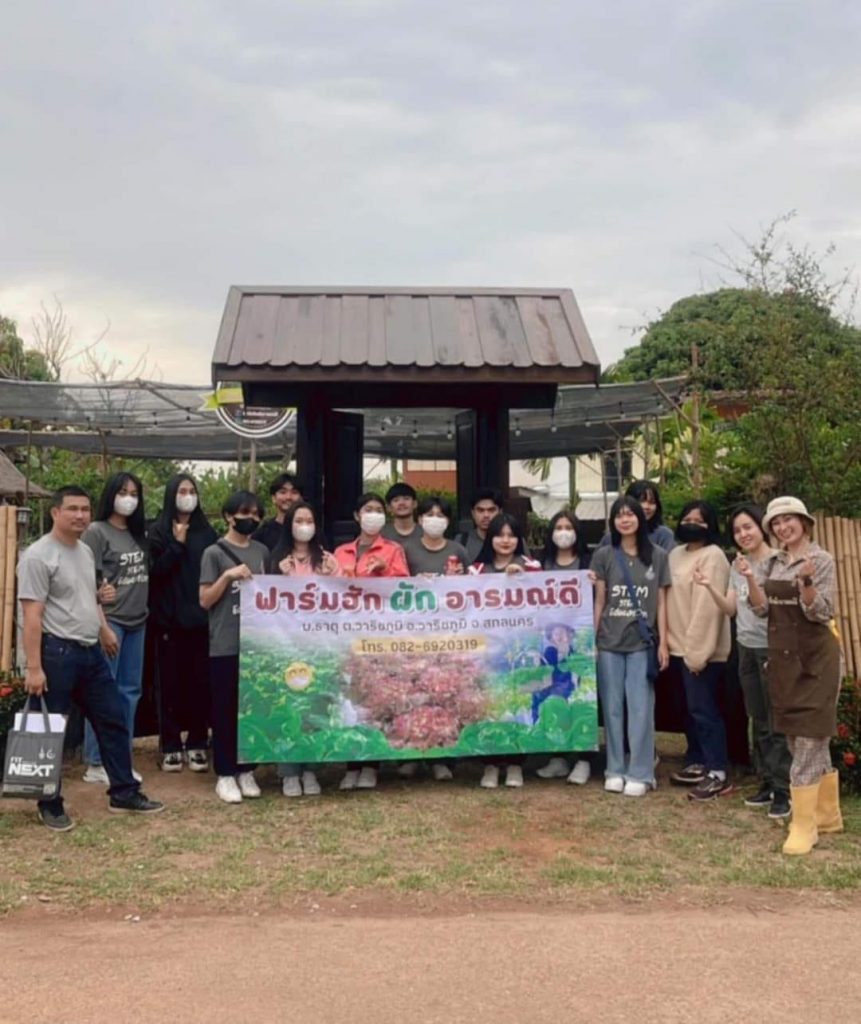วันที่ 5 กุมภาพันธ์ 2566 คณะอุตสาหกรรมและเทคโนโลยี จัดโครงการส่งเสริมการบ่มเพาะผู้ประกอบการ กิจกรรมอบรมผู้ประกอบการอาชีพอิสระ ให้กับนักศึกษาทุนนวัตกรรมสายอาชีพชั้นสูง ณ ฟาร์มฮักผักอารมณ์ดี อำเภอวาริชภูมิ จังหวัดสกลนคร เพื่อสร้างแรงบันดาลใจให้กับนักศึกษา เป็นแนวทางในการประกอบอาชีพอนาคต และยังสามารถนำความรู้ที่ได้ไปต่อยอดสร้างรายได้ให้กับนักศึกษา โดยได้รับเกียรติจาก คุณกนกวรรณ สุทธิอาจ เจ้าของฟาร์มฮักผักอารมณ์ดี ซึ่งเป็นผู้ประกอบการอิสระ ที่มีเชี่ยวชาญด้านการปลูกผักไฮโดรโปนิกส์ระบบน้ำนิ่ง เป็นวิทยากรให้ความรู้ขั้นตอนการปลูกผักไฮโดรโปนิกส์ระบบน้ำนิ่ง พร้อมทั้งให้นักศึกษาได้ลงมือปฏิบัติจริงทุกขั้นตอน ในการนี้ ผศ.ดร.พรเทพ ปัญญาแก้ว รองคณบดีฝ่ายวิชาการและวิจัย ให้เกียรติเป็นประธานในพิธีเปิดโครงการ
