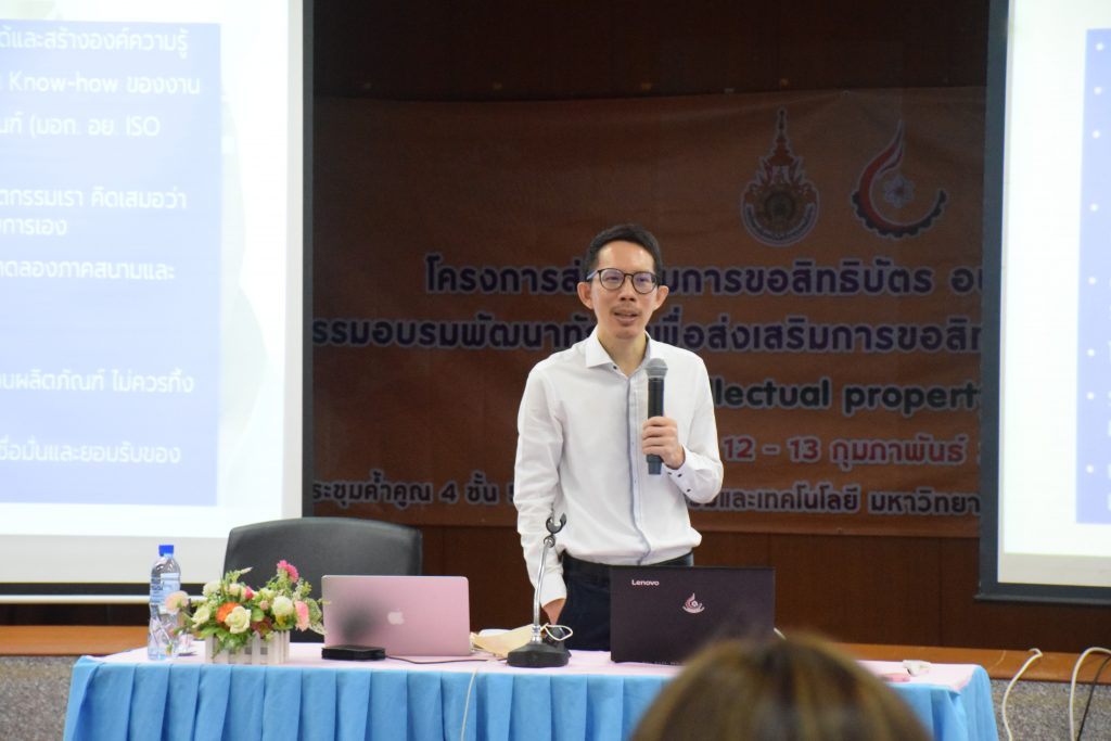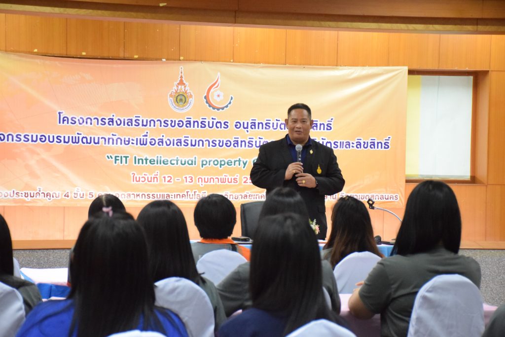 วันที่ 12-13 กุมภาพันธ์ 2566 คณะอุตสาหกรรมและเทคโนโลยี มทร.อีสาน วิทยาเขตสกลนคร จัดกิจกรรมอบรมพัฒนาทักษะเพื่อส่งเสริมการขอสิทธิบัตร อนุสิทธิบัตร ลิขสิทธิ์ ภายใต้โครงการส่งเสริมการขอสิทธิบัตร อนุสิทธิบัตร ลิขสิทธิ์ โดยมีวัตถุประสงค์เพื่อส่งเสริมให้คณาจารย์มีความรู้ความเข้าใจ ในการบริหารจัดการทรัพย์สินทางปัญญา การขอสิทธิบัตร อนุสิทธิบัตร ลิขสิทธิ์ ช่วยสร้างแรงบันดาลใจให้กับบุคลากร เกิดการพัฒนาตนเอง พัฒนางาน พัฒนาองค์กร นำไปสู่การสร้างสรรค์ผลงานที่มีคุณภาพต่อประเทศชาติต่อไป โดยได้รับเกียรติจาก รองศาสตราจารย์ ดร.พานิช อินต๊ะ หัวหน้าหน่วยวิจัยสนามไฟฟ้าประยุกต์ในงานวิศวกรรมมหาวิทยาลัยเทคโนโลยีราชมงคลล้านนา เป็นวิทยากร ในการนี้ รองศาสตราจารย์ ดร.โฆษิต ศรีภูธร อธิการบดีมหาวิทยาลัยเทคโนโลยีราชมงคลอีสาน ให้เกียรติเป็นประธานในพิธีเปิดโครงการ