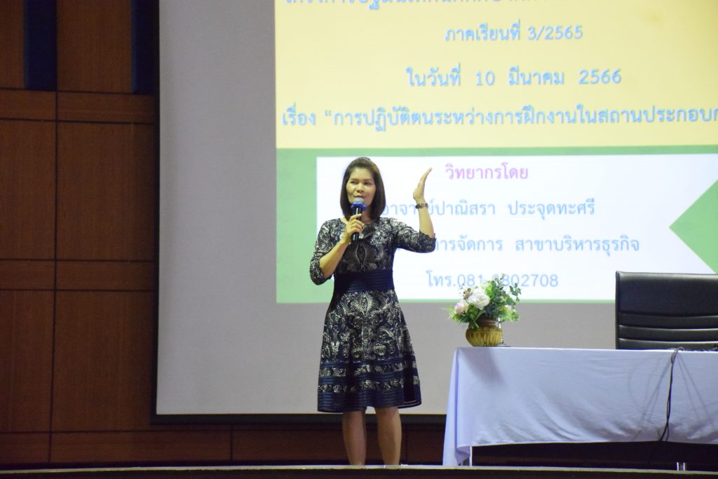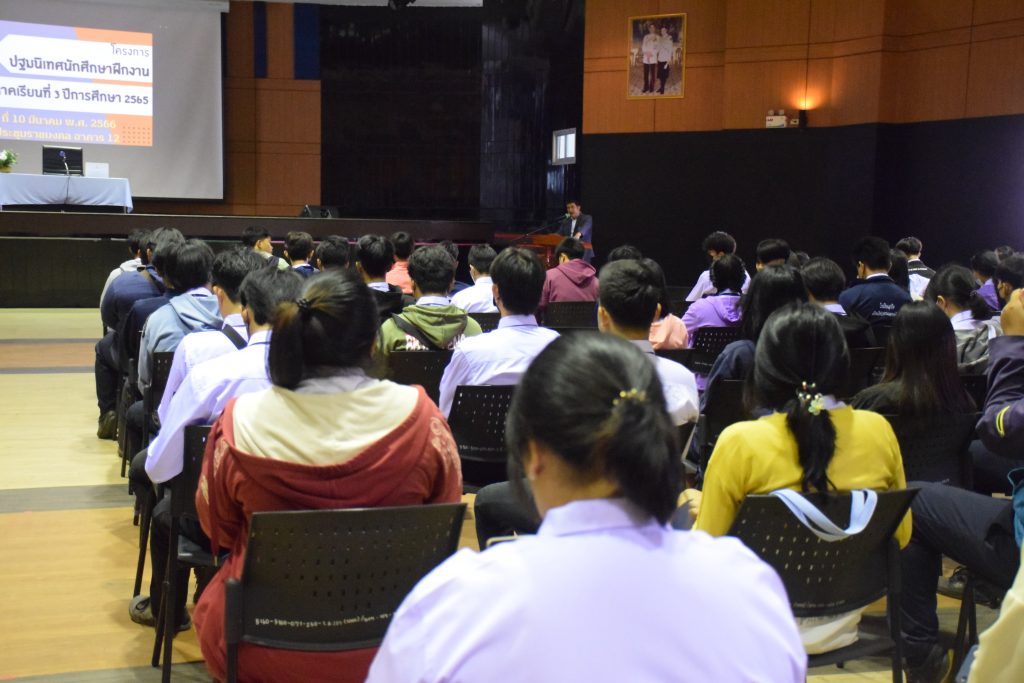 วันที่ 10 มีนาคม 2566 คณะอุตสาหกรรมและเทคโนโลยี มทร.อีสาน วิทยาเขตสกลนคร จัดกิจกรรม ปฐมนิเทศนักศึกษาฝึกงานในสถานประกอบการ ภาคเรียนที่ 3 ปีการศึกษา 2565 ภายใต้โครงการฝึกงานในสถานประกอบการ ณ ห้องประชุมราชมงคล อาคารเรียนรวม โดยมีวัตถุประสงค์เพื่อให้นักศึกษาทราบถึงแนวทางการเตรียมตัวก่อนออกฝึกงานและเข้าใจการปฏิบัติตนในระหว่างการปฏิบัติงานในสถานประกอบการได้อย่างถูกต้องและเหมาะสม โดยได้รับเกียรติจาก อาจารย์ปาณิสรา ประจุดทะศรี อาจารย์ขอบคุณ ไชยวงศ์ และอาจารย์ภูมินทร์ ประกอบแสง เป็นวิทยากร ในการนี้ ผศ.ดร.สัณหวัจน์ ทองแดง รองคณบดีฝ่ายวิชาการและวิจัย ให้เกียรติเป็นประธานในพิธีเปิดโครงการ โดยมีนักศึกษาเข้าร่วมโครงการจำนวนน 324 คน