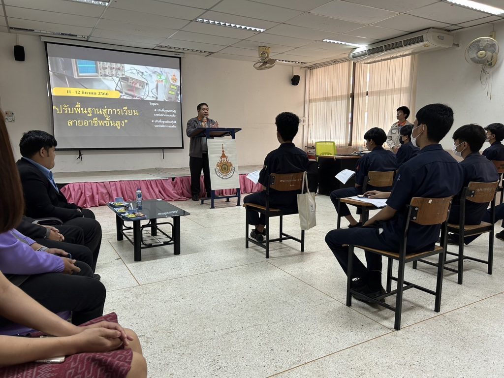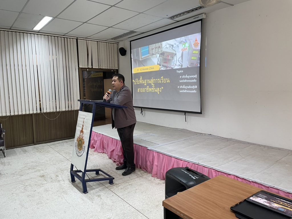 วันที่ 11-12 มีนาคม 2566 โรงเรียนสาธิตเตรียมวิศวกรรมและเทคโนโลยี คณะอุตสาหกรรมและเทคโนโลยี จัดโครงการปรับพื้นฐานสู่การเรียนสายอาชีพชั้นสูง ให้กับนักศึกษาทุนนวัตกรรมสายอาชีพชั้นสูง สาขาวิชาช่างไฟฟ้ากำลัง รุ่นที่ 4 ณ โรงเรียนสาธิตเตรียมวิศวกรรมและเทคโนโลยี โดยมีวัตถุประสงค์เพื่อให้นักศึกษามีความรู้ ความเข้าใจพื้นฐานวิชาชีพช่างไฟฟ้ากำลัง และสามารถนำความรู้ไปต่อยอดได้ในอนาคตได้ โดยได้รับเกียรติจาก อาจารย์ทรงฤทธิ์ ธนะคำดี จากวิทยาลัยเทคนิคสกลนคร เป็นวิทยากร ในการนี้ ผศ.ดร.พรเทพ ปัญญาแก้ว รองคณบดีฝ่ายบริหาร ให้เกียรติเป็นประธานในพิธีเปิดโครงการ