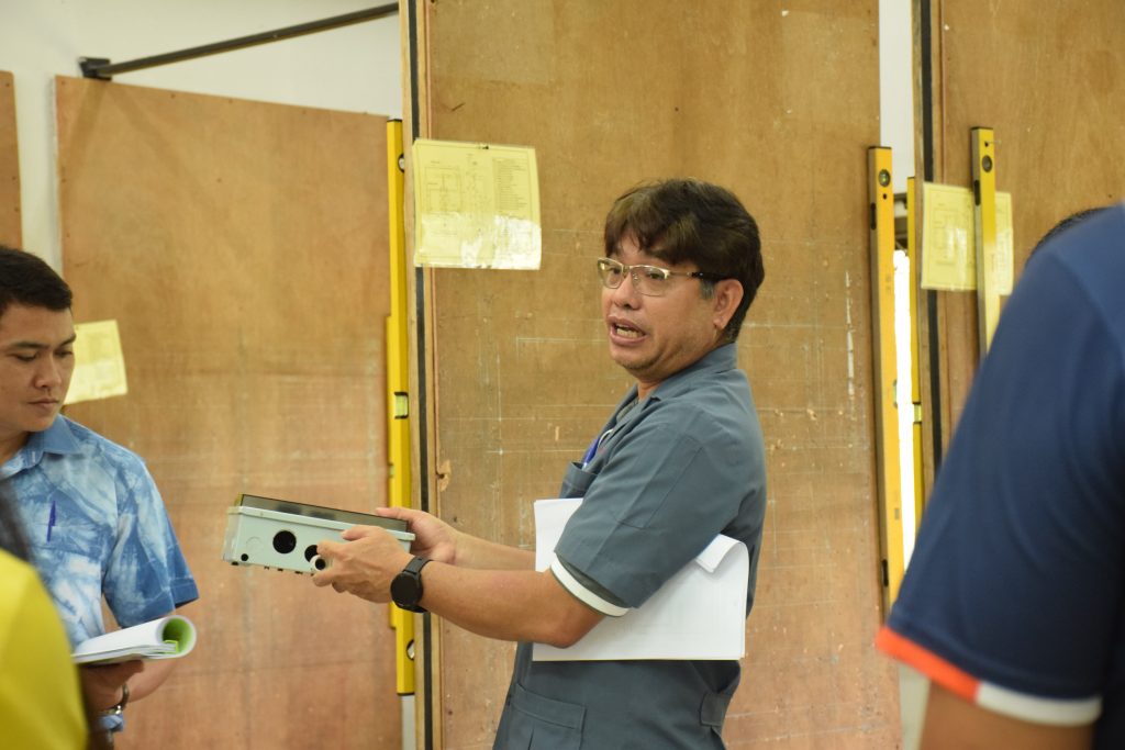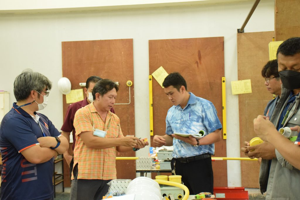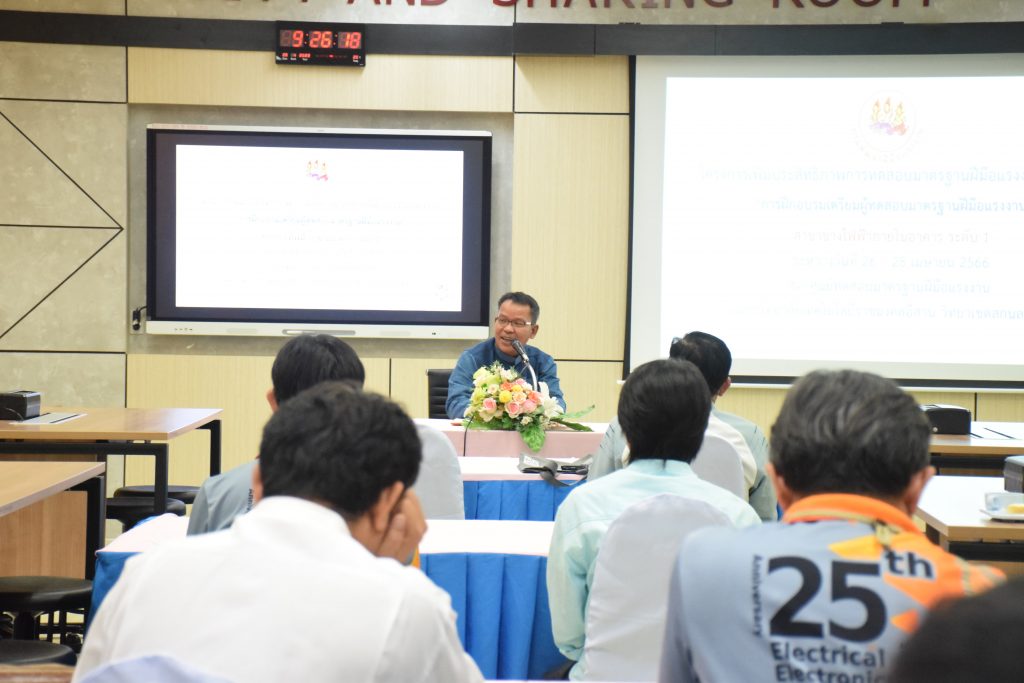 วันที่ 26 – 28 เมษายน 2566 คณะอุตสาหกรรมและเทคโนโลยี มทร.อีสาน วิทยาเขตสกลนคร ร่วมกับ สำนักงานพัฒนาฝีมือแรงงานสกลนคร กรมพัฒนาฝีมือแรงงาน จัดโครงการฝึกอบรมเตรียมผู้ทดสอบมาตรฐานฝีมือแรงงาน สาขาช่างไฟฟ้าภายในอาคาร ระดับ 1 ณ ห้องปฏิบัติการสร้างต้นแบบนวัตกรรม คณะอุตสาหกรรมและเทคโนโลยี เพื่อเพิ่มประสิทธิภาพการทดสอบมาตรฐานฝีมือแรงงาน และเพิ่มจำนวนผู้ทดสอบมาตรฐานฝีมือแรงงาน ในการนี้ ผศ.น.สพ.ดร.ชเวง สารคล่อง รองอธิการบดีประจำวิทยาเขตสกลนคร ให้เกียรติเป็นประธานในพิธีเปิดโครงการ โดยมีผู้เข้าร่วมโครงการประกอบด้วยคณาจารย์ มทร.อีสาน จากวิทยาเขตต่างๆ ซึ่งได้รับเกียรติจาก คุณไชยรัตน์ ฉัตรศุภกุล ผู้อำนวยการสำนักงานพัฒนาฝีมือแรงงานสกลนคร คุณอรัญชา รัตนบุตร ครูฝึกฝีมือแรงงาน ระดับ ช3 และ ผศ.ดร.กฤตยา สมสัย อาจารย์สาขาวิศวกรรมไฟฟ้าคณะอุตสาหกรรมและเทคโนโลยี เป็นวิทยากร