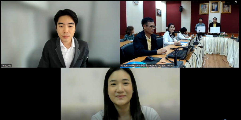 วันที่ 10 พฤษภาคม 2566 คณะอุตสาหกรรมและเทคโนโลยี มทร.อีสาน วิทยาเขตสกลนคร นำโดย ผศ.ดร.พรเทพ ปัญญาแก้ว รองคณบดีฝ่ายบริหาร ลงนามบันทึกข้อตกลงความร่วมมือทางวิชาการ (MoU) ร่วมกับบริษัท โฟลว์แอคเคาท์ จํากัด นำโดย คุณกฤษฎา ชุตินธร ผู้ร่วมก่อตั้ง บริษัท โฟลว์แอคเคาท์ จํากัด ผ่านระบบออนไลน์ Zoom Meeting ณ ห้องประชุมสำนักงานคณบดี คณะอุตสาหกรรมและเทคโนโลยี โดยมีวัตถุประสงค์เพื่อร่วมกันพัฒนาหลักสูตรการอบรมเกี่ยวกับโปรแกรมโฟลว์แอคเคาท์ ยกระดับมาตรฐานวิชาชีพและร่วมมือในการพัฒนานักศึกษาโปรแกรมวิชาการบัญชีให้ได้มาตรฐาน สอดคล้องกับความต้องการขององค์กรผู้ใช้บัณฑิตและตลาดการจ้างงาน โดยมีคณะผู้บริหาร คณาจารย์สาขาวิชาบัญชีและเจ้าหน้าที่เข้าร่วมพิธีอย่างพร้อมเพรียงกัน