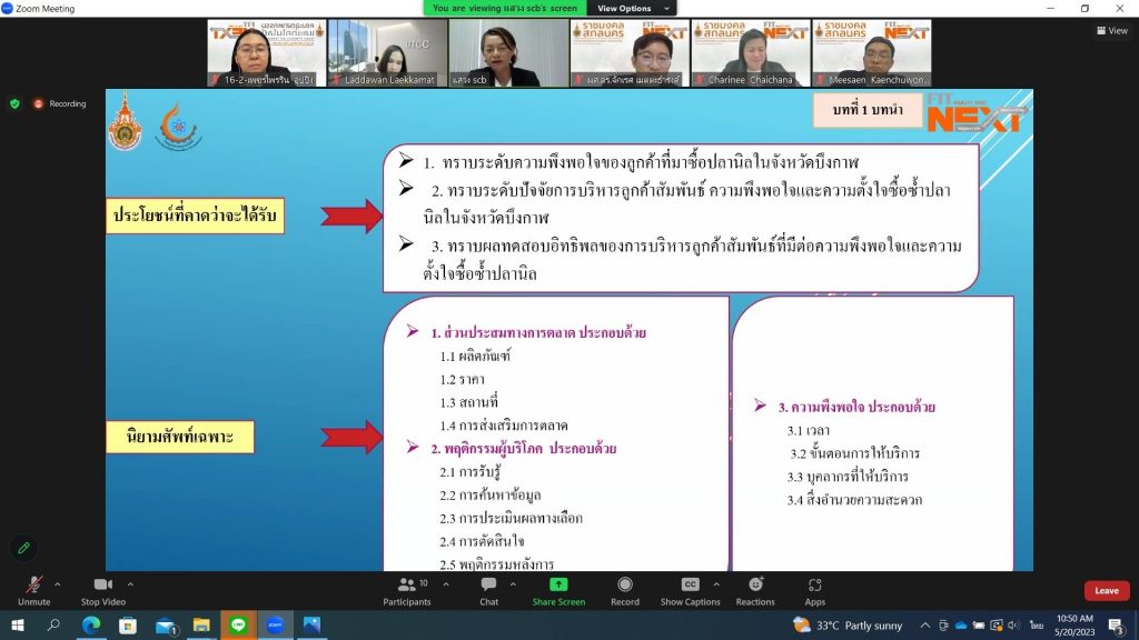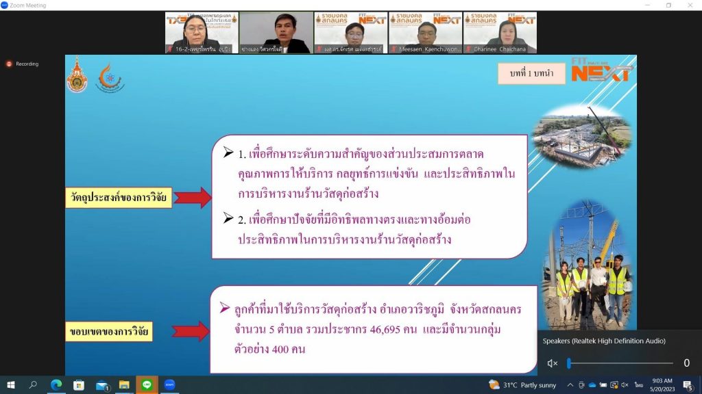 วันที่ 20 พฤษภาคม 2566 หลักสูตรบริหารธุรกิจมหาบัณฑิต (MBA) คณะอุตสาหกรรมและเทคโนโลยี มหาวิทยาลัยเทคโนโลยีราชมงคลอีสาน วิทยาเขตสกลนคร จัดกิจกรรมสอบหัวข้อวิทยานิพนธ์ สำหรับนักศึกษาระดับปริญญาโท รุ่นที่ 3 ณ แลโขงวิว รีสอร์ท อำเภอเมือง จังหวัดบึงกาฬ ผ่านระบบ Hybrid Meeting โดย มีผู้ทรงคุณวุฒิภายนอกเป็นประธานในการสอบ นำโดย ผู้ช่วยศาสตราจารย์ ดร.กริช แรงสูงเนิน จากมหาวิทยาลัยขอนแก่น วิทยาเขตหนองคาย และ รองศาสตราจารย์ ดร. ลัดดาวัลย์ เลขมาศ จากมหาวิทยาลัยหอการค้าไทย