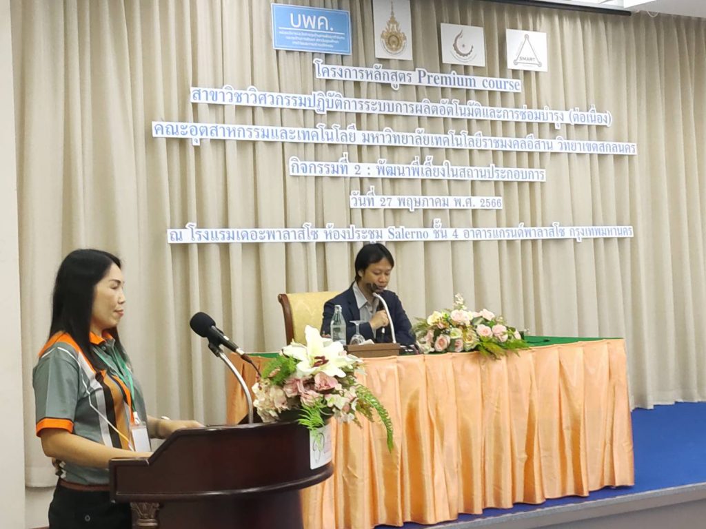 วันที่ 27 – 28 พฤษภาคม 2566 คณะอุตสาหกรรมและเทคโนโลยี มทร.อีสาน วิทยาเขตสกลนคร จัดโครงการหลักสูตร Premium.Course สาขาวิชาวิศวกรรมปฏิบัติการระบบการผลิตอัตโนมัติและการซ่อมบำรุง (ต่อเนื่อง) ภายใต้โครงการแพลตฟอร์มบริหารจัดการทรัพยากรผู้มีศักยภาพของกลุ่มมหาวิทยาลัยเทคโนโลยีราชมงคล เพื่อปฏิรูประบบการพัฒนากำลังคนของประเทศฯ ณ ห้องประชุม Salerno โรงแรมเดอะ พาลาสโซ กรุงเทพมหานคร โดยมีกิจกรรมพัฒนาพี่เลี้ยงในสถานประกอบการ และกิจกรรมบ่มเพาะและทดสอบสมรรถนะให้นักศึกษาในหลักสูตร Premium course ในการนี้ ได้รับเกียรติจาก รศ.ดร.ชลธี โพธิ์ทอง รองคณบดีฝ่ายบริหาร บัณฑิตวิทยาลัย มหาวิทยาลัยมหาสารคาม คุณโภคิน ประสิทธิ์สุทธิพร กรรมการผู้จัดการ บริษัท สมาร์ท (2015) เซอร์วิสเซส จำกัด ผศ.ดร.จีระพงศ์ ศรีวิชัย และอาจารย์ ดร.อภิวัฒน์ ด่านแก้ว เป็นวิทยากร