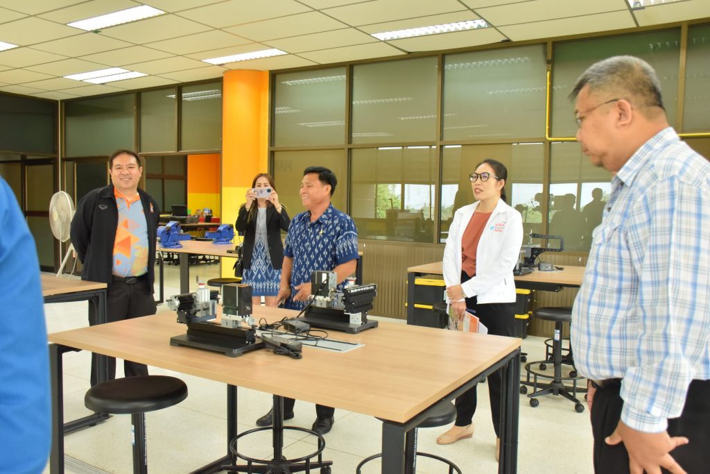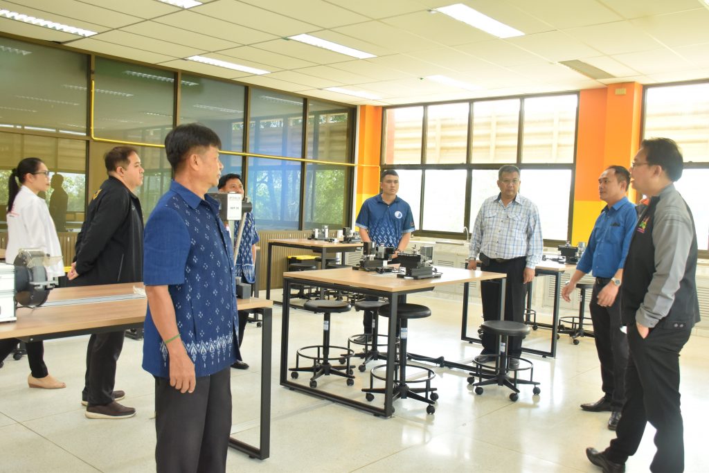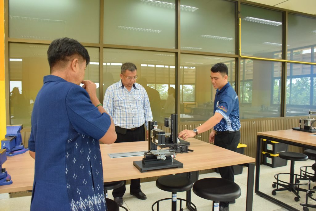 วันที่ 1 มิถุนายน 2566 คณะอุตสาหกรรมและเทคโนโลยี มทร.อีสาน วิทยาเขตสกลนคร นำโดย ผศ.ดร.สุริยา แก้วอาษา พร้อมคณะผู้บริหาร คณาจารย์ และเจ้าหน้าที่ ร่วมต้อนรับคณะผู้บริหารจาก องค์การบริหารส่วนตำบลมาย ตำบลมาย อำเภอบ้านม่วง จังหวัดสกลนคร นำโดย นายรัสนี แง่พรหม รองนายกองค์การบริหารส่วนตำบลมาย นายชูเชิด อุประ รองนายกองค์การบริหารส่วนตำบลมาย นายศุภวัฒน์ สหะจิตตา รองปลัดองค์การบริหารส่วนตำบลมาย และคณะ ในโอกาสเข้าหารือแนวทางการดำเนินงาน การแลกเปลี่ยนความรู้ทางวิชาการ งานวิจัย บุคลากร และการถ่ายทอดนวัตกรรมเพื่อพัฒนาสังคม ทั้งนี้ได้เข้าศึกษาดูงาน ณ ห้องปฏิบัติการสร้างต้นแบบนวัตกรรม และศูนย์การเรียนรู้ระบบขนส่งทางราง คณะอุตสาหกรรมและเทคโนโลยี