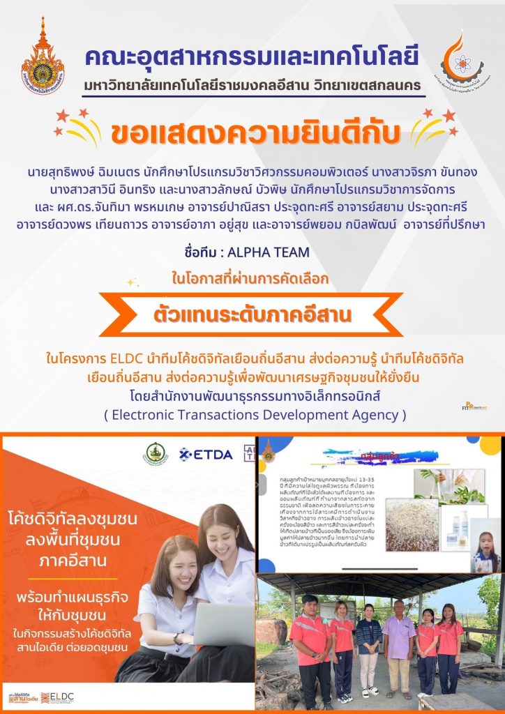 ในโครงการ ELDC นำทีมโค้ชดิจิทัลเยือนถิ่นอีสาน ส่งต่อความรู้ นำทีมโค้ชดิจิทัลเยือนถิ่นอีสาน ส่งต่อความรู้เพื่อพัฒนาเศรษฐกิจชุมชนให้ยั่งยืน โดยสำนักงานพัฒนาธุรกรรมทางอิเล็กทรอนิกส์ ( Electronic Transactions Development Agency )