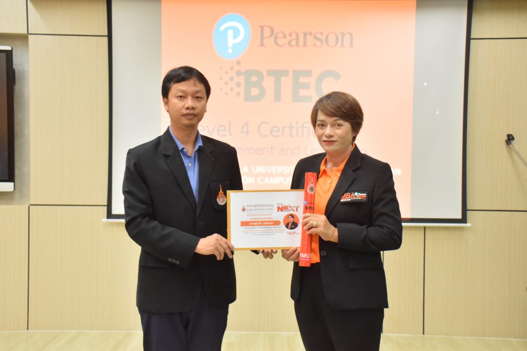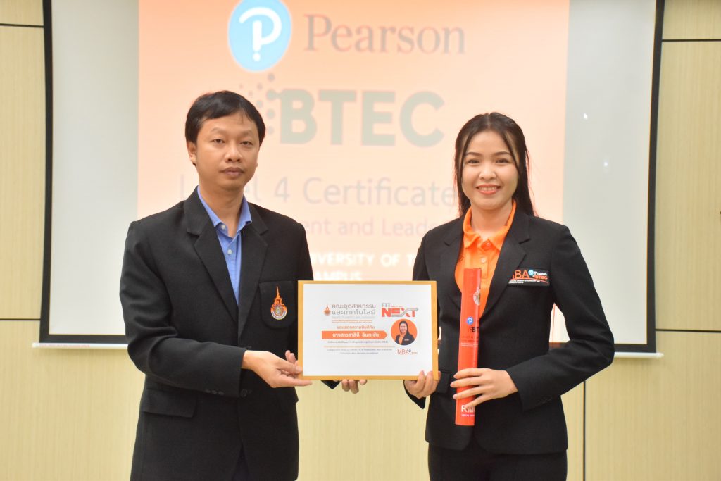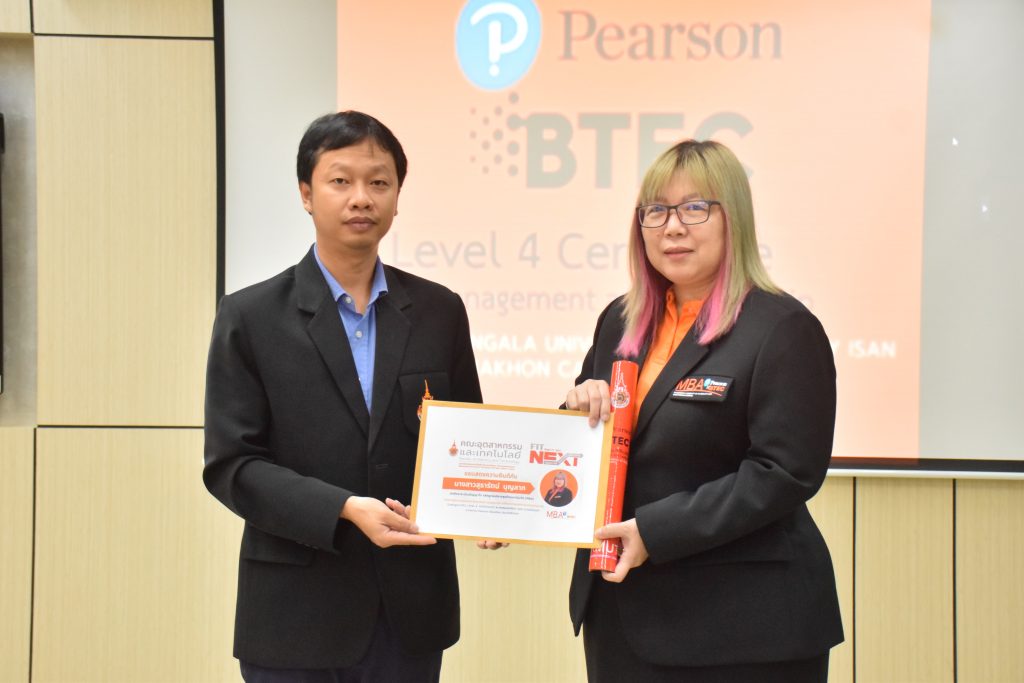วันที่ 17 มิถุนายน 2566 คณะอุตสาหกรรมและเทคโนโลยี มทร.อีสาน วิทยาเขตสกลนคร จัดพิธีมอบใบประกาศ Pearson BTEC Level 4 Certificate in Management and Leadership ประเทศอังกฤษ แก่นักศึกษาระดับปริญญาโท หลักสูตรบริหารธุรกิจมหาบัณฑิต (MBA) สาขาวิชาบริหารธุรกิจ รุ่นที่ 3 โดยในปีการศึกษา 2565 มีนักศึกษาผ่านการทดสอบมาตรฐาน Pearson BTEC จำนวน 6 คน ในการนี้ ผศ.ดร.สัณหวัจน์ ทองแดง รองคณบดีฝ่ายวิชาการและวิจัย ให้เกียรติเป็นประธานในพิธีมอบใบประกาศแก่นักศึกษา