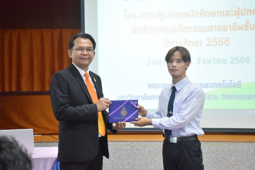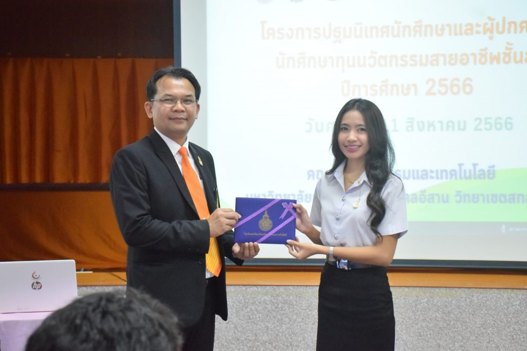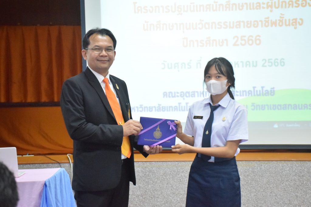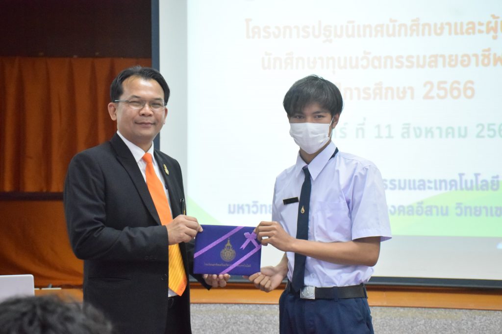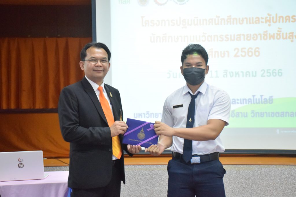 วันที่ 11 สิงหาคม 2566 คณะอุตสาหกรรมและเทคโนโลยี มทร.อีสาน วิทยาเขตสกลนคร จัดโครงการปฐมนิเทศนักศึกษาและผู้ปกครองนักศึกษาทุนนวัตกรรมสายอาชีพสูง กองทุนเพื่อความเสมอภาคทางการศึกษา (กสศ.) ประจำปี 2566 ณ ห้องประชุมค้ำคูณ 4 ชั้น 5 อาคารสำนักงานคณบดี เพื่อให้ผู้ปกครองและนักศึกษาได้รู้และเข้าใจถึงกฎระเบียบ ข้อบังคับของมหาวิทยาลัย การดูแลนักศึกษา การเตรียมความพร้อมในการศึกษา และการสร้างความสัมพันธ์ที่ดีระหว่างผู้ปกครองกับสถานศึกษา โดยได้รับเกียรติจาก อาจารย์จารุวัฒน์ ถาวรไพศาลชีวะ รองคณบดีฝ่ายพัฒนานักศึกษา อาจารย์ขอบคุณ ไชยวงศ์ หัวหน้าโรงเรียนสาธิตเตรียมวิศวกรรมและเทคโนโลยี คุณธัญพร ก้านเกศ เจ้าหน้าที่หารงานทั่วไป เป็นวิทยากร ในการนี้ ผศ.ดร.สุริยา แก้วอาษา คณบดีคณะอุตสาหกรรมและเทคโนโลยี ให้เกียรติเป็นประธานในพิธีเปิดโครงการ