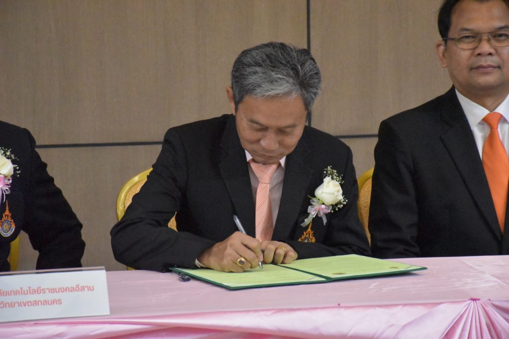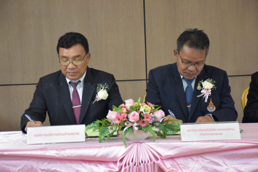 วันที่ 31 สิงหาคม 2566 คณะอุตสาหกรรมและเทคโนโลยี มทร.อีสาน วิทยาเขตสกลนคร จัดพิธีลงนามบันทึกข้อตกลงความร่วมมือทางวิชาการ (MOU) ระหว่าง มหาวิทยาลัยเทคโนโลยี ราชมงคลอีสาน วิทยาเขตสกลนคร ร่วมกับ องค์กรปกครองส่วนท้องถิ่น จำนวน 5 แห่ง เพื่อสร้างเครือข่ายทางการศึกษา งานวิจัย การบริการวิชาการ รวมถึงการแลกเปลี่ยนข้อมูลข่าวสาร ผลงานทางวิชาการ และการบริการชุมชน โดยองค์กรปกครองส่วนท้องถิ่นที่ร่วมลงนามครั้งนี้ ได้แก่ เทศบาลตำบลพังโคน เทศบาลตำบลพรรณนานิคม เทศบาลตำบลหนองกุงศรี เทศบาลตำบลท่าแร่ และองค์การบริหารส่วนตำบลมาย ในการนี้ ผศ.น.สพ.ดร.ชเวง สารคล่อง รองอธิการบดี ประจำวิทยาเขตสกลนคร ให้เกียรติเป็นประธานในพิธี โดยมีคณะผู้บริหาร คณาจารย์และเจ้าหน้าที่เข้าร่วมพิธีโดยพร้อมเพรียงกัน