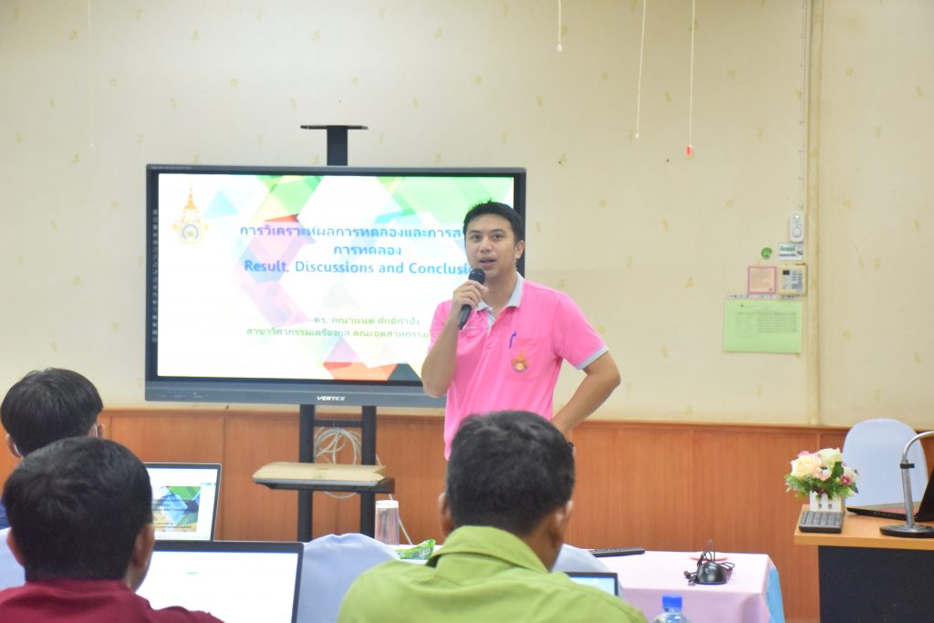 วันที่ 10 กันยายน 2566 คณะอุตสาหกรรมและเทคโนโลยี จัดกิจกรรมสัมมนาพัฒนาทักษะ ระดับบัณฑิตศึกษา หลักสูตรวิศวกรรมศาสตรมหาบัณฑิต สาขาวิชาวิศวกรรมไฟฟ้า และสาขาวิชาวิศวกรรมเครื่องกล ณ ห้องประชุมสำนักงานคณบดี อาคารสำนักงานคณบดีคณะอุตสาหกรรมและเทคโนโลยี เพื่อพัฒนาทักษะความรู้ด้านการจัดทำวิทยานิพนธ์ การจัดทำอินโฟกราฟิกส์ ไดอะแกรม การนำเสนออภิปรายผลการทดลอง ให้เป็นไปด้วยความถูกต้องตามหลักเกณฑ์การเขียนวิทยานิพนธ์ และระเบียบการวิจัย โดยได้รับเกียรติจาก ผศ.ดร.สัณหวัจน์ ทองแดง ผศ.ดร.สุริยา โชคเพิ่มพูน อาจารย์ ดร.คุณานนต์ ศักดิ์กำปัง และ อาจารย์ ดร.สุรเชรษฐ์ สีชำนาญ เป็นวิทยากร ในการนี้ ผศ.ดร.สัณหวัจน์ ทองแดง รองคณบดีฝ่ายวิชาการและวิจัย ให้เกียรติเป็นประธานพิธีเปิดงาน