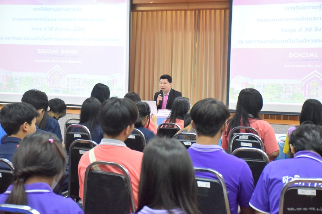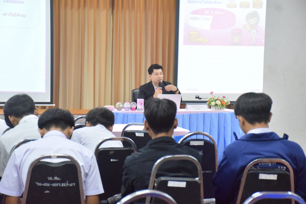 วันที่ 11 กันยายน 2566 คณะอุตสาหกรรมและเทคโนโลยี จัดโครงการส่งเสริมการวางแผนทางการเงินของนักศึกษาทุนนวัตกรรมวิชาชีพชั้นสูง กลุ่มแผน 5 ปี (ปวช.) รุ่น 2 ณ ห้องประชุมค้ำคูณ 4 ชั้น 5 อาคารสำนักงานคณบดีคณะอุตสาหกรรมและเทคโนโลยี เพื่อส่งเสริมความรู้ด้านการเงินแก่นักศึกษา การวางแผนการใช้จ่ายเงิน กระบวนการออมเงิน และสามารถนำความรู้ไปประยุกต์ใช้ในชีวิตประจำวันได้อย่างเหมาะสม โดยได้รับเกียรติจาก คุณกัมพล ชุปวา ผู้ช่วยผู้จัดการธนาคารออมสิน สาขาสกลนคร และ ผศ.ดร.เพชรไพรริน อุปปิง ประธานศูนย์บัณฑิตนักปฏิบัติธนาคารจำลอง โปรแกรมวิชาบัญชี เป็นวิทยากร นอกจากนี้ยังมีนักศึกษาโปรแกรมวิชาบัญชี จากศูนย์บัณฑิตนักปฏิบัติธนาคารจำลอง มาให้ความรู้และให้บริการเปิดบัญชีเงินออมให้กับนักศึกษาอีกด้วย ในการนี้ ผศ.ดร.สุริยา แก้วอาษา คณบดีคณะอุตสาหกรรมและเทคโนโลยี ให้เกียรติเป็นประธาน ในพิธีเปิดโครงการ