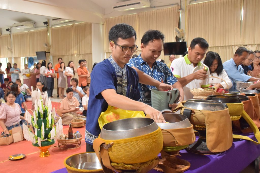 วันที่ 21 กันยายน 2566 คณะอุตสาหกรรมและเทคโนโลยี มทร.อีสาน วิทยาเขตสกลนคร นำโดย ผศ. ดร.สุริยา แก้วอาษา คณบดีคณะอุตสาหกรรมและเทคโนโลยี พร้อมด้วยคณะผู้บริหาร คณาจารย์ และเจ้าหน้าที่ เข้าร่วมพิธีบายศรีสู่ขวัญผู้เกษียณภายใต้โครงการสร้างเสริมคุณภาพชีวิตสำหรับบุคลากร โดยมีกิจกรรมทำบุญตักบาตรพระสงฆ์ 9 รูป พิธีบายศรีสู่ขวัญ และกิจกรรมมอบของที่ระลึกแก่ผู้เกษียณอายุราชการ ในการนี้ ผศ.น.สพ.ดร. ชเวง สารคล่อง รองอธิการบดีประจำวิทยาเขตสกลนคร ให้เกียรติเป็นประธานในพิธี