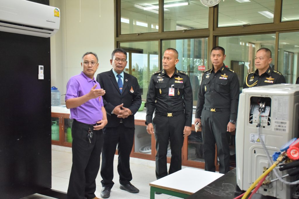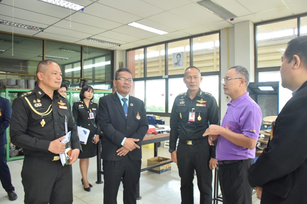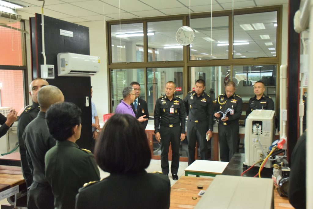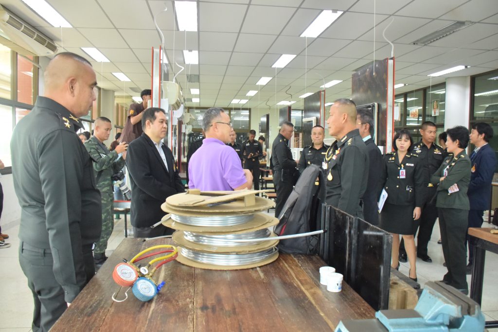 วันที่ 27 กันยายน 2566 คณะอุตสาหกรรมและเทคโนโลยี นำโดย ผศ.ดร.สัณหวัจน์ ทองแดง รองคณบดีฝ่ายวิชาการและวิจัย ผศ.ดร.พรเทพ ปัญญาแก้ว รองคณบดีฝ่ายบริหาร พร้อมคณะผู้บริหาร คณาจารย์ และเจ้าหน้าที่ ร่วมต้อนรับ พันเอกระลึก คนใหญ่ รองผู้บัญชาการมณฑลทหารบกที่ 29 พร้อมคณะ กรมทหารราบ ที่ 3 กองพันทหารราบที่ 1 กรมทหารราบที่ 3 หน่วยฝึกนักศึกษาวิชาทหาร มณฑลทหารบกที่ 29 โรงพยาบาลค่ายกฤษณ์สีวะรา ในโอกาสเข้าศึกษาดูงาน และร่วมประชุมหารือขับเคลื่อนความร่วมมือทางวิชาการ และอาชีพ ให้กับบุคลากรทั้งสองหน่วยงาน โดยได้เข้าเยี่ยมชมห้องปฏิบัติการ การอบรมยานยนต์ไฟฟ้า ศูนย์ทดสอบมาตรฐานฝีมือแรงงาน สาขาช่างเครื่องปรับอากาศในบ้านและการพาณิชย์ขนาดเล็ก ระดับ 1 และศูนย์ทดสอบมาตรฐานฝีมือแรงงาน สาขาช่างบำรุงรักษารถยนต์ ระดับ 1 ณ อาคารสำนักงานคณบดี คณะอุตสาหกรรมและเทคโนโลยี