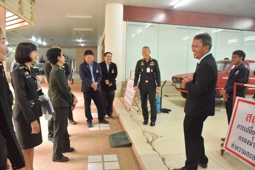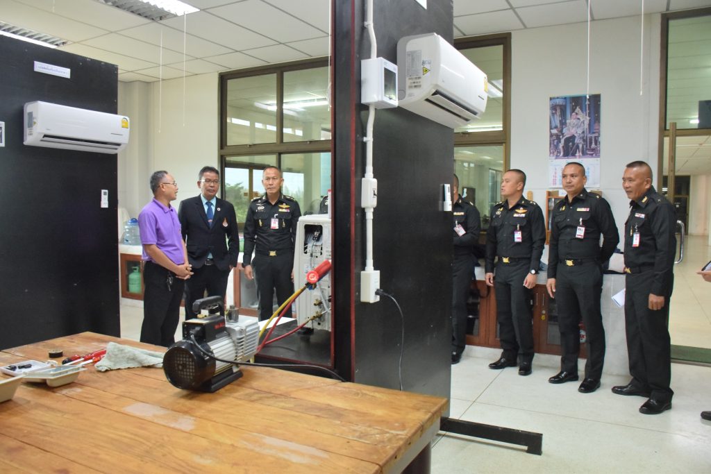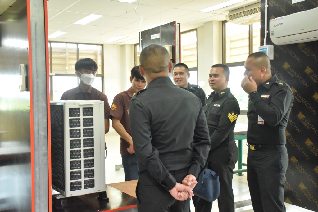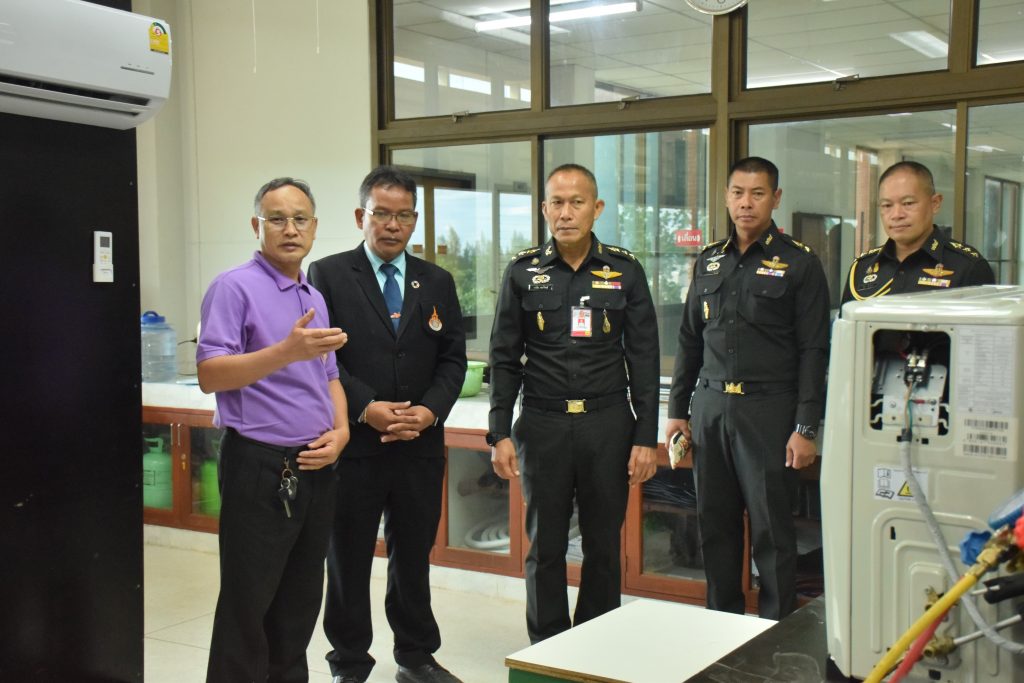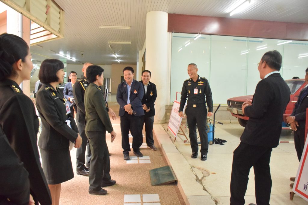 วันที่ 27 กันยายน 2566 คณะอุตสาหกรรมและเทคโนโลยี นำโดย ผศ.ดร.สัณหวัจน์ ทองแดง รองคณบดีฝ่ายวิชาการและวิจัย ผศ.ดร.พรเทพ ปัญญาแก้ว รองคณบดีฝ่ายบริหาร พร้อมคณะผู้บริหาร คณาจารย์ และเจ้าหน้าที่ ร่วมต้อนรับ พันเอกระลึก คนใหญ่ รองผู้บัญชาการมณฑลทหารบกที่ 29 พร้อมคณะ กรมทหารราบ ที่ 3 กองพันทหารราบที่ 1 กรมทหารราบที่ 3 หน่วยฝึกนักศึกษาวิชาทหาร มณฑลทหารบกที่ 29 โรงพยาบาลค่ายกฤษณ์สีวะรา ในโอกาสเข้าศึกษาดูงาน และร่วมประชุมหารือขับเคลื่อนความร่วมมือทางวิชาการ และอาชีพ ให้กับบุคลากรทั้งสองหน่วยงาน โดยได้เข้าเยี่ยมชมห้องปฏิบัติการ การอบรมยานยนต์ไฟฟ้า ศูนย์ทดสอบมาตรฐานฝีมือแรงงาน สาขาช่างเครื่องปรับอากาศในบ้านและการพาณิชย์ขนาดเล็ก ระดับ 1 และศูนย์ทดสอบมาตรฐานฝีมือแรงงาน สาขาช่างบำรุงรักษารถยนต์ ระดับ 1 ณ อาคารสำนักงานคณบดี คณะอุตสาหกรรมและเทคโนโลยี