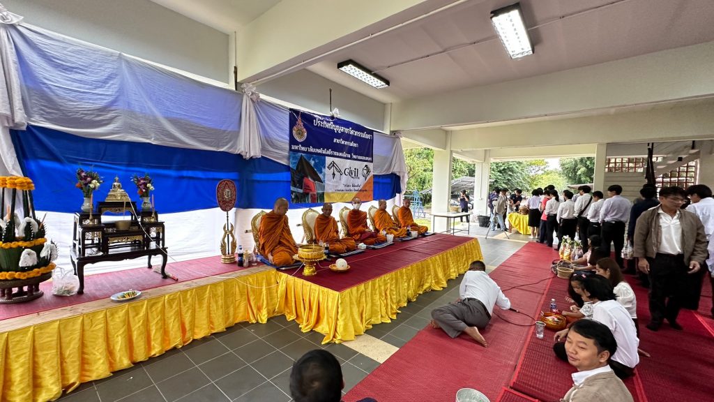 วันที่ 30 กันยายน 2566 สาขาวิศวกรรมโยธา คณะอุตสาหกรรมและเทคโนโลยี มทร.อีสาน วิทยาเขตสกลนคร จัดโครงการ “บุญสาขา วิศวกรรมโยธา และบายศรีสู่ขวัญนักศึกษาใหม่ สาขาวิศวกรรมโยธา” ประจำปี 2566 ณ อาคารสาขาวิศวกรรมโยธา คณะอุตสาหกรรมและเทคโนโลยี โดยมีวัตถุประสงค์เพื่อให้นักศึกษาได้ทำงานร่วมกัน สร้างความสัมพันธ์ระหว่างรุ่นพี่กับรุ่นน้อง ก่อให้เกิดความรักสามัคคี และส่งเสริมการอนุรักษ์ศิลปะวัฒนธรรม โดยมีคณะผู้บริหาร คณาจารย์ เจ้าหน้าที่ และนักศึกษาเข้าร่วมโครงการโดยพร้อมเพรียงกัน