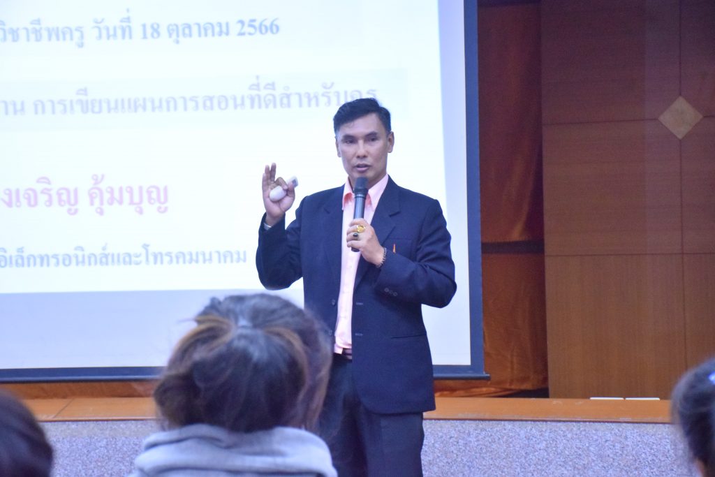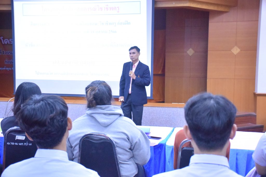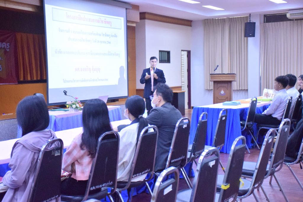 วันที่ 18 ตุลาคม 2566 คณะอุตสาหกรรมและเทคโนโลยี มทร.อีสาน วิทยาเขตสกลนคร จัดกิจกรรมอบรมเตรียมความพร้อมทักษะวิชาชีพครูก่อนฝึกประสบการณ์วิชาชีพครู ณ ห้องประชุม ค้ำคูณ 4 ชั้น 5 อาคารสำนักงานคณบดีคณะอุตสาหกรรมและเทคโนโลยี โดยมีวัตถุประสงค์เพื่อเพิ่มเติมประสบการณ์ทางด้านอาชีพแก่นักศึกษา แนวทางการปฏิบัติตนในการฝึกประสบการณ์วิชาชีพครู เปิดโอกาสให้หน่วยงานทั้งภาครัฐและเอกชนได้มีส่วนร่วมในการพัฒนาคุณภาพบัณฑิต ให้ตรงความต้องการขององค์กรผู้ใช้บัณฑิต โดยได้รับเกียรติจาก ผศ.จงเจริญ คุ้มบุญ อาจารย์ขอบคุณ ไชยวงศ์ อาจารย์อุรา คล่องแคล่ว และ ผศ.ดร.นิธิโรจน์ พรสุวรรณเจริญ เป็นวิทยากร ในการนี้ ผศ.ดร.สุริยา แก้วอาษา คณบดีคณะอุตสาหกรรมและเทคโนโลยี ให้เกียรติเป็นประธานในพิธีเปิดโครงการ