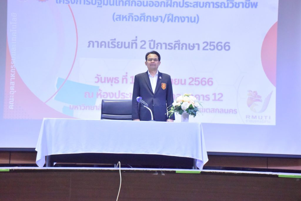 วันที่ 1 พฤศจิกายน 2566 คณะอุตสาหกรรมเเละเทคโนโลยี มทร.อีสาน วิทยาเขตสกลนคร จัดโครงการปฐมนิเทศก่อนออกสหกิจศึกษา ภาคเรียนที่ 2 ปีการศึกษา 2566 ณ ห้องประชุมราชมงคล อาคารเรียนรวม มหาวิทยาลัยเทคโนโลยีราชมงคลอีสาน วิทยาเขตสกลนคร โดยมีวัตถุประสงค์เพื่อให้นักศึกษามีความเข้าใจเกี่ยวกับการปฏิบัติตนระหว่างปฏิบัติงานใน สถานประกอบการ สร้างเสริมคุณลักษณะและสรรถนะของนักศึกษาให้ตรงตามความต้องการขององค์กรผู้ใช้บัณฑิต ในการนี้ ผศ. ดร.สุริยา แก้วอาษา คณบดีคณะอุตสาหกรรมและเทคโนโลยี ให้เกียรติ เป็นประธานในพิธีเปิดโครงการ โดยมีนักศึกษาเข้าร่วมโครงการครั้งนี้จำนวน 319 คน