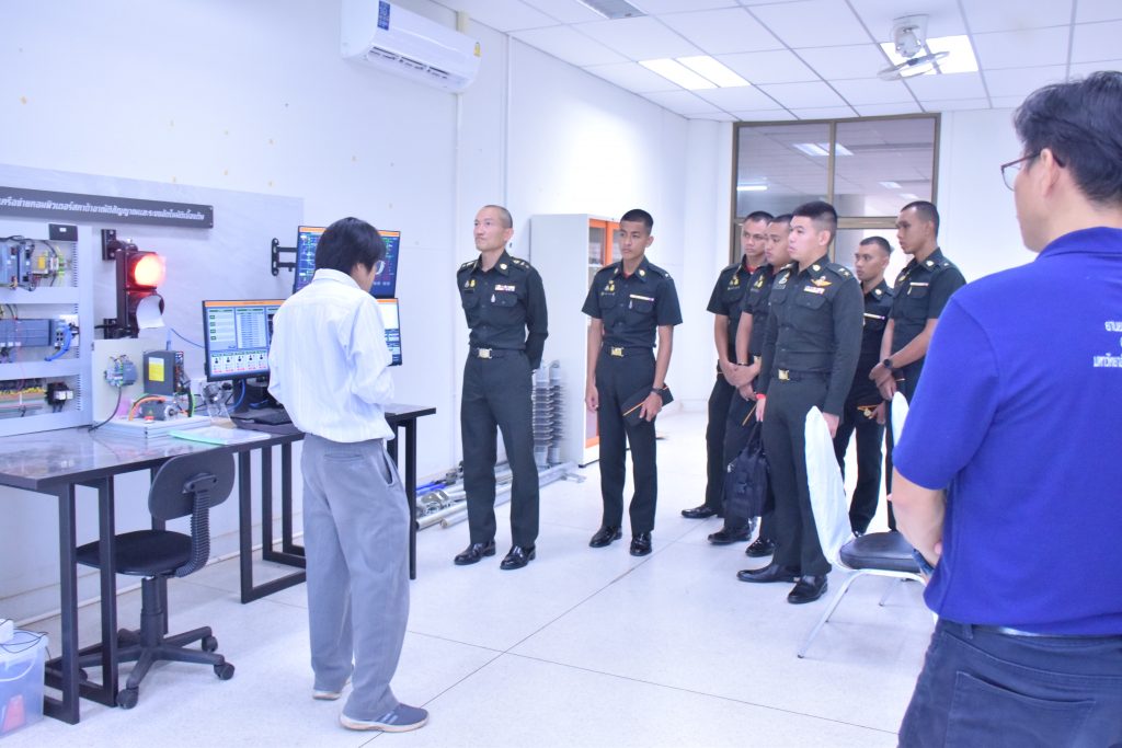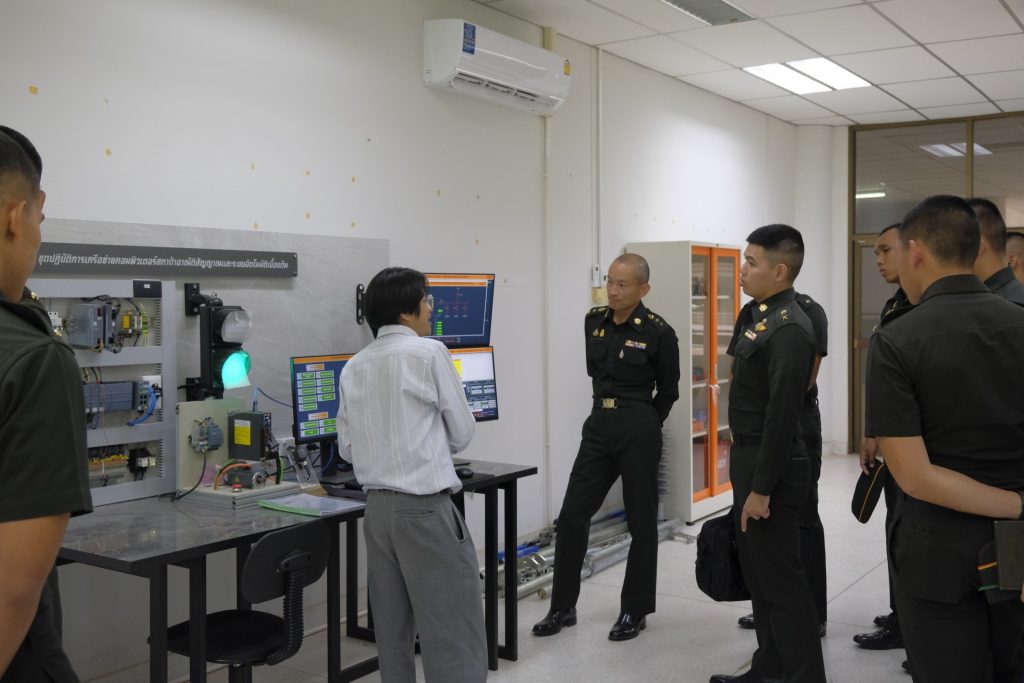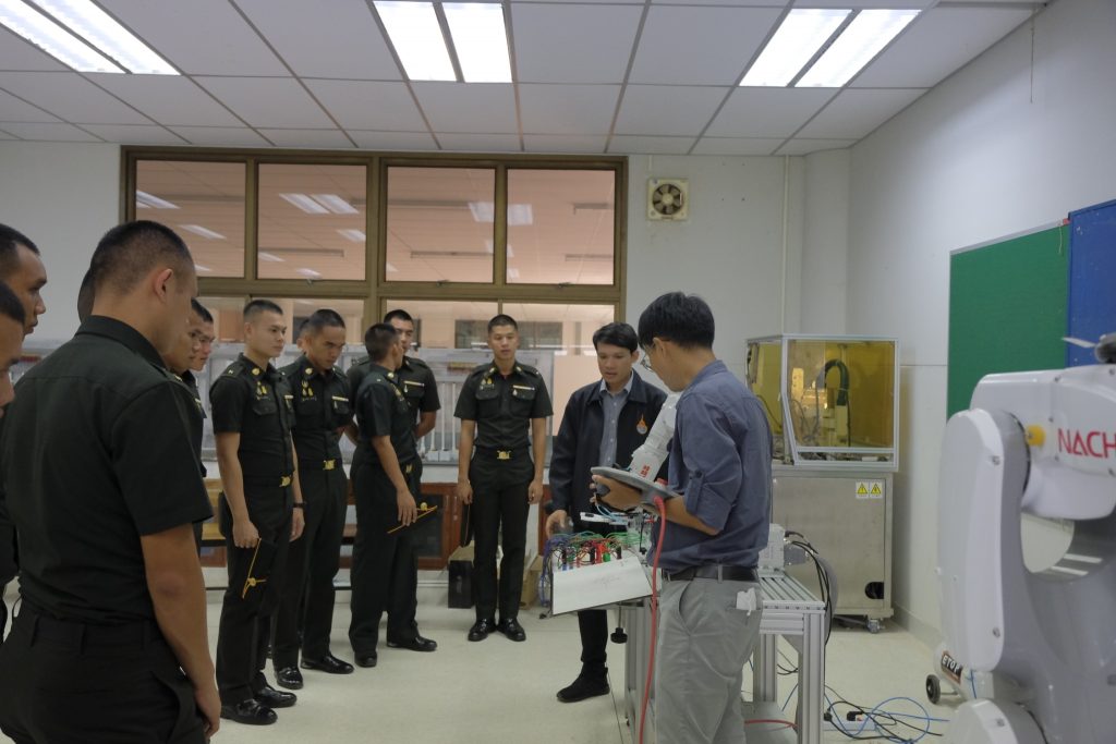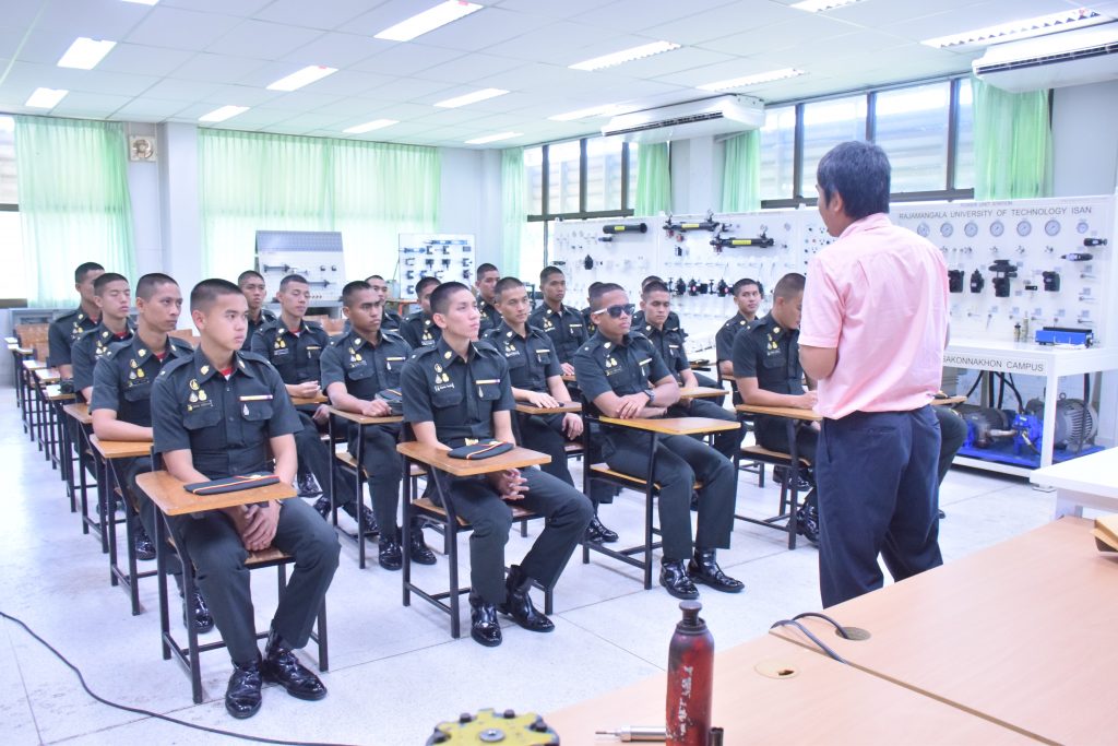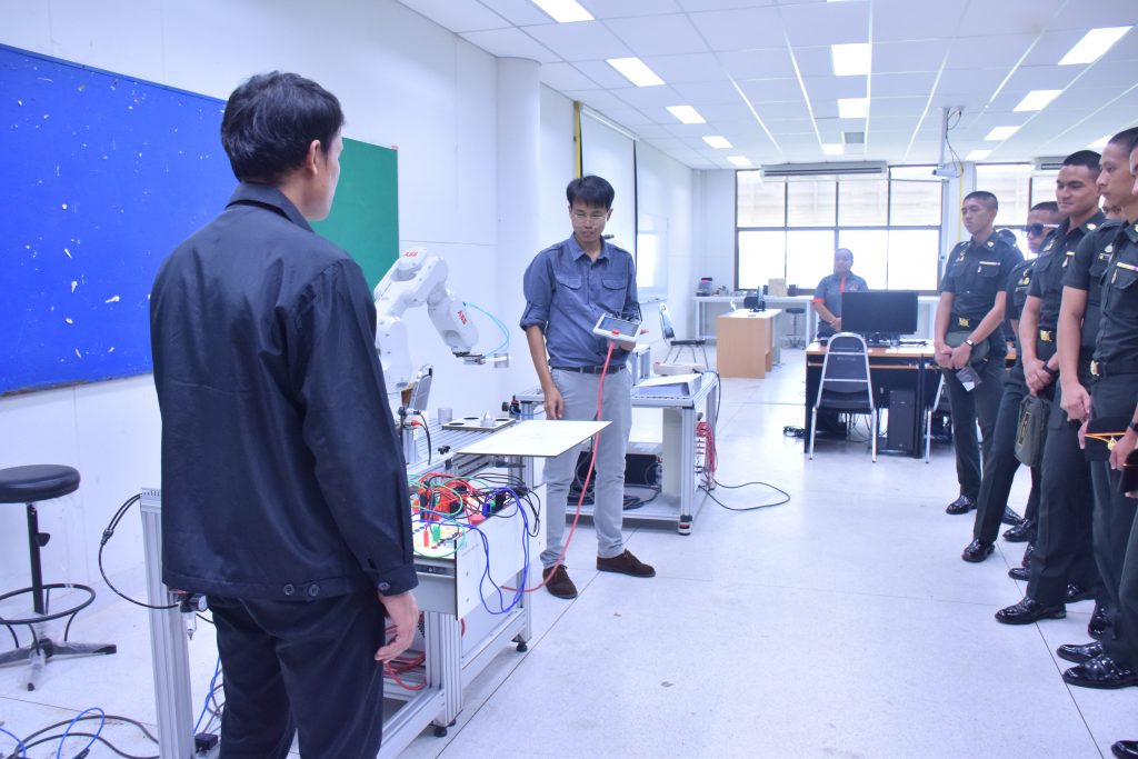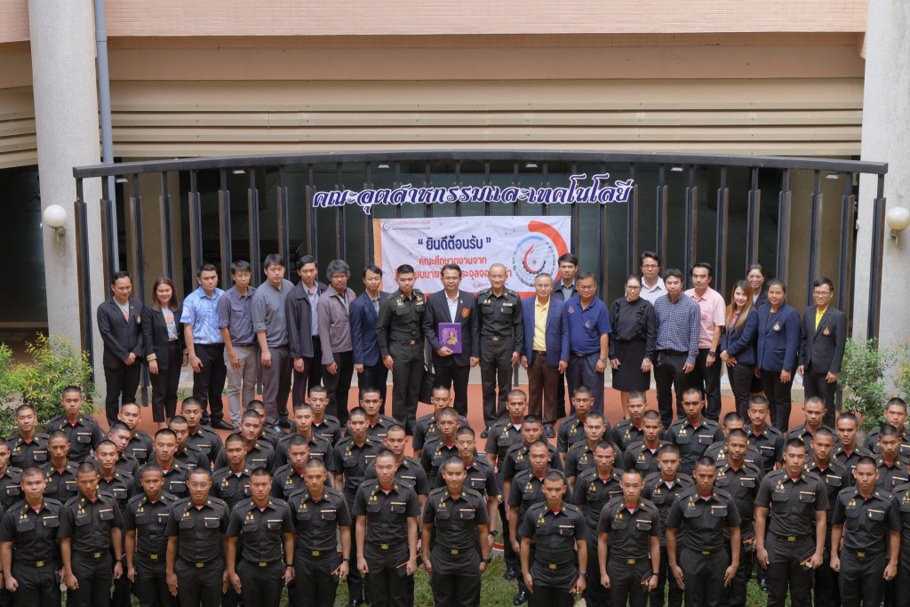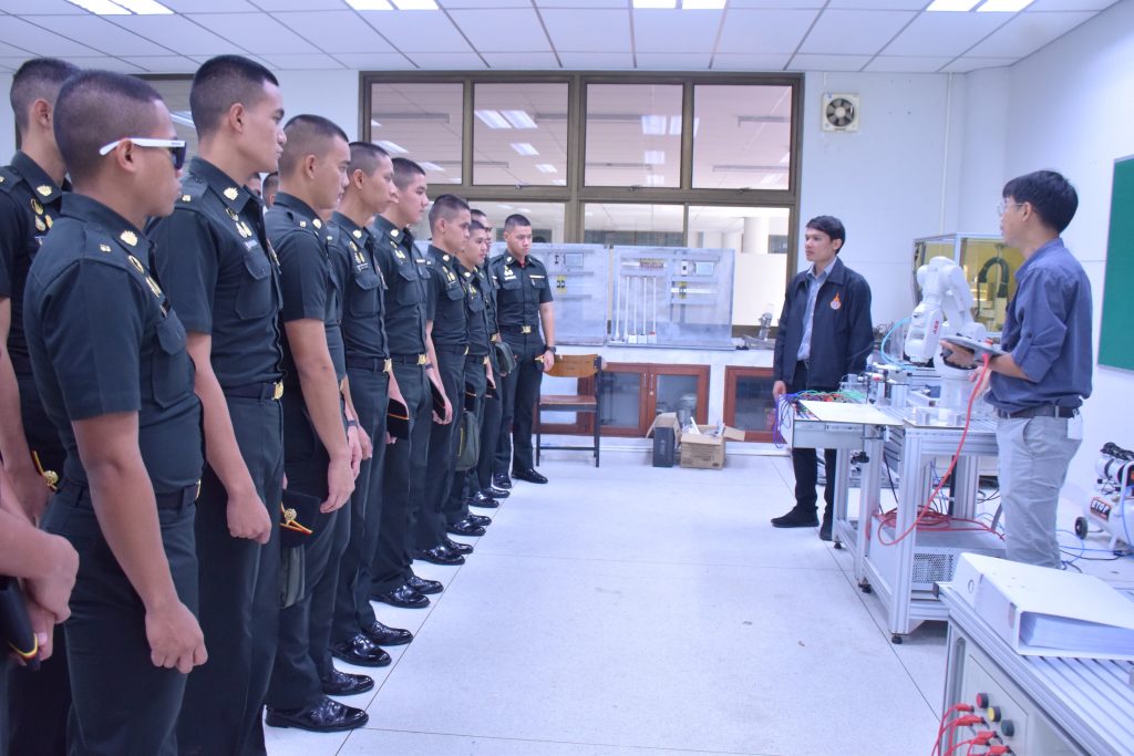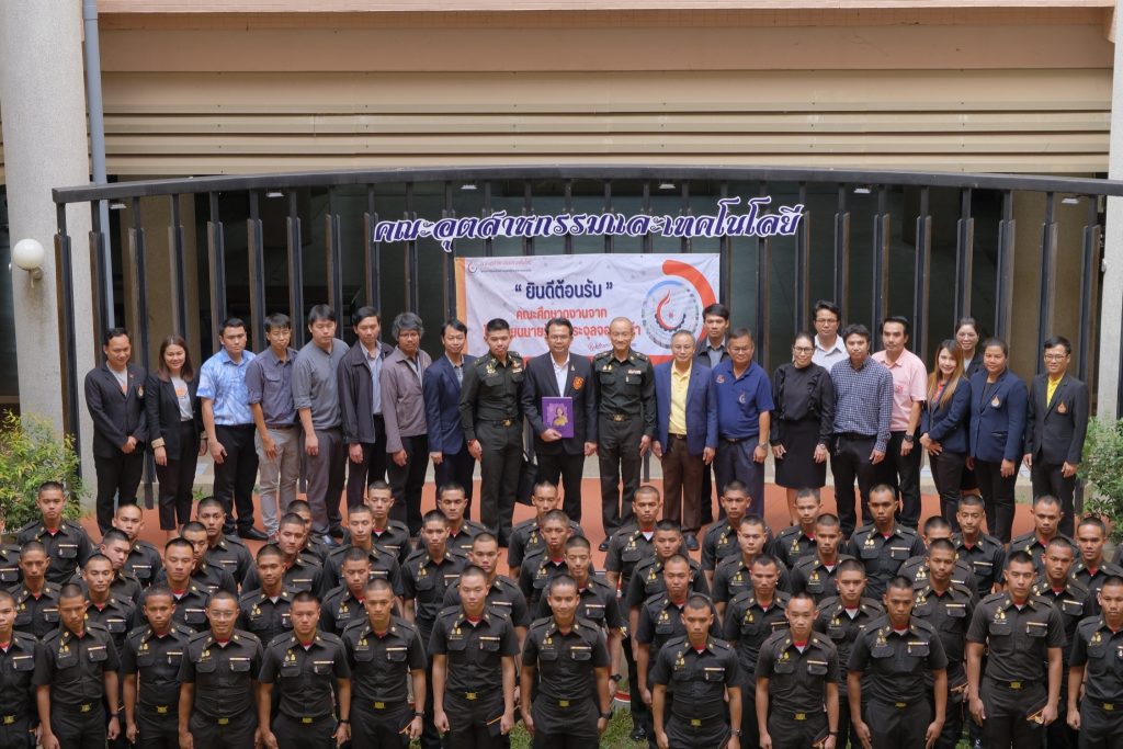 วันที่ 1 พฤศจิกายน 2566 คณะอุตสาหกรรมเเละเทคโนโลยี มทร.อีสาน วิทยาเขตสกลนคร นำโดย ผศ.น.สพ.ดร.ชเวง สารคล่อง รองอธิการบดีประจำวิทยาเขตสกลนคร ผศ.ดร.สุริยา แก้วอาษา คณบดีคณะอุตสาหกรรมเเละเทคโนโลยี พร้อมด้วยคณะผู้บริหาร คณาจารย์ และเจ้าหน้าที่ ร่วมต้อนรับคณะศึกษาดูงาน จากโรงเรียนนายร้อยพระจุลจอมเกล้า (รร.จปร.) ในโอกาสเข้าเยี่ยมชมและฟังบรรยายการจัดการเรียนการสอน ผลงานนวัตกรรม และหลักสูตรด้านวิศวกรรมเครื่องกล คณะอุตสาหกรรมเเละเทคโนโลยี เพื่อเพิ่มพูนความรู้ทางวิชาการและประสบการณ์อันจะเป็นประโยชน์ต่อการศึกษาของนักเรียนนายร้อยต่อไปในอนาคต โดยได้เข้าเยี่ยมชมนิทรรศการผลงานนวัตกรรมคณะอุตสาหกรรมและเทคโนโลยี ห้องปฏิบัติการระบบควบคุมอัตโนมัติและหุ่นยนต์ ห้องปฏิบัติการไฮดรอลิกส์ ห้องปฎิบัตการระบบอาณัติสัญญาณรถไฟ ห้องปฎิบัติการนิวแมติกส์ ศูนย์ทดสอบฝีมือแรงงาน สาขาเครื่องปรับอากาศภายในบ้านและการพาณิชย์ขนาดเล็ก ระดับ 1 และ โรงงานกลั่นน้ำมันหอมระเหยเชิงพาณิชย์