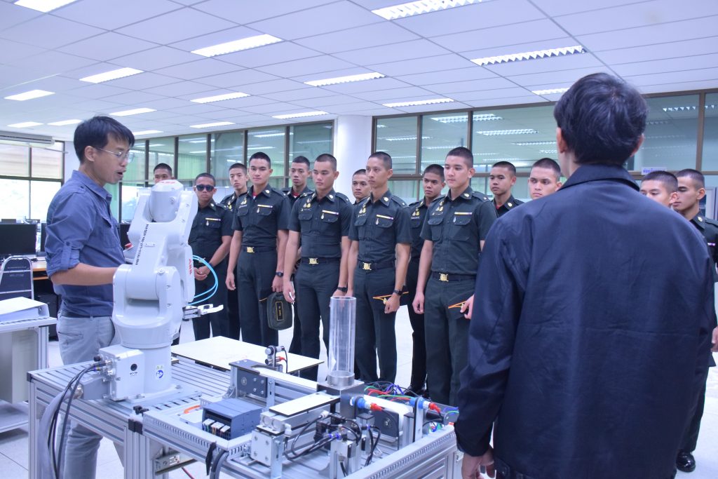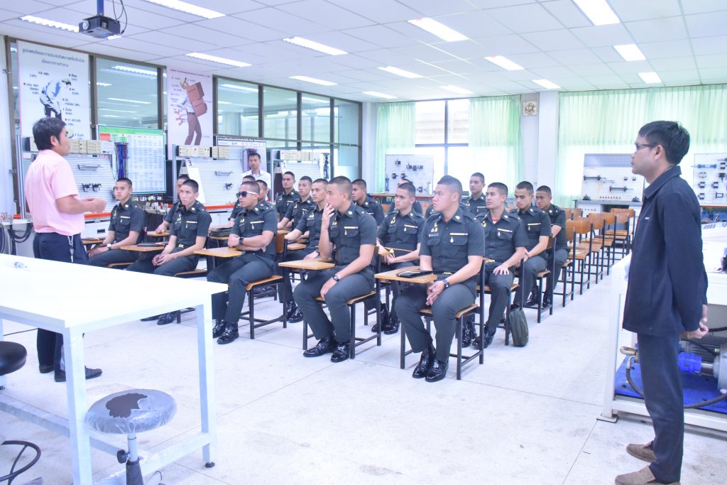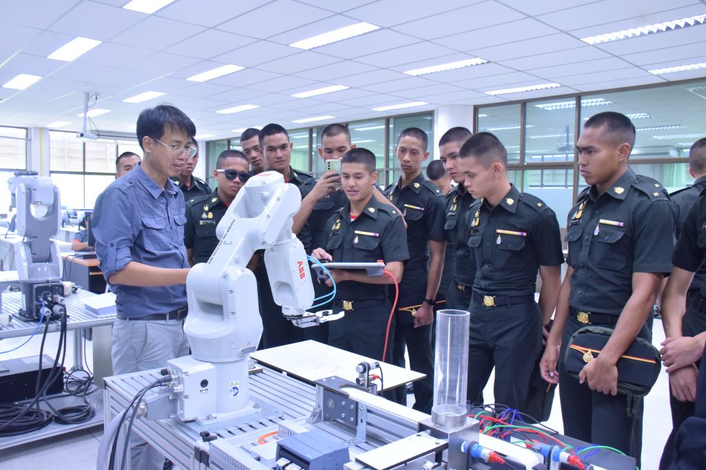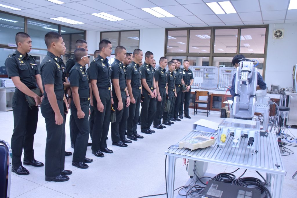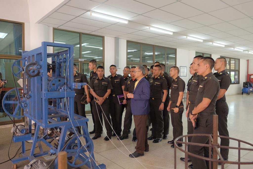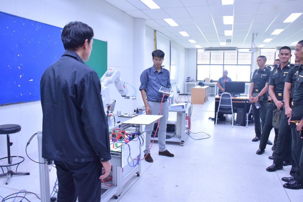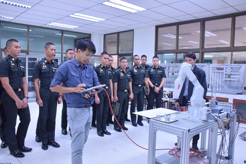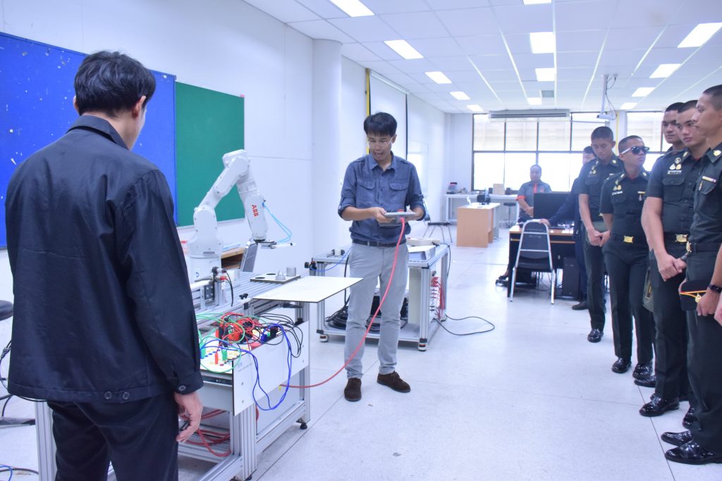 วันที่ 1 พฤศจิกายน 2566 คณะอุตสาหกรรมเเละเทคโนโลยี มทร.อีสาน วิทยาเขตสกลนคร นำโดย ผศ.น.สพ.ดร.ชเวง สารคล่อง รองอธิการบดีประจำวิทยาเขตสกลนคร ผศ.ดร.สุริยา แก้วอาษา คณบดีคณะอุตสาหกรรมเเละเทคโนโลยี พร้อมด้วยคณะผู้บริหาร คณาจารย์ และเจ้าหน้าที่ ร่วมต้อนรับคณะศึกษาดูงาน จากโรงเรียนนายร้อยพระจุลจอมเกล้า (รร.จปร.) ในโอกาสเข้าเยี่ยมชมและฟังบรรยายการจัดการเรียนการสอน ผลงานนวัตกรรม และหลักสูตรด้านวิศวกรรมเครื่องกล คณะอุตสาหกรรมเเละเทคโนโลยี เพื่อเพิ่มพูนความรู้ทางวิชาการและประสบการณ์อันจะเป็นประโยชน์ต่อการศึกษาของนักเรียนนายร้อยต่อไปในอนาคต โดยได้เข้าเยี่ยมชมนิทรรศการผลงานนวัตกรรมคณะอุตสาหกรรมและเทคโนโลยี ห้องปฏิบัติการระบบควบคุมอัตโนมัติและหุ่นยนต์ ห้องปฏิบัติการไฮดรอลิกส์ ห้องปฎิบัตการระบบอาณัติสัญญาณรถไฟ ห้องปฎิบัติการนิวแมติกส์ ศูนย์ทดสอบฝีมือแรงงาน สาขาเครื่องปรับอากาศภายในบ้านและการพาณิชย์ขนาดเล็ก ระดับ 1 และ โรงงานกลั่นน้ำมันหอมระเหยเชิงพาณิชย์