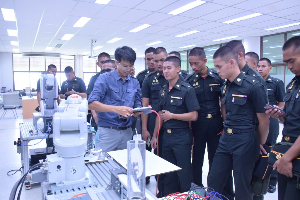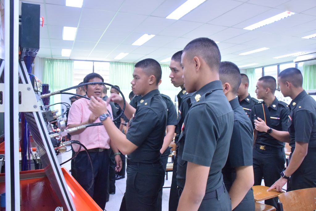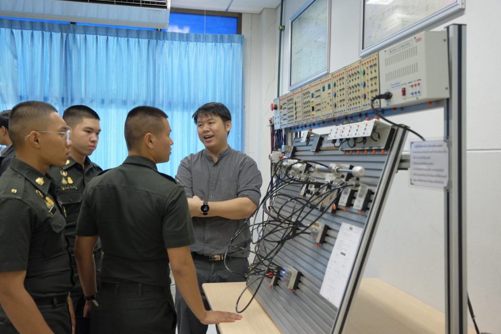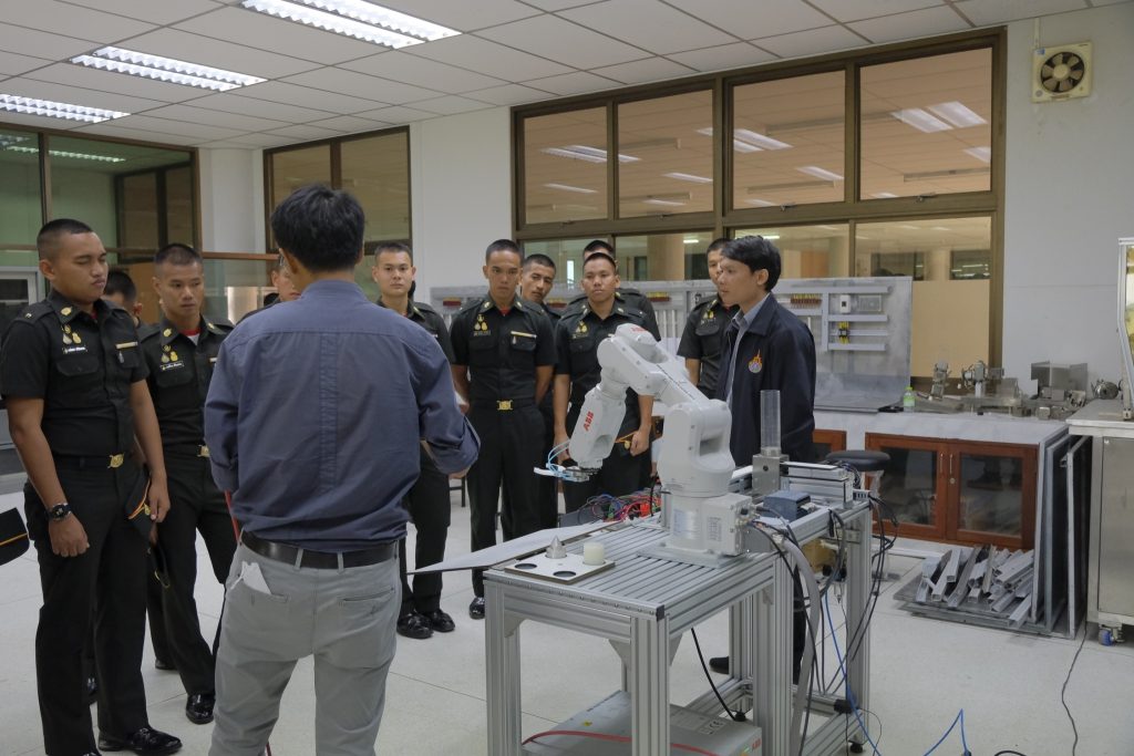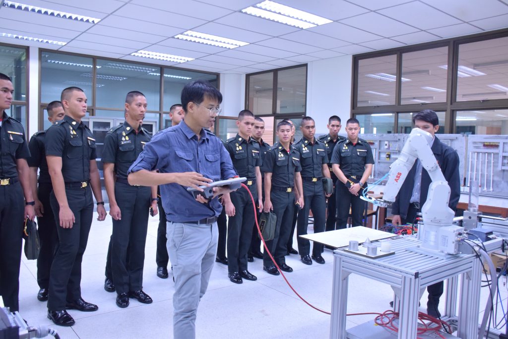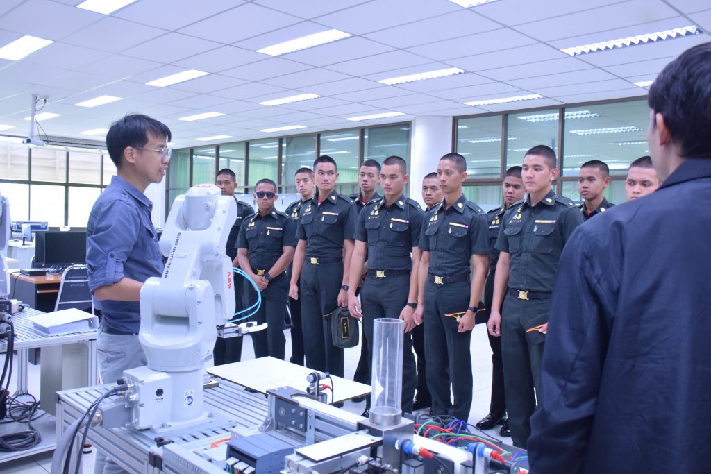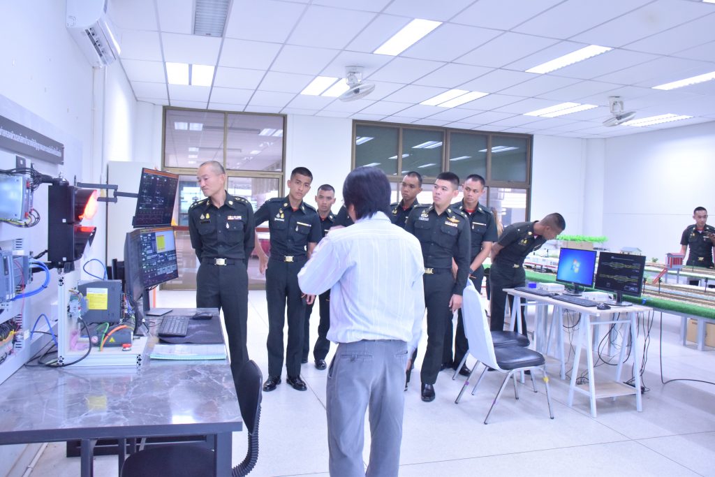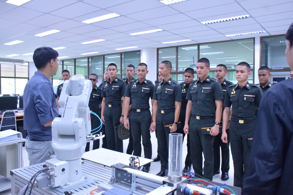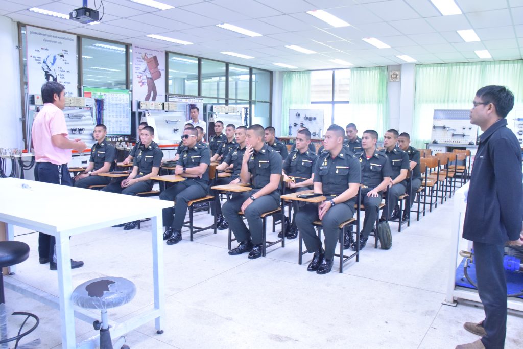 วันที่ 1 พฤศจิกายน 2566 คณะอุตสาหกรรมเเละเทคโนโลยี มทร.อีสาน วิทยาเขตสกลนคร นำโดย ผศ.น.สพ.ดร.ชเวง สารคล่อง รองอธิการบดีประจำวิทยาเขตสกลนคร ผศ.ดร.สุริยา แก้วอาษา คณบดีคณะอุตสาหกรรมเเละเทคโนโลยี พร้อมด้วยคณะผู้บริหาร คณาจารย์ และเจ้าหน้าที่ ร่วมต้อนรับคณะศึกษาดูงาน จากโรงเรียนนายร้อยพระจุลจอมเกล้า (รร.จปร.) ในโอกาสเข้าเยี่ยมชมและฟังบรรยายการจัดการเรียนการสอน ผลงานนวัตกรรม และหลักสูตรด้านวิศวกรรมเครื่องกล คณะอุตสาหกรรมเเละเทคโนโลยี เพื่อเพิ่มพูนความรู้ทางวิชาการและประสบการณ์อันจะเป็นประโยชน์ต่อการศึกษาของนักเรียนนายร้อยต่อไปในอนาคต โดยได้เข้าเยี่ยมชมนิทรรศการผลงานนวัตกรรมคณะอุตสาหกรรมและเทคโนโลยี ห้องปฏิบัติการระบบควบคุมอัตโนมัติและหุ่นยนต์ ห้องปฏิบัติการไฮดรอลิกส์ ห้องปฎิบัตการระบบอาณัติสัญญาณรถไฟ ห้องปฎิบัติการนิวแมติกส์ ศูนย์ทดสอบฝีมือแรงงาน สาขาเครื่องปรับอากาศภายในบ้านและการพาณิชย์ขนาดเล็ก ระดับ 1 และ โรงงานกลั่นน้ำมันหอมระเหยเชิงพาณิชย์