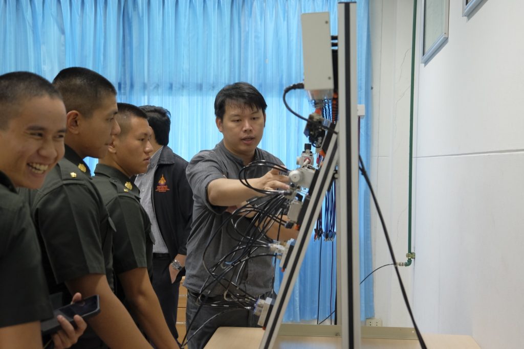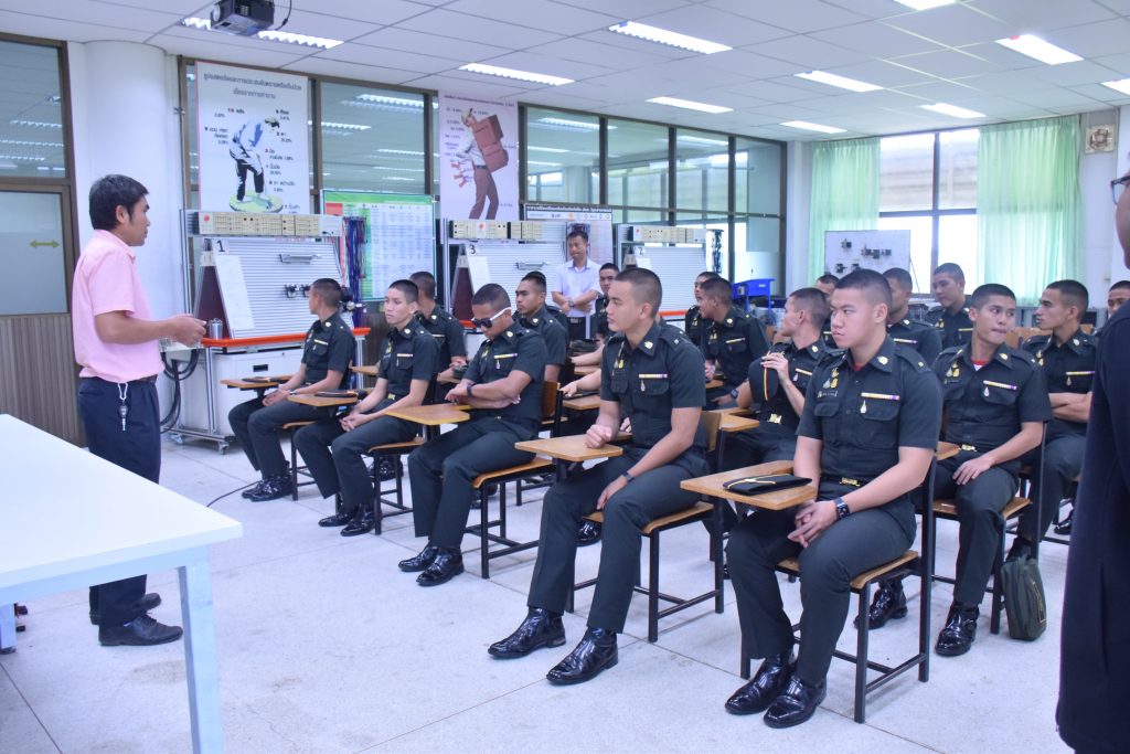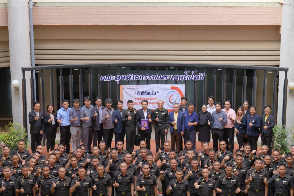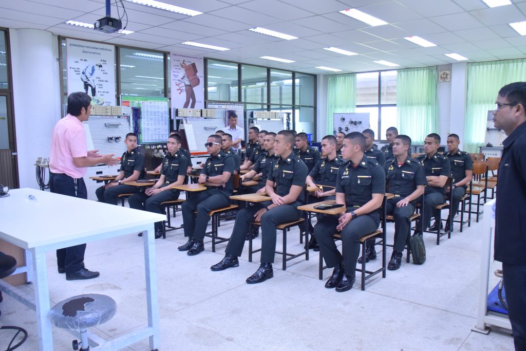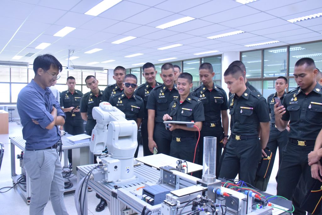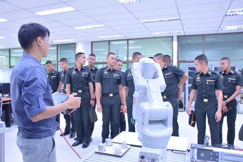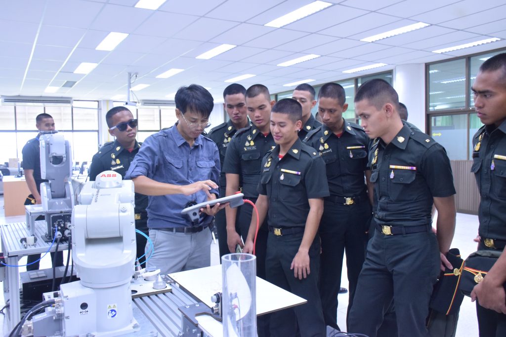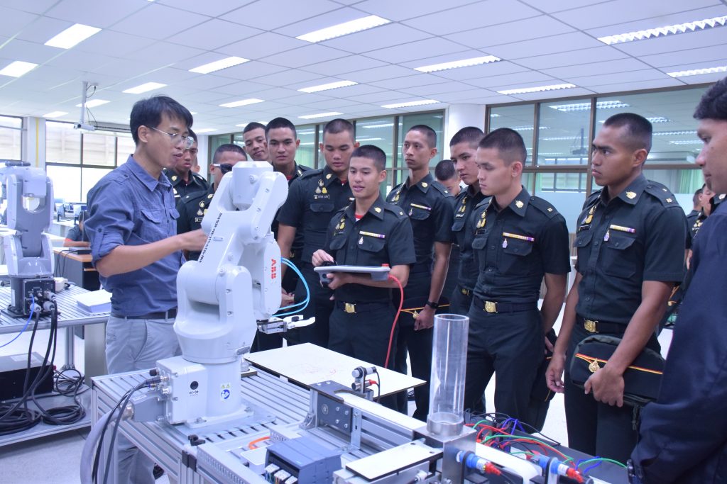 วันที่ 1 พฤศจิกายน 2566 คณะอุตสาหกรรมเเละเทคโนโลยี มทร.อีสาน วิทยาเขตสกลนคร นำโดย ผศ.น.สพ.ดร.ชเวง สารคล่อง รองอธิการบดีประจำวิทยาเขตสกลนคร ผศ.ดร.สุริยา แก้วอาษา คณบดีคณะอุตสาหกรรมเเละเทคโนโลยี พร้อมด้วยคณะผู้บริหาร คณาจารย์ และเจ้าหน้าที่ ร่วมต้อนรับคณะศึกษาดูงาน จากโรงเรียนนายร้อยพระจุลจอมเกล้า (รร.จปร.) ในโอกาสเข้าเยี่ยมชมและฟังบรรยายการจัดการเรียนการสอน ผลงานนวัตกรรม และหลักสูตรด้านวิศวกรรมเครื่องกล คณะอุตสาหกรรมเเละเทคโนโลยี เพื่อเพิ่มพูนความรู้ทางวิชาการและประสบการณ์อันจะเป็นประโยชน์ต่อการศึกษาของนักเรียนนายร้อยต่อไปในอนาคต โดยได้เข้าเยี่ยมชมนิทรรศการผลงานนวัตกรรมคณะอุตสาหกรรมและเทคโนโลยี ห้องปฏิบัติการระบบควบคุมอัตโนมัติและหุ่นยนต์ ห้องปฏิบัติการไฮดรอลิกส์ ห้องปฎิบัตการระบบอาณัติสัญญาณรถไฟ ห้องปฎิบัติการนิวแมติกส์ ศูนย์ทดสอบฝีมือแรงงาน สาขาเครื่องปรับอากาศภายในบ้านและการพาณิชย์ขนาดเล็ก ระดับ 1 และ โรงงานกลั่นน้ำมันหอมระเหยเชิงพาณิชย์