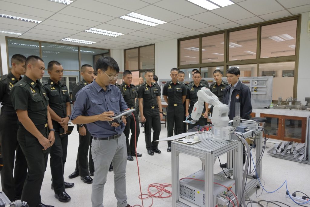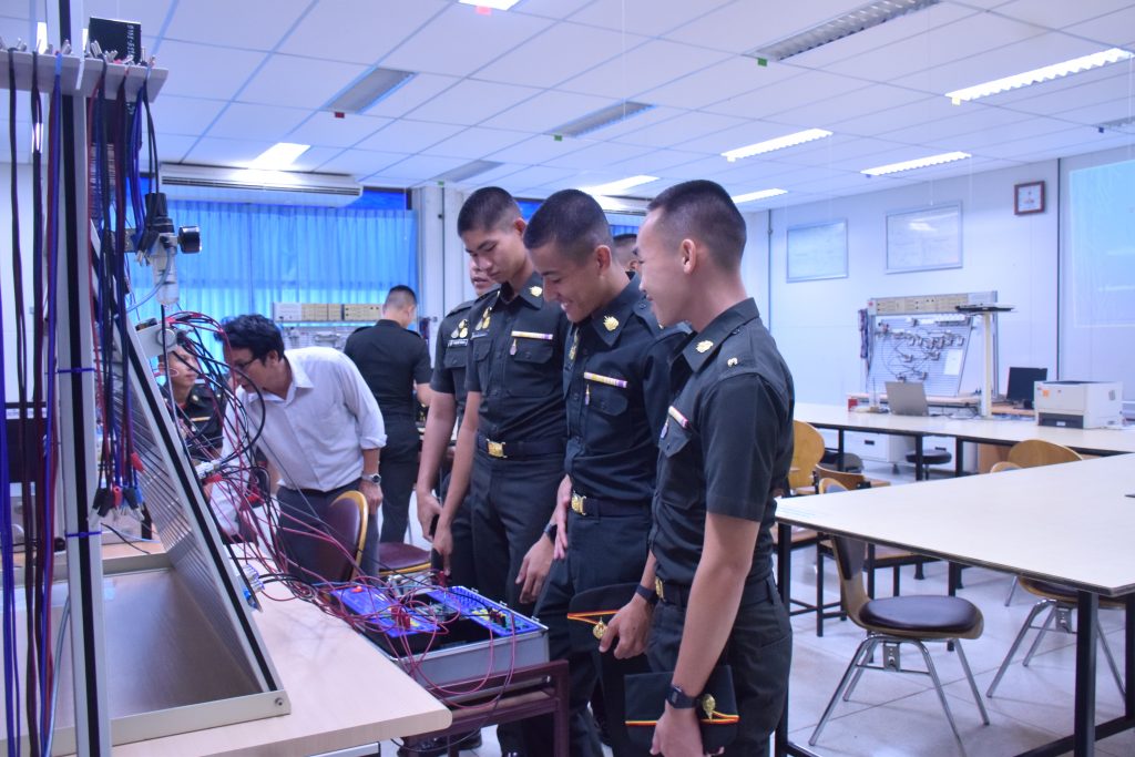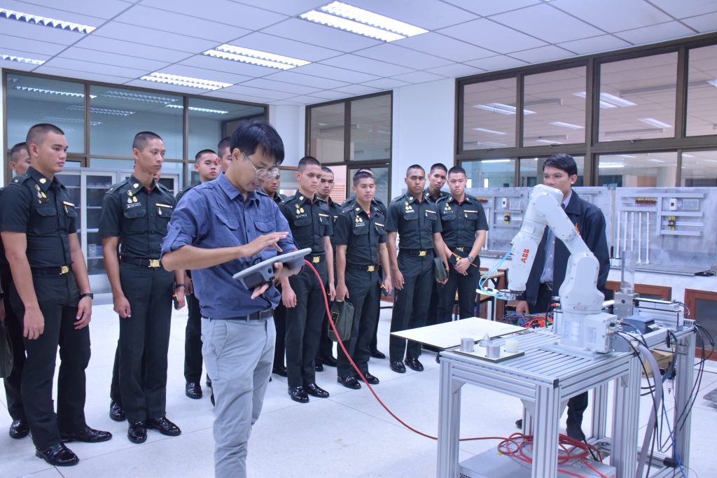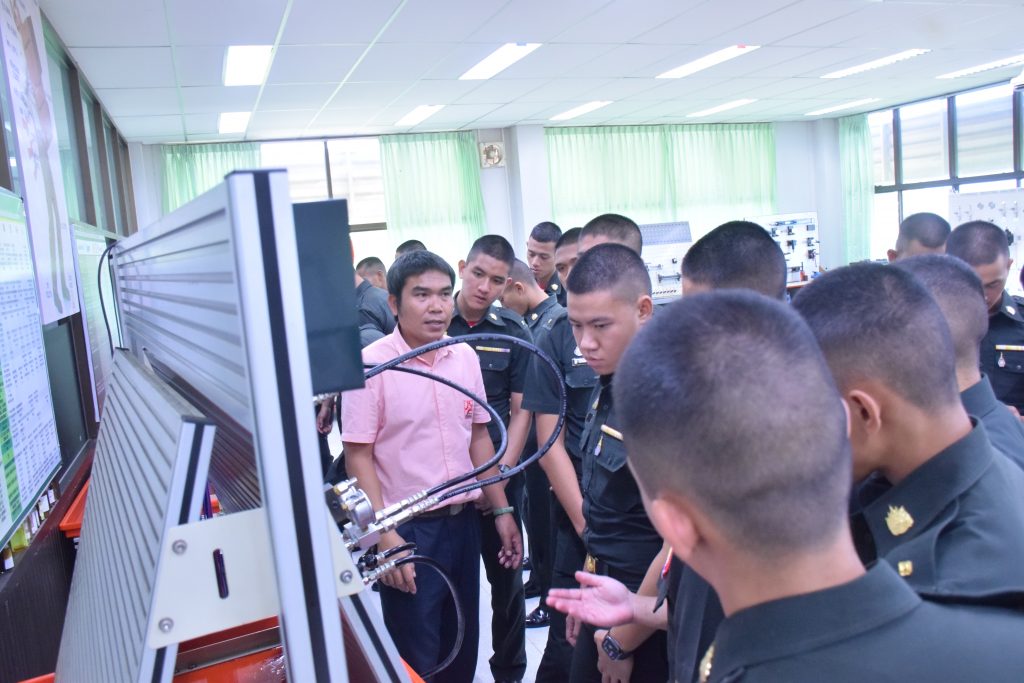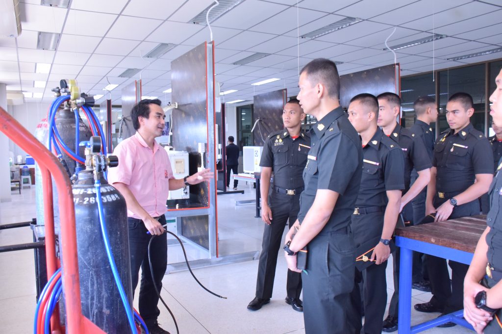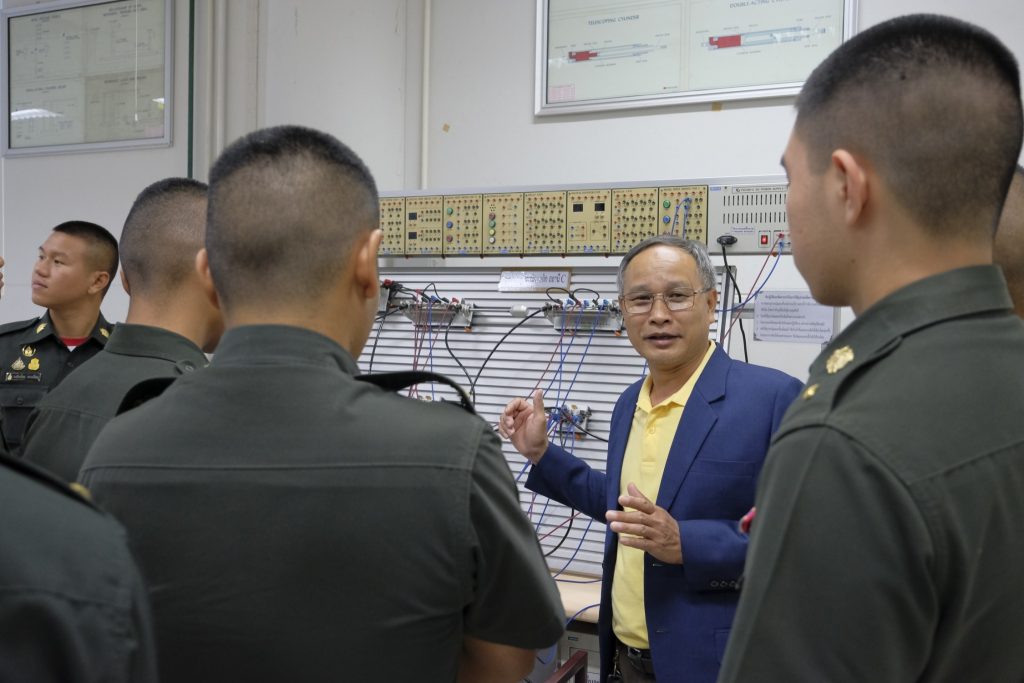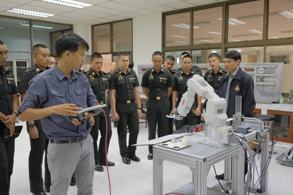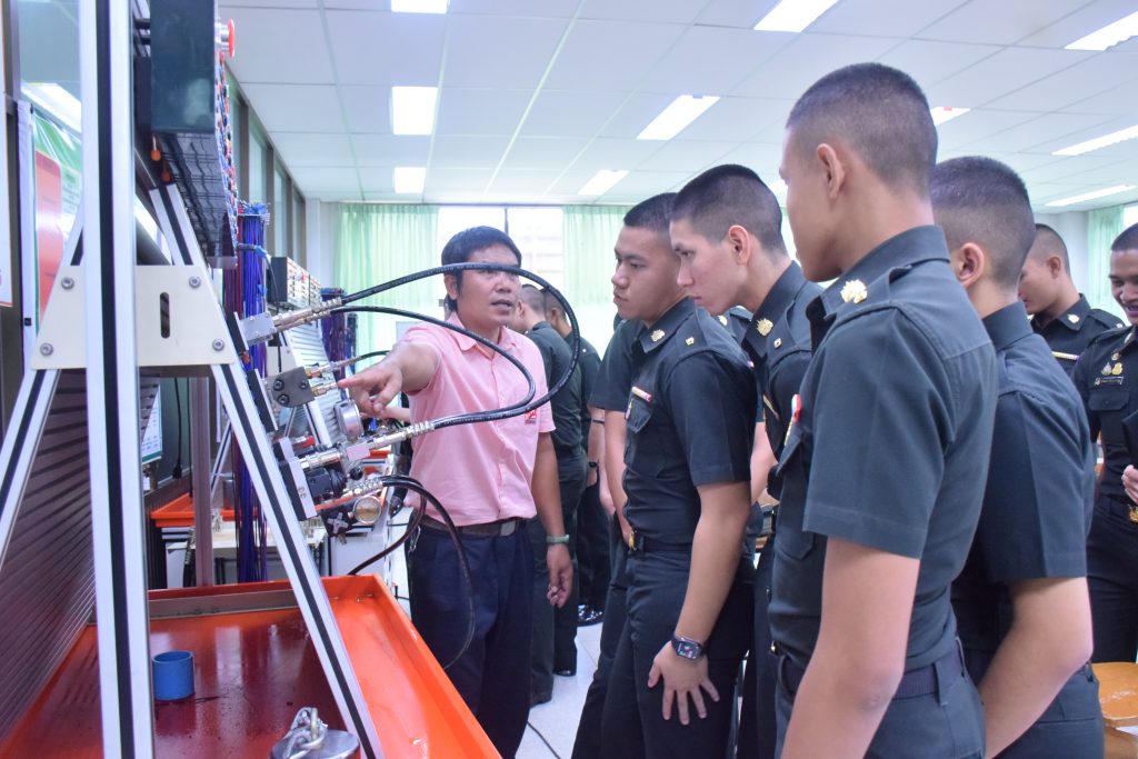 วันที่ 1 พฤศจิกายน 2566 คณะอุตสาหกรรมเเละเทคโนโลยี มทร.อีสาน วิทยาเขตสกลนคร นำโดย ผศ.น.สพ.ดร.ชเวง สารคล่อง รองอธิการบดีประจำวิทยาเขตสกลนคร ผศ.ดร.สุริยา แก้วอาษา คณบดีคณะอุตสาหกรรมเเละเทคโนโลยี พร้อมด้วยคณะผู้บริหาร คณาจารย์ และเจ้าหน้าที่ ร่วมต้อนรับคณะศึกษาดูงาน จากโรงเรียนนายร้อยพระจุลจอมเกล้า (รร.จปร.) ในโอกาสเข้าเยี่ยมชมและฟังบรรยายการจัดการเรียนการสอน ผลงานนวัตกรรม และหลักสูตรด้านวิศวกรรมเครื่องกล คณะอุตสาหกรรมเเละเทคโนโลยี เพื่อเพิ่มพูนความรู้ทางวิชาการและประสบการณ์อันจะเป็นประโยชน์ต่อการศึกษาของนักเรียนนายร้อยต่อไปในอนาคต โดยได้เข้าเยี่ยมชมนิทรรศการผลงานนวัตกรรมคณะอุตสาหกรรมและเทคโนโลยี ห้องปฏิบัติการระบบควบคุมอัตโนมัติและหุ่นยนต์ ห้องปฏิบัติการไฮดรอลิกส์ ห้องปฎิบัตการระบบอาณัติสัญญาณรถไฟ ห้องปฎิบัติการนิวแมติกส์ ศูนย์ทดสอบฝีมือแรงงาน สาขาเครื่องปรับอากาศภายในบ้านและการพาณิชย์ขนาดเล็ก ระดับ 1 และ โรงงานกลั่นน้ำมันหอมระเหยเชิงพาณิชย์