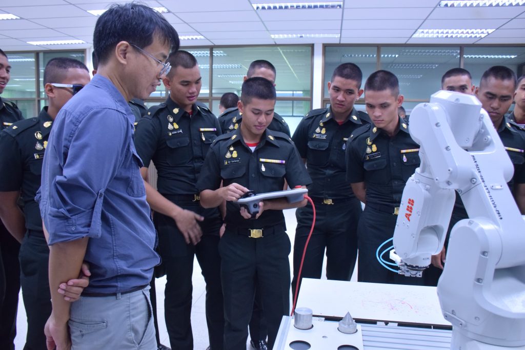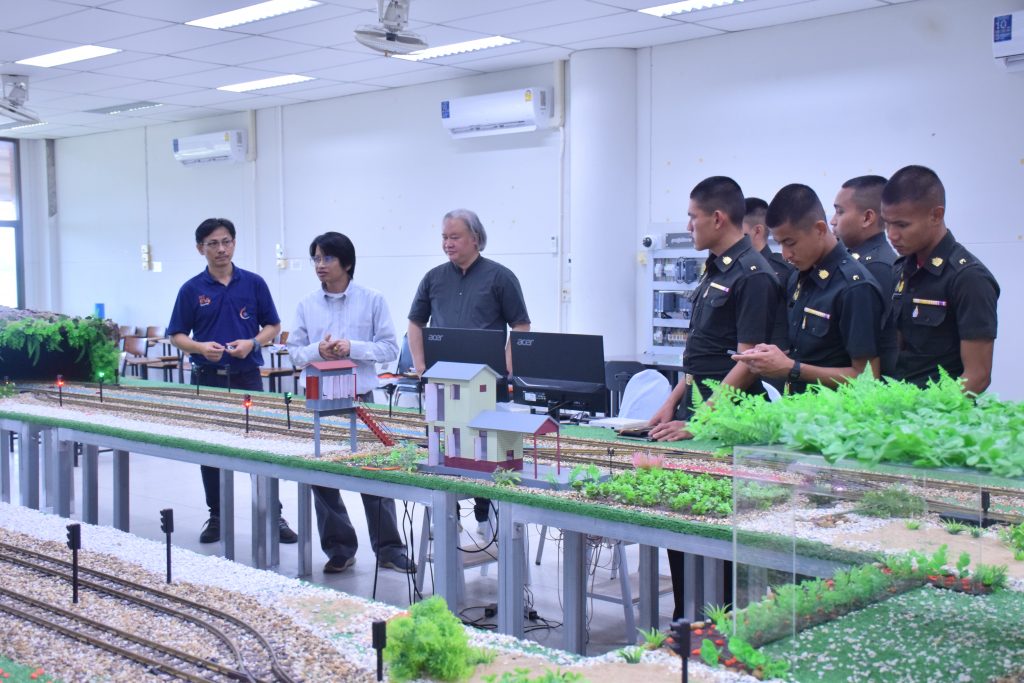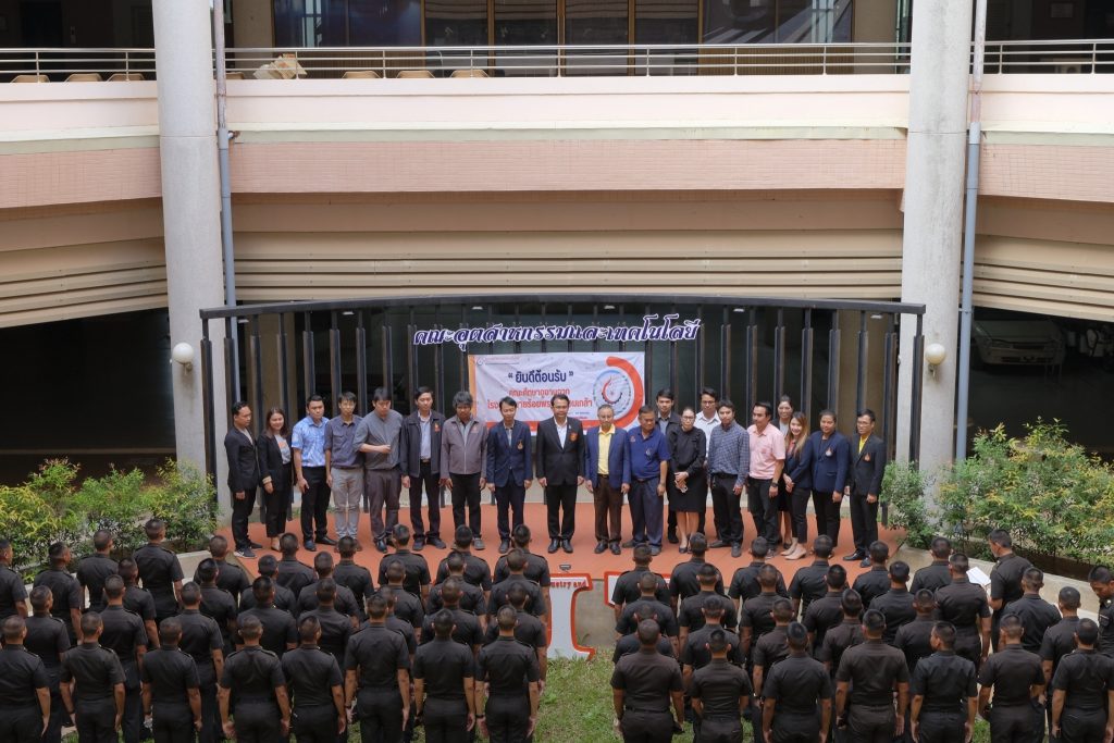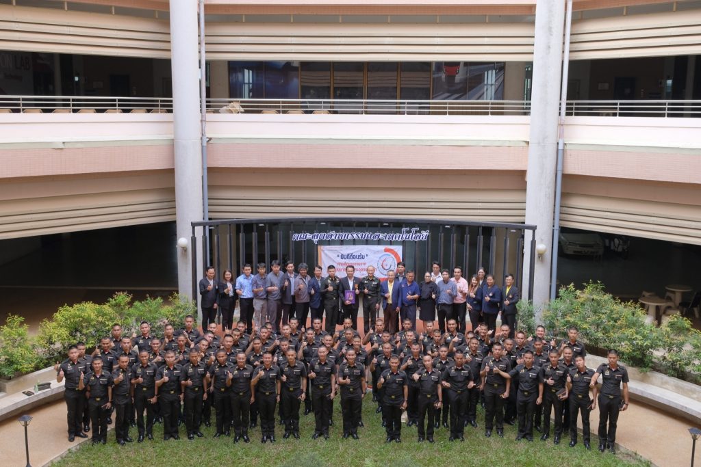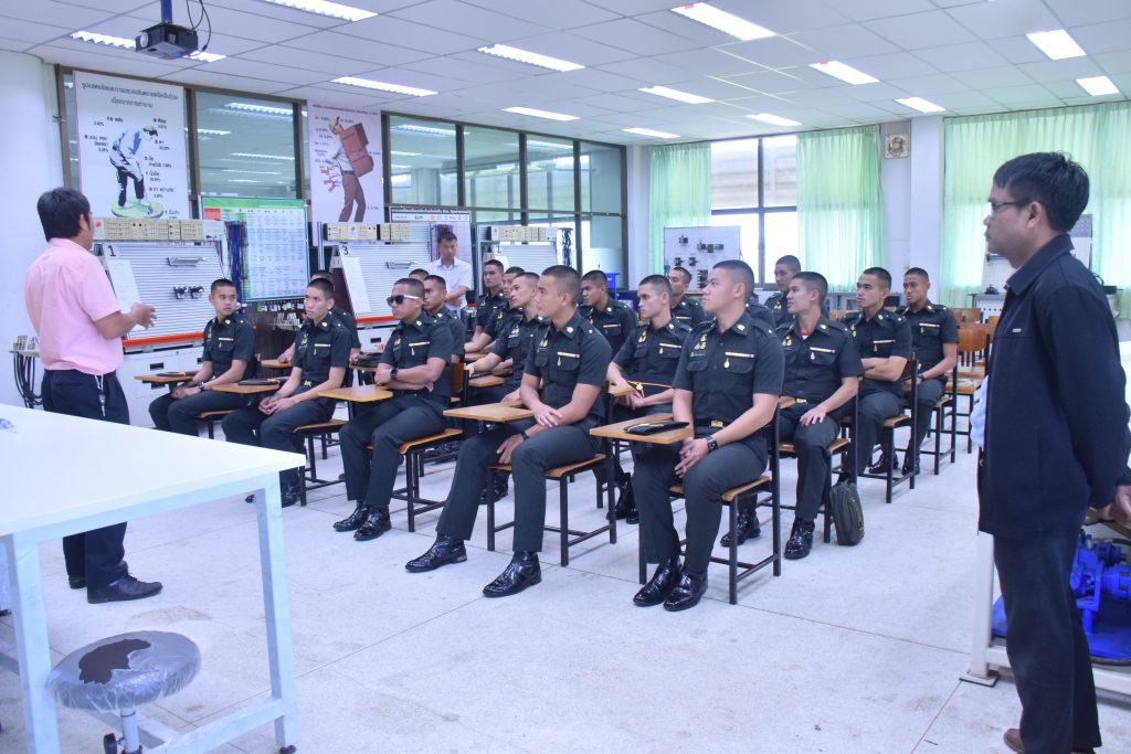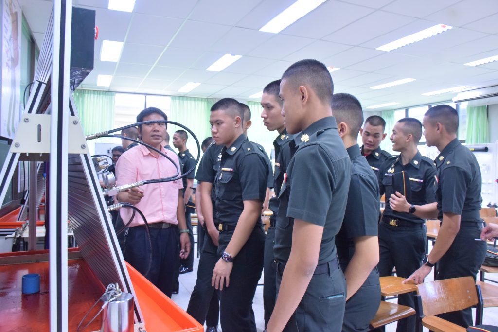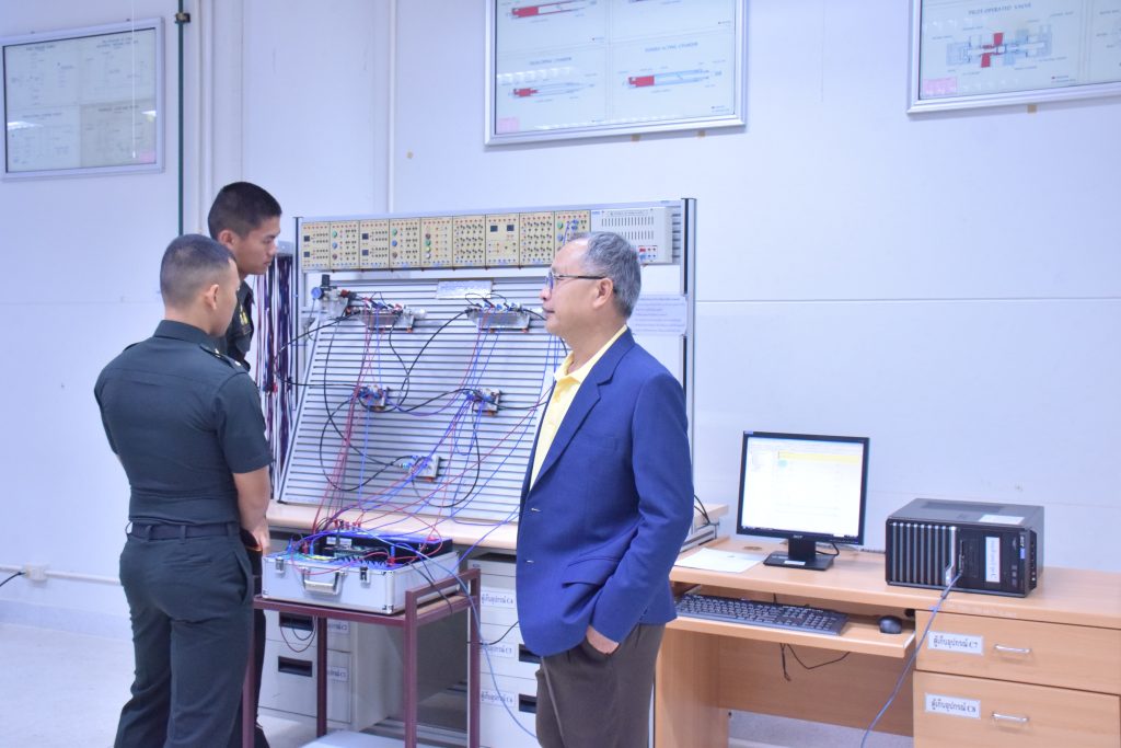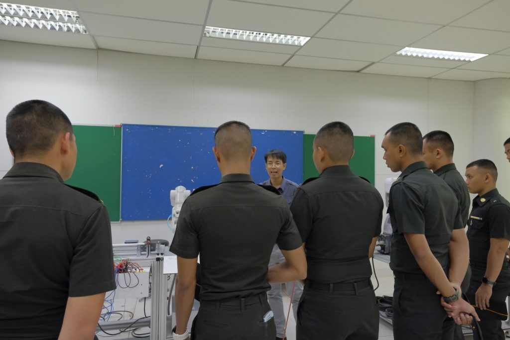 วันที่ 1 พฤศจิกายน 2566 คณะอุตสาหกรรมเเละเทคโนโลยี มทร.อีสาน วิทยาเขตสกลนคร นำโดย ผศ.น.สพ.ดร.ชเวง สารคล่อง รองอธิการบดีประจำวิทยาเขตสกลนคร ผศ.ดร.สุริยา แก้วอาษา คณบดีคณะอุตสาหกรรมเเละเทคโนโลยี พร้อมด้วยคณะผู้บริหาร คณาจารย์ และเจ้าหน้าที่ ร่วมต้อนรับคณะศึกษาดูงาน จากโรงเรียนนายร้อยพระจุลจอมเกล้า (รร.จปร.) ในโอกาสเข้าเยี่ยมชมและฟังบรรยายการจัดการเรียนการสอน ผลงานนวัตกรรม และหลักสูตรด้านวิศวกรรมเครื่องกล คณะอุตสาหกรรมเเละเทคโนโลยี เพื่อเพิ่มพูนความรู้ทางวิชาการและประสบการณ์อันจะเป็นประโยชน์ต่อการศึกษาของนักเรียนนายร้อยต่อไปในอนาคต โดยได้เข้าเยี่ยมชมนิทรรศการผลงานนวัตกรรมคณะอุตสาหกรรมและเทคโนโลยี ห้องปฏิบัติการระบบควบคุมอัตโนมัติและหุ่นยนต์ ห้องปฏิบัติการไฮดรอลิกส์ ห้องปฎิบัตการระบบอาณัติสัญญาณรถไฟ ห้องปฎิบัติการนิวแมติกส์ ศูนย์ทดสอบฝีมือแรงงาน สาขาเครื่องปรับอากาศภายในบ้านและการพาณิชย์ขนาดเล็ก ระดับ 1 และ โรงงานกลั่นน้ำมันหอมระเหยเชิงพาณิชย์