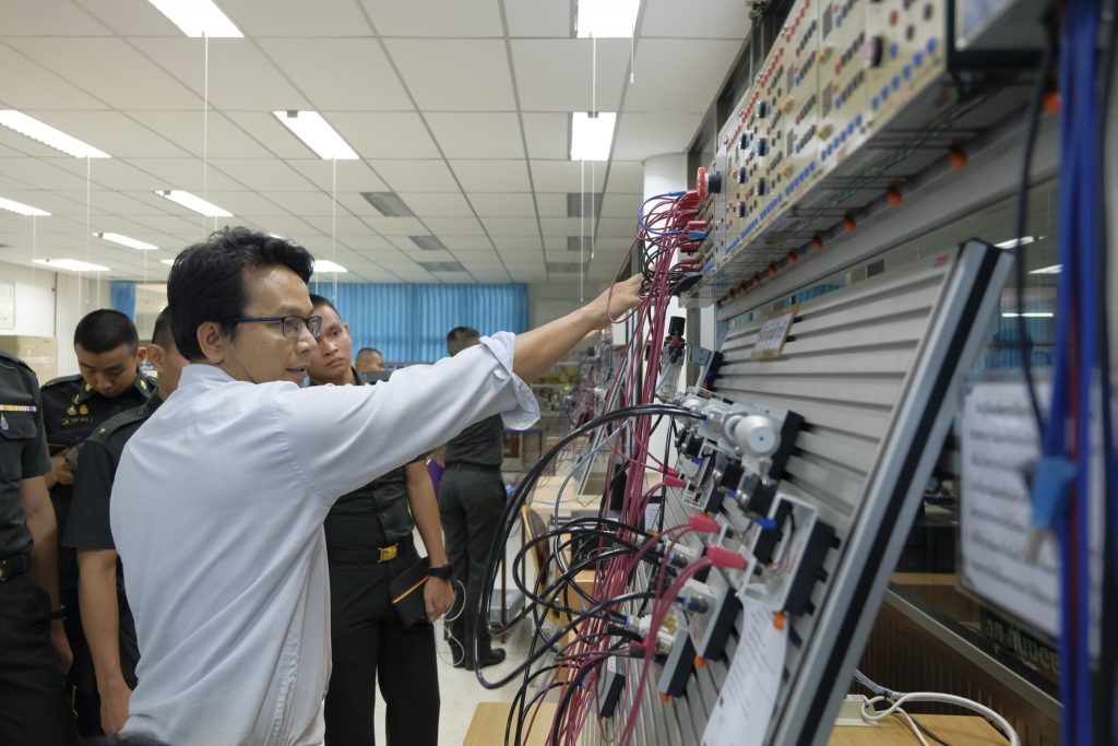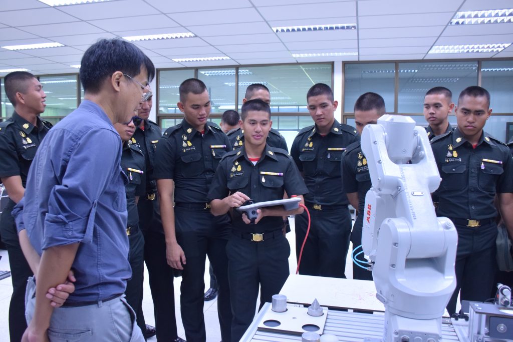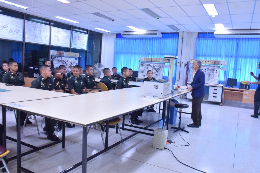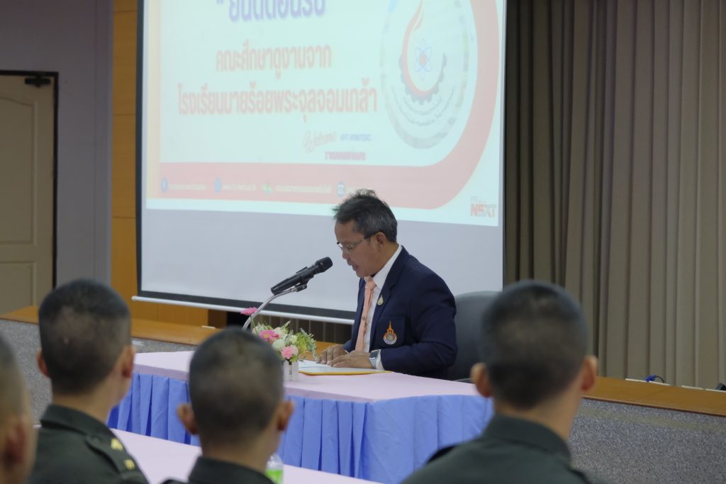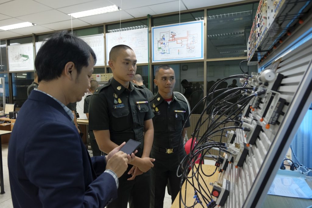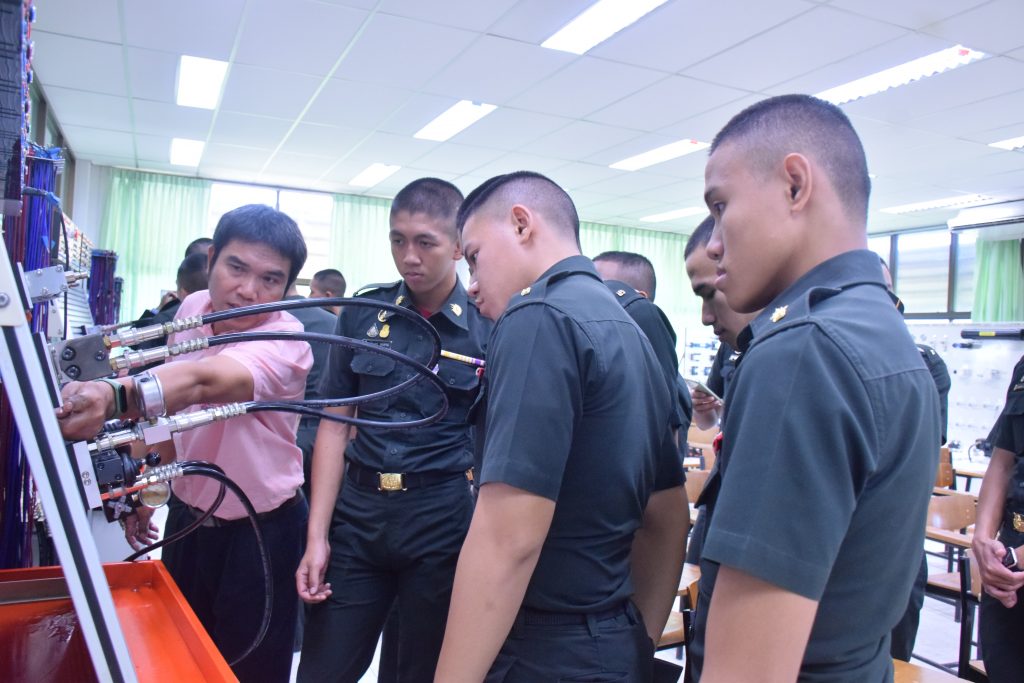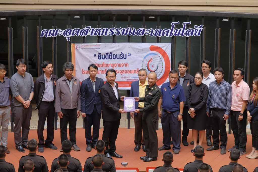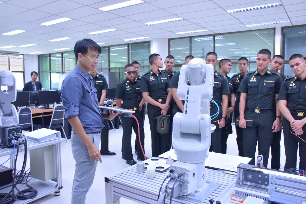 วันที่ 1 พฤศจิกายน 2566 คณะอุตสาหกรรมเเละเทคโนโลยี มทร.อีสาน วิทยาเขตสกลนคร นำโดย ผศ.น.สพ.ดร.ชเวง สารคล่อง รองอธิการบดีประจำวิทยาเขตสกลนคร ผศ.ดร.สุริยา แก้วอาษา คณบดีคณะอุตสาหกรรมเเละเทคโนโลยี พร้อมด้วยคณะผู้บริหาร คณาจารย์ และเจ้าหน้าที่ ร่วมต้อนรับคณะศึกษาดูงาน จากโรงเรียนนายร้อยพระจุลจอมเกล้า (รร.จปร.) ในโอกาสเข้าเยี่ยมชมและฟังบรรยายการจัดการเรียนการสอน ผลงานนวัตกรรม และหลักสูตรด้านวิศวกรรมเครื่องกล คณะอุตสาหกรรมเเละเทคโนโลยี เพื่อเพิ่มพูนความรู้ทางวิชาการและประสบการณ์อันจะเป็นประโยชน์ต่อการศึกษาของนักเรียนนายร้อยต่อไปในอนาคต โดยได้เข้าเยี่ยมชมนิทรรศการผลงานนวัตกรรมคณะอุตสาหกรรมและเทคโนโลยี ห้องปฏิบัติการระบบควบคุมอัตโนมัติและหุ่นยนต์ ห้องปฏิบัติการไฮดรอลิกส์ ห้องปฎิบัตการระบบอาณัติสัญญาณรถไฟ ห้องปฎิบัติการนิวแมติกส์ ศูนย์ทดสอบฝีมือแรงงาน สาขาเครื่องปรับอากาศภายในบ้านและการพาณิชย์ขนาดเล็ก ระดับ 1 และ โรงงานกลั่นน้ำมันหอมระเหยเชิงพาณิชย์