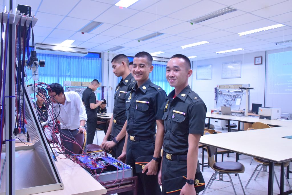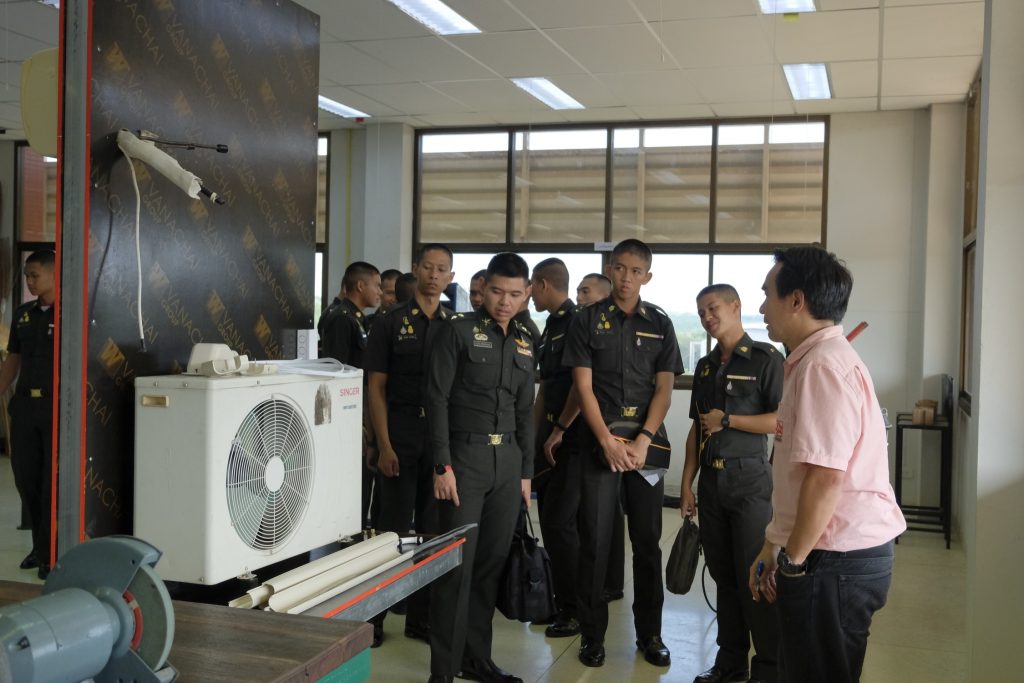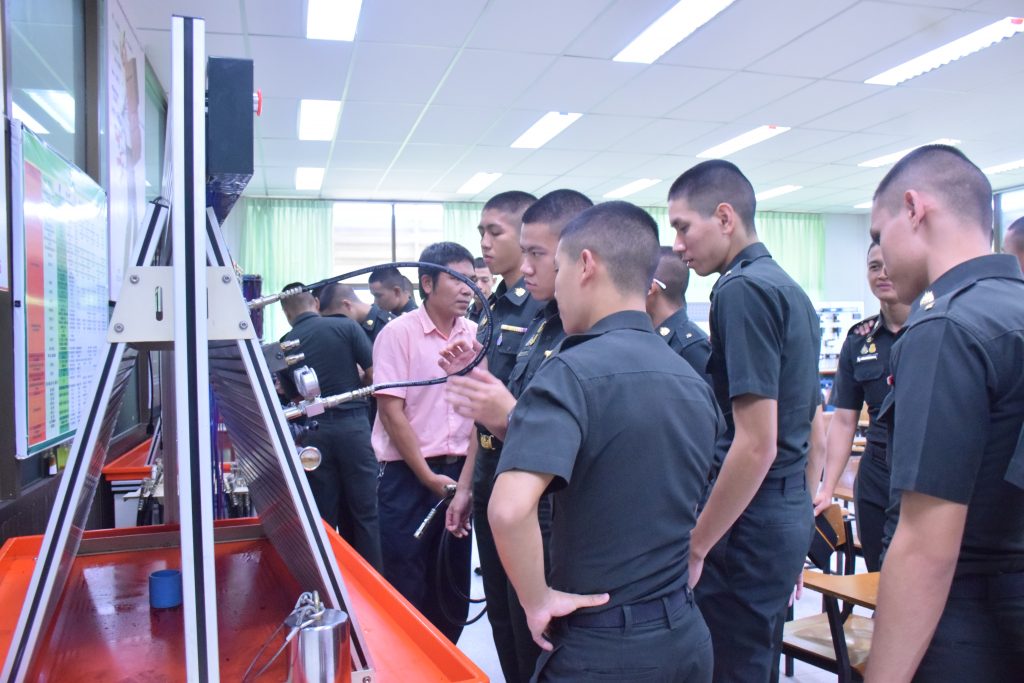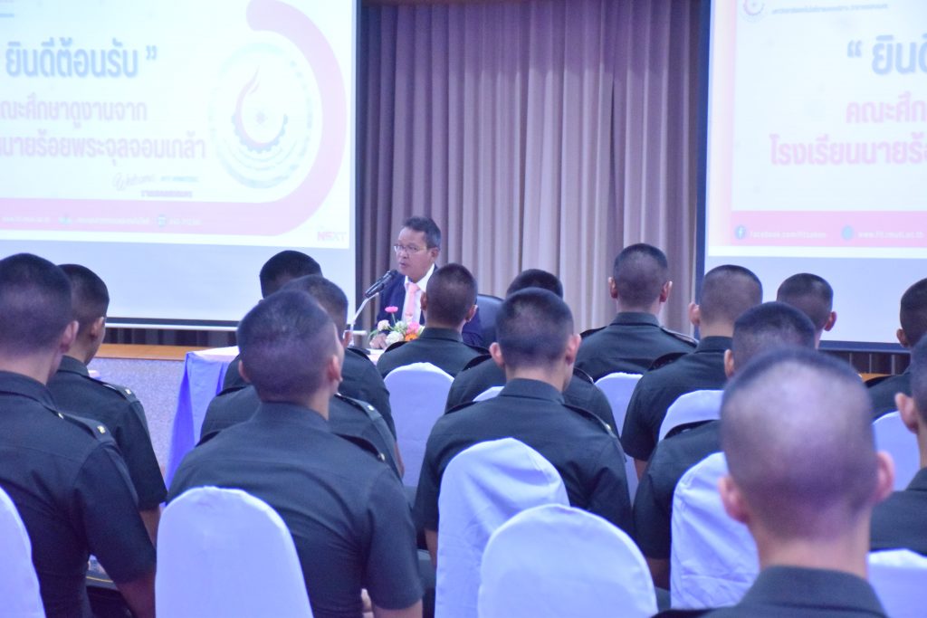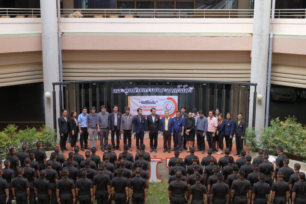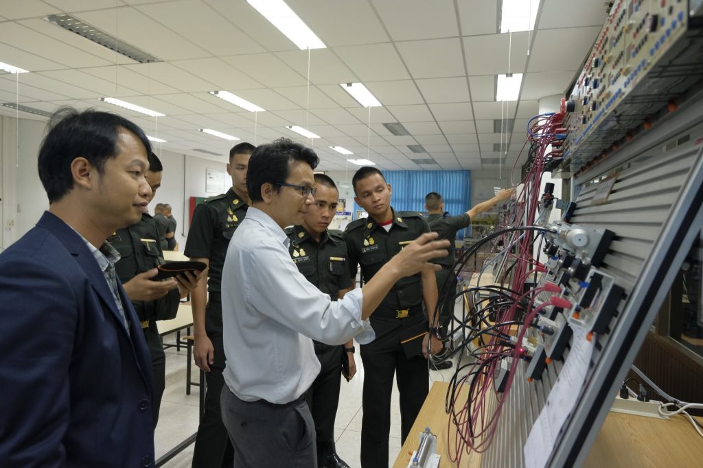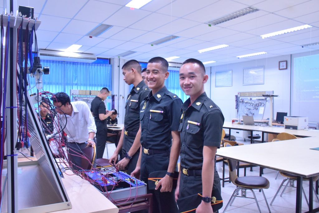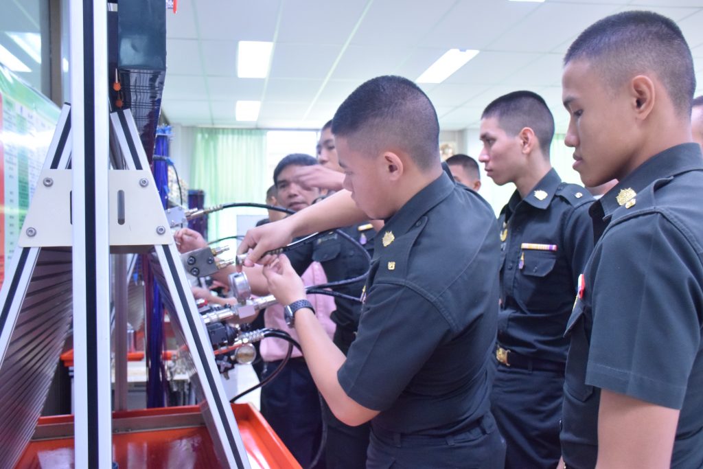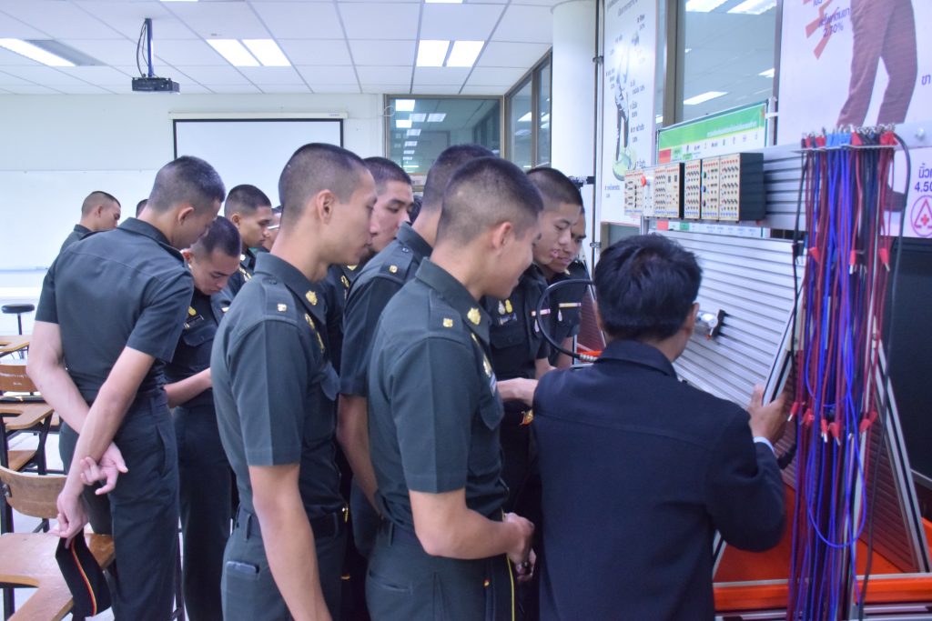 วันที่ 1 พฤศจิกายน 2566 คณะอุตสาหกรรมเเละเทคโนโลยี มทร.อีสาน วิทยาเขตสกลนคร นำโดย ผศ.น.สพ.ดร.ชเวง สารคล่อง รองอธิการบดีประจำวิทยาเขตสกลนคร ผศ.ดร.สุริยา แก้วอาษา คณบดีคณะอุตสาหกรรมเเละเทคโนโลยี พร้อมด้วยคณะผู้บริหาร คณาจารย์ และเจ้าหน้าที่ ร่วมต้อนรับคณะศึกษาดูงาน จากโรงเรียนนายร้อยพระจุลจอมเกล้า (รร.จปร.) ในโอกาสเข้าเยี่ยมชมและฟังบรรยายการจัดการเรียนการสอน ผลงานนวัตกรรม และหลักสูตรด้านวิศวกรรมเครื่องกล คณะอุตสาหกรรมเเละเทคโนโลยี เพื่อเพิ่มพูนความรู้ทางวิชาการและประสบการณ์อันจะเป็นประโยชน์ต่อการศึกษาของนักเรียนนายร้อยต่อไปในอนาคต โดยได้เข้าเยี่ยมชมนิทรรศการผลงานนวัตกรรมคณะอุตสาหกรรมและเทคโนโลยี ห้องปฏิบัติการระบบควบคุมอัตโนมัติและหุ่นยนต์ ห้องปฏิบัติการไฮดรอลิกส์ ห้องปฎิบัตการระบบอาณัติสัญญาณรถไฟ ห้องปฎิบัติการนิวแมติกส์ ศูนย์ทดสอบฝีมือแรงงาน สาขาเครื่องปรับอากาศภายในบ้านและการพาณิชย์ขนาดเล็ก ระดับ 1 และ โรงงานกลั่นน้ำมันหอมระเหยเชิงพาณิชย์