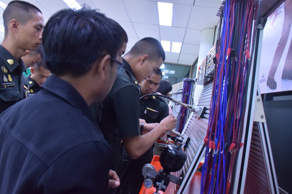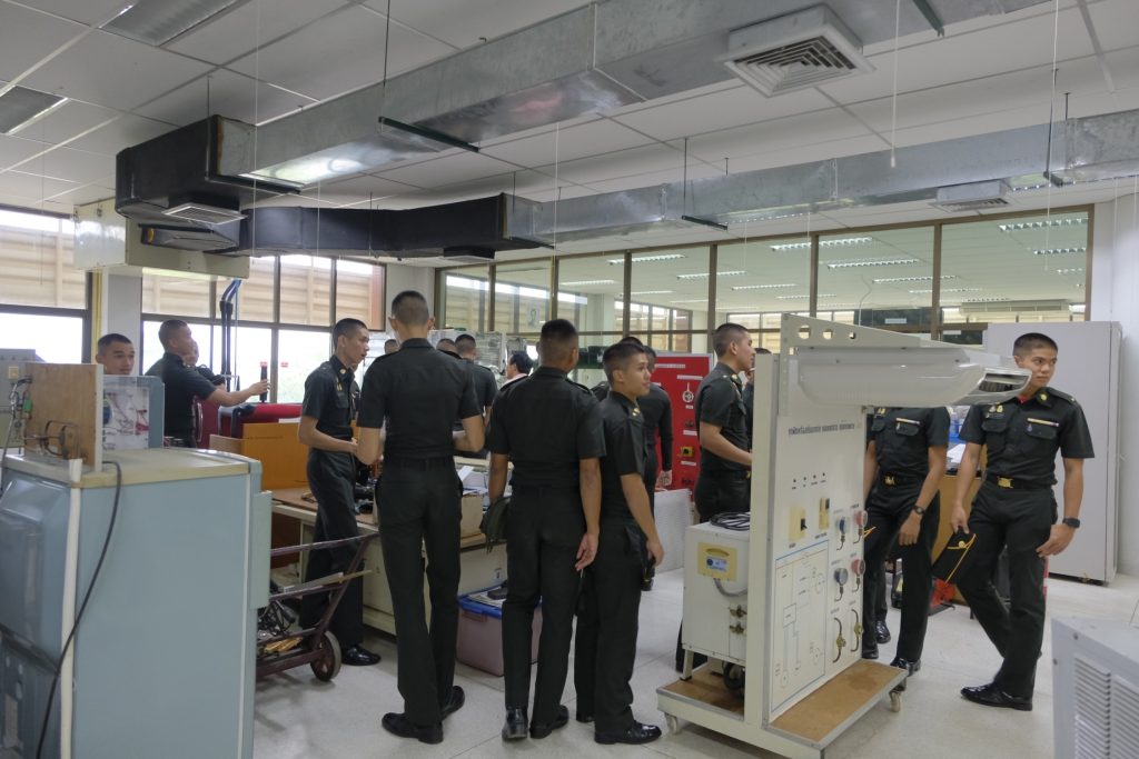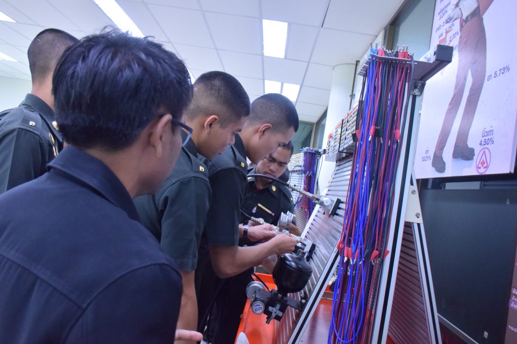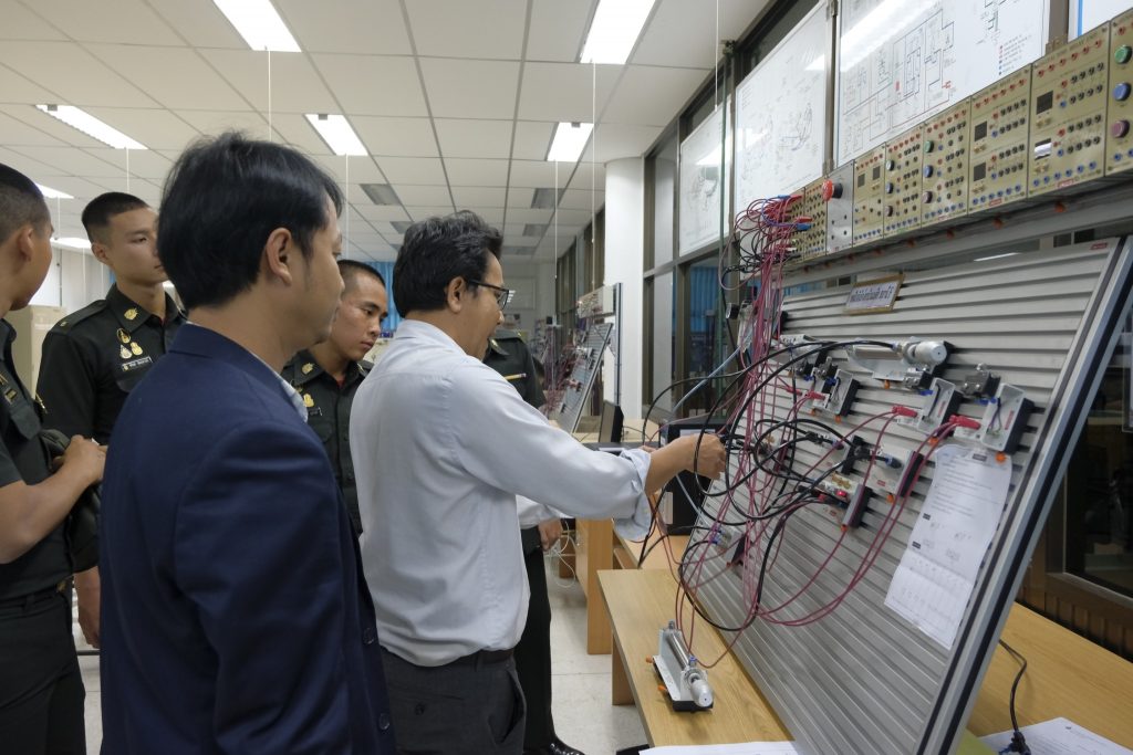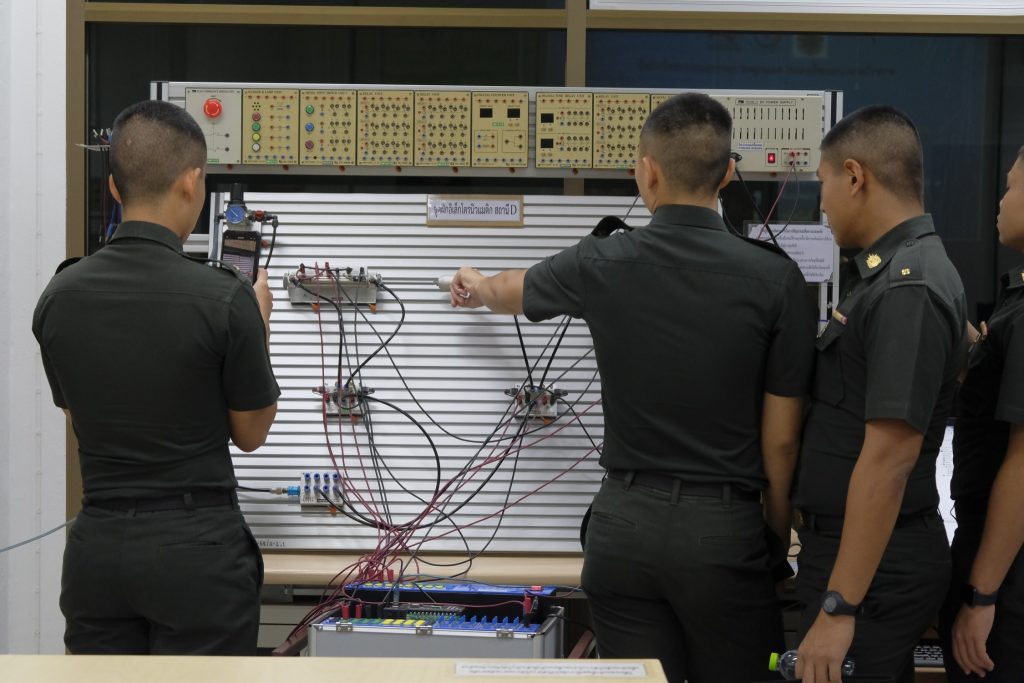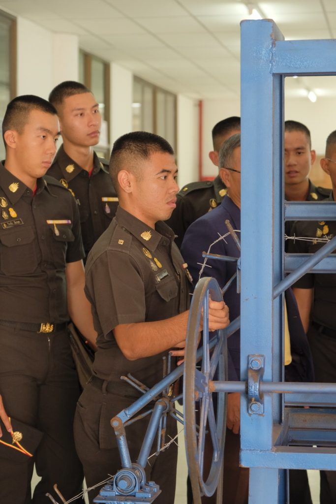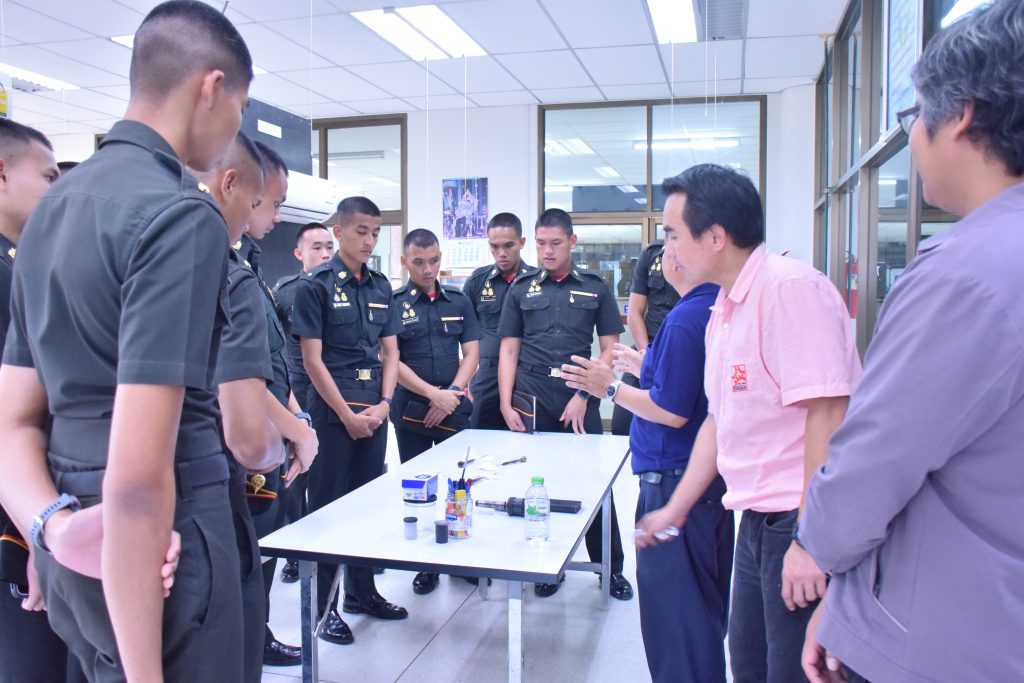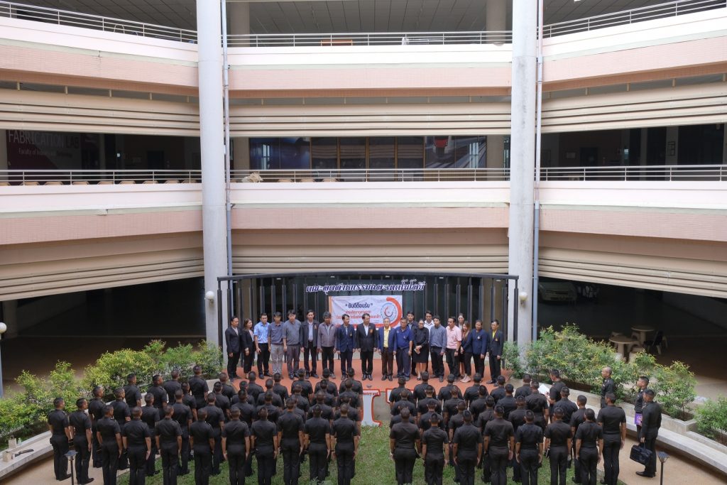 วันที่ 1 พฤศจิกายน 2566 คณะอุตสาหกรรมเเละเทคโนโลยี มทร.อีสาน วิทยาเขตสกลนคร นำโดย ผศ.น.สพ.ดร.ชเวง สารคล่อง รองอธิการบดีประจำวิทยาเขตสกลนคร ผศ.ดร.สุริยา แก้วอาษา คณบดีคณะอุตสาหกรรมเเละเทคโนโลยี พร้อมด้วยคณะผู้บริหาร คณาจารย์ และเจ้าหน้าที่ ร่วมต้อนรับคณะศึกษาดูงาน จากโรงเรียนนายร้อยพระจุลจอมเกล้า (รร.จปร.) ในโอกาสเข้าเยี่ยมชมและฟังบรรยายการจัดการเรียนการสอน ผลงานนวัตกรรม และหลักสูตรด้านวิศวกรรมเครื่องกล คณะอุตสาหกรรมเเละเทคโนโลยี เพื่อเพิ่มพูนความรู้ทางวิชาการและประสบการณ์อันจะเป็นประโยชน์ต่อการศึกษาของนักเรียนนายร้อยต่อไปในอนาคต โดยได้เข้าเยี่ยมชมนิทรรศการผลงานนวัตกรรมคณะอุตสาหกรรมและเทคโนโลยี ห้องปฏิบัติการระบบควบคุมอัตโนมัติและหุ่นยนต์ ห้องปฏิบัติการไฮดรอลิกส์ ห้องปฎิบัตการระบบอาณัติสัญญาณรถไฟ ห้องปฎิบัติการนิวแมติกส์ ศูนย์ทดสอบฝีมือแรงงาน สาขาเครื่องปรับอากาศภายในบ้านและการพาณิชย์ขนาดเล็ก ระดับ 1 และ โรงงานกลั่นน้ำมันหอมระเหยเชิงพาณิชย์