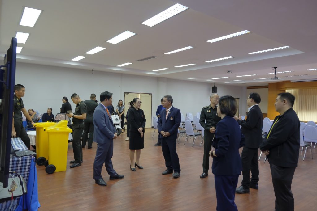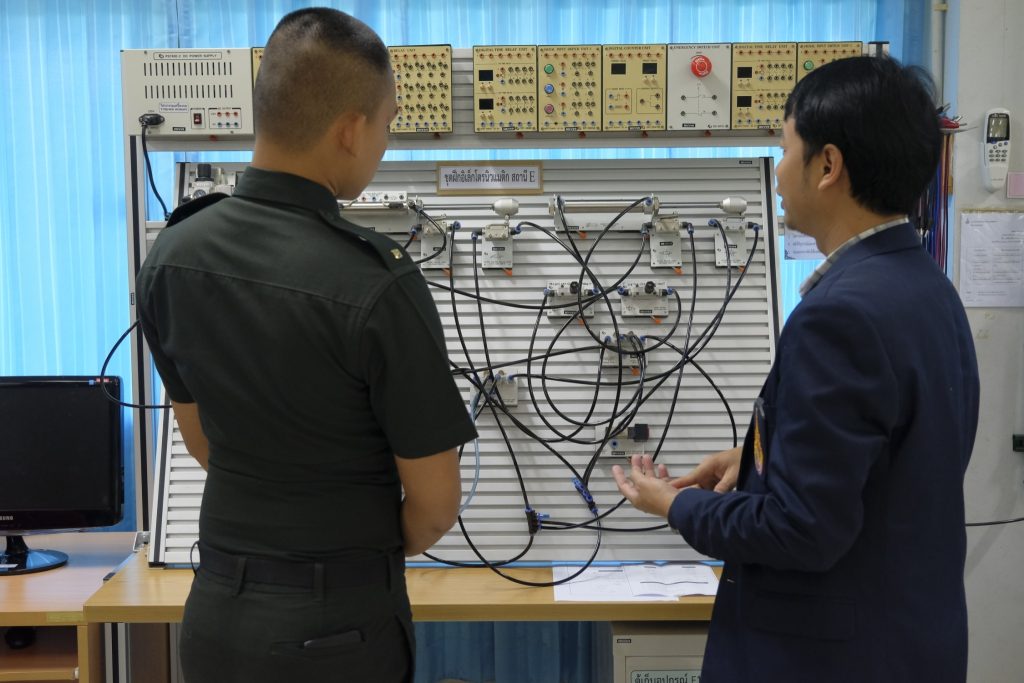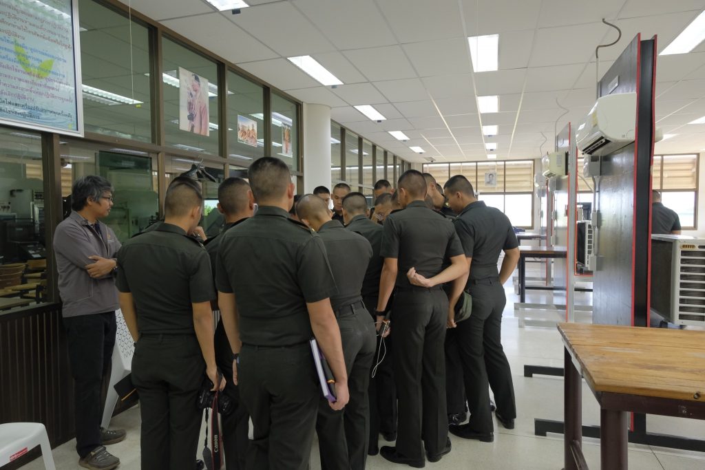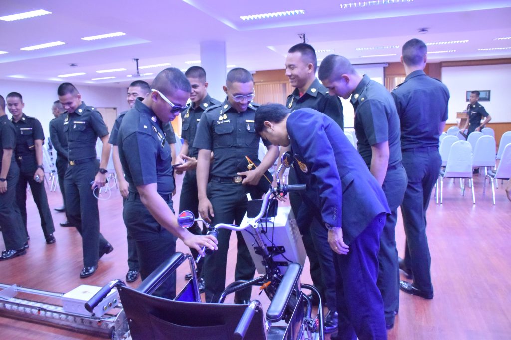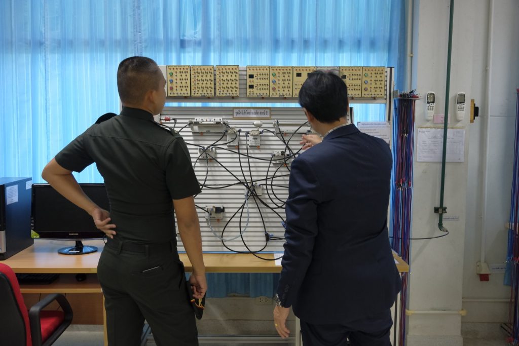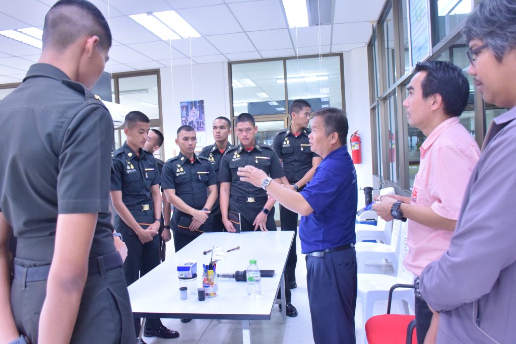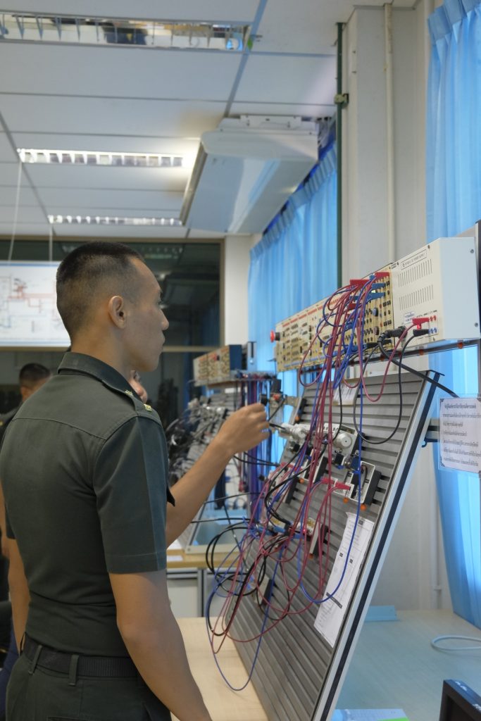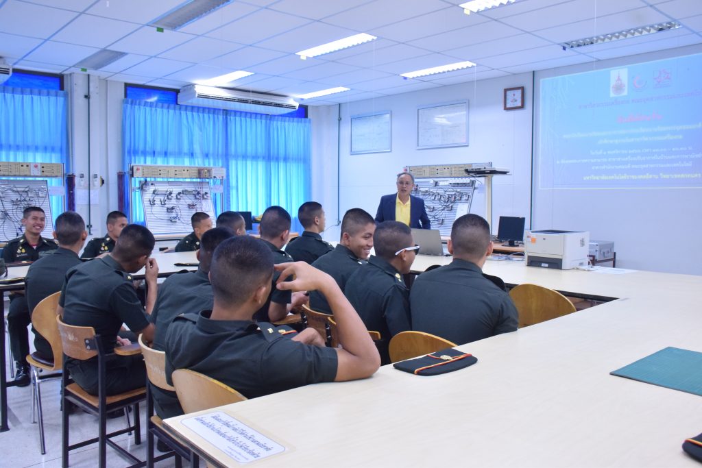 วันที่ 1 พฤศจิกายน 2566 คณะอุตสาหกรรมเเละเทคโนโลยี มทร.อีสาน วิทยาเขตสกลนคร นำโดย ผศ.น.สพ.ดร.ชเวง สารคล่อง รองอธิการบดีประจำวิทยาเขตสกลนคร ผศ.ดร.สุริยา แก้วอาษา คณบดีคณะอุตสาหกรรมเเละเทคโนโลยี พร้อมด้วยคณะผู้บริหาร คณาจารย์ และเจ้าหน้าที่ ร่วมต้อนรับคณะศึกษาดูงาน จากโรงเรียนนายร้อยพระจุลจอมเกล้า (รร.จปร.) ในโอกาสเข้าเยี่ยมชมและฟังบรรยายการจัดการเรียนการสอน ผลงานนวัตกรรม และหลักสูตรด้านวิศวกรรมเครื่องกล คณะอุตสาหกรรมเเละเทคโนโลยี เพื่อเพิ่มพูนความรู้ทางวิชาการและประสบการณ์อันจะเป็นประโยชน์ต่อการศึกษาของนักเรียนนายร้อยต่อไปในอนาคต โดยได้เข้าเยี่ยมชมนิทรรศการผลงานนวัตกรรมคณะอุตสาหกรรมและเทคโนโลยี ห้องปฏิบัติการระบบควบคุมอัตโนมัติและหุ่นยนต์ ห้องปฏิบัติการไฮดรอลิกส์ ห้องปฎิบัตการระบบอาณัติสัญญาณรถไฟ ห้องปฎิบัติการนิวแมติกส์ ศูนย์ทดสอบฝีมือแรงงาน สาขาเครื่องปรับอากาศภายในบ้านและการพาณิชย์ขนาดเล็ก ระดับ 1 และ โรงงานกลั่นน้ำมันหอมระเหยเชิงพาณิชย์