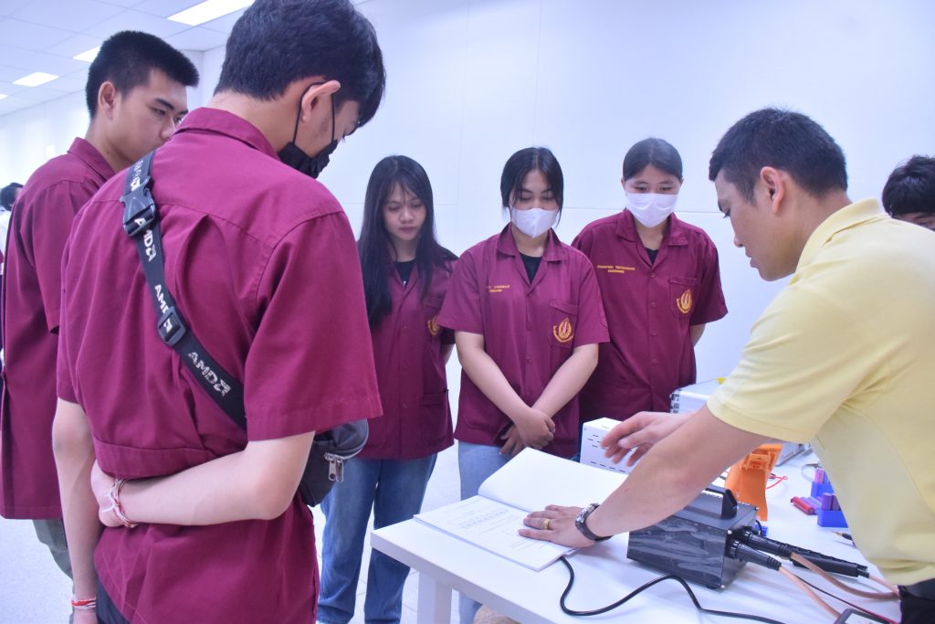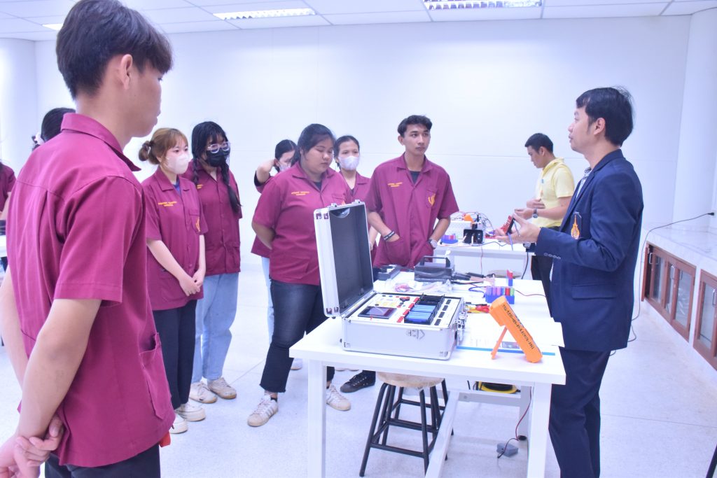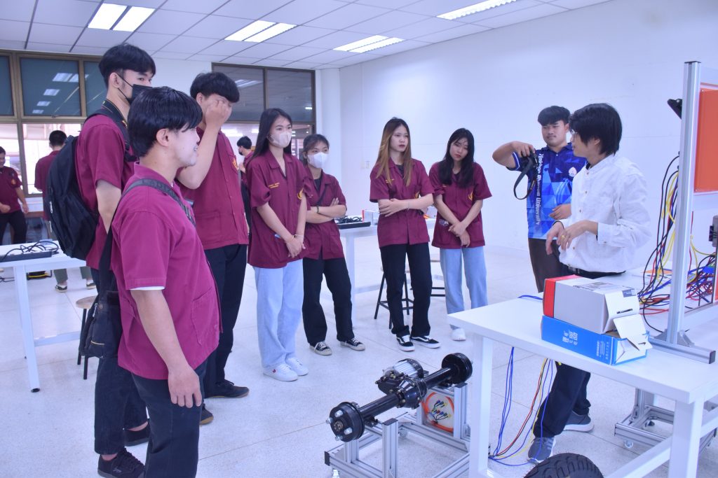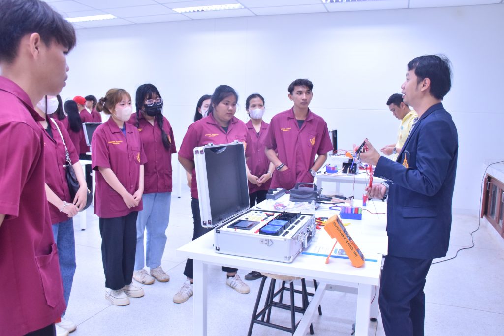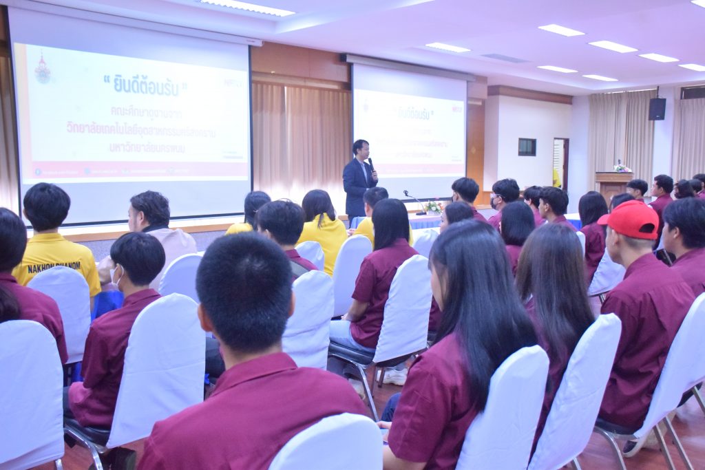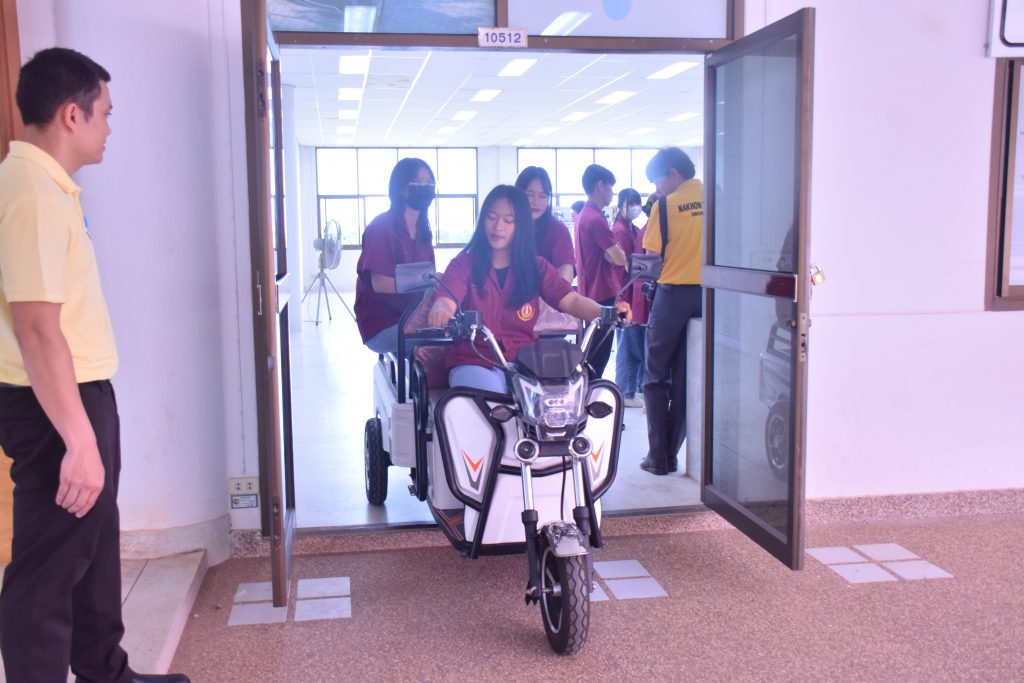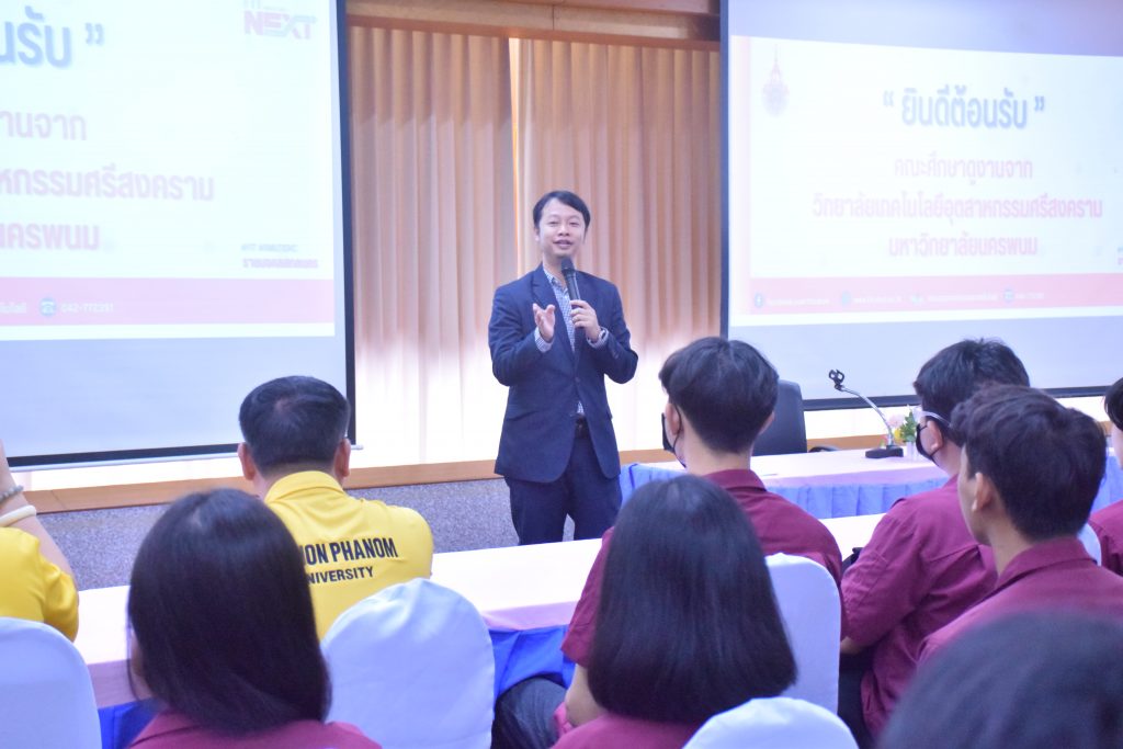 วันที่ 6 พฤศจิกายน 2566 คณะอุตสาหกรรมเเละเทคโนโลยี มทร.อีสาน วิทยาเขตสกลนคร นำโดย ผศ.ดร.สัณหวัจน์ ทองแดง รองคณบดีฝ่ายวิชาการและวิจัย พร้อมด้วยคณะผู้บริหาร คณาจารย์ และเจ้าหน้าที่ ร่วมต้อนรับคณะศึกษาดูงาน จากวิทยาลัยเทคโนโลยีอุตสาหกรรม ศรีสงคราม มหาวิทยาลัยนครพนม ในโอกาสเข้าเยี่ยมชมและฟังบรรยายการจัดการเรียนการสอน นิทรรศผลงานนวัตกรรม ซึ่งประกอบด้วย นวัตกรรมการพัฒนาระบบตรวจจับหมวกนิรภัยในพื้นที่ควบคุมด้วยเทคโนโลยี AIoT นวัตกรรม Smart Trash Bin for Smart City : STB4SC นวัตกรรมด้านยานยนต์ไฟฟ้า EV และนวัตกรรมด้านไฟฟ้าระบบราง โดยได้รับเกียรติจาก ผศ.ดร.สัณหวัจน์ ทองแดง ว่าที่ร้อยตรีกฤษฎา บุญมีวิเศษ ผศ.ดร.จีระพงศ์ ศรีวิชัย ผศ.คมกฤษณ์ ศรีสุวรรณ์ อาจารย์เมธา ทัศคร คุณธานีรัตน์ ร่มเกษ คุณเยาวภา ราชคำ และ คุณอภิชาต ราชคำ เป็นวิทยากร