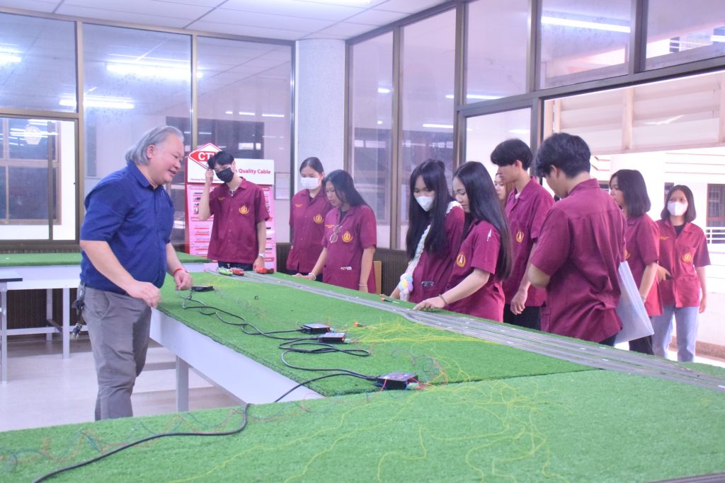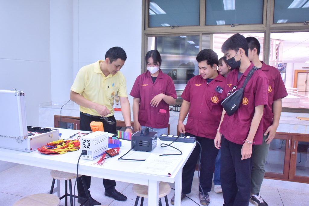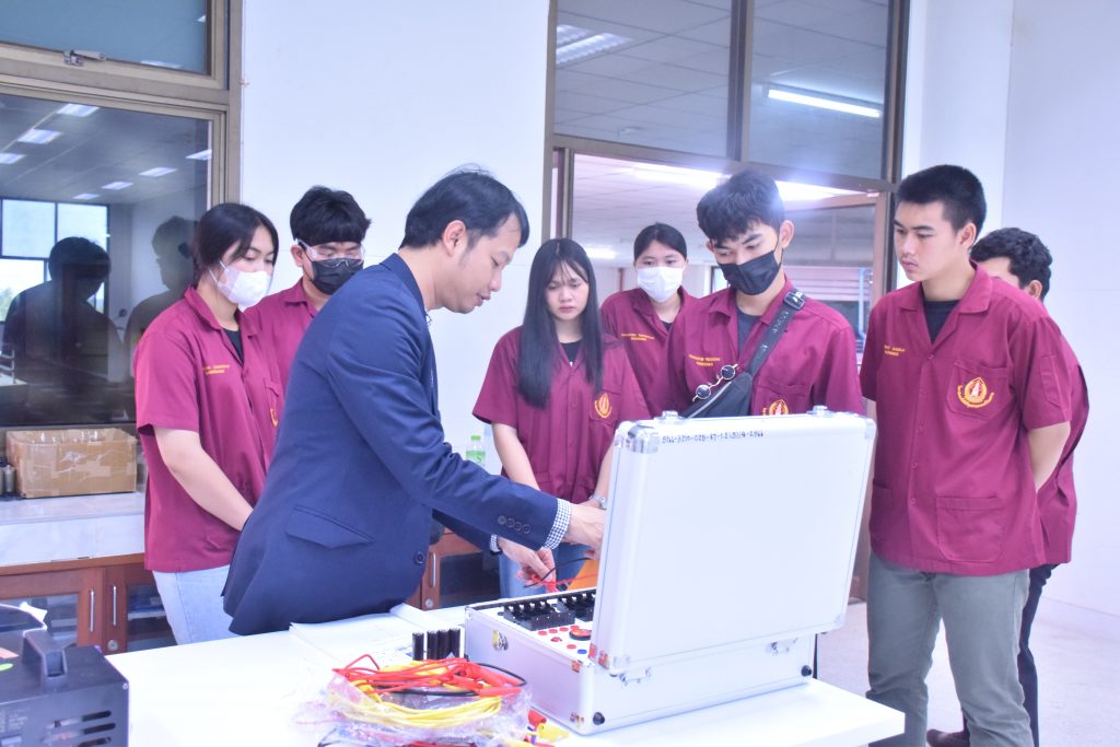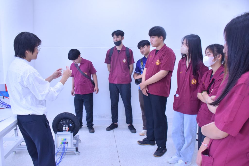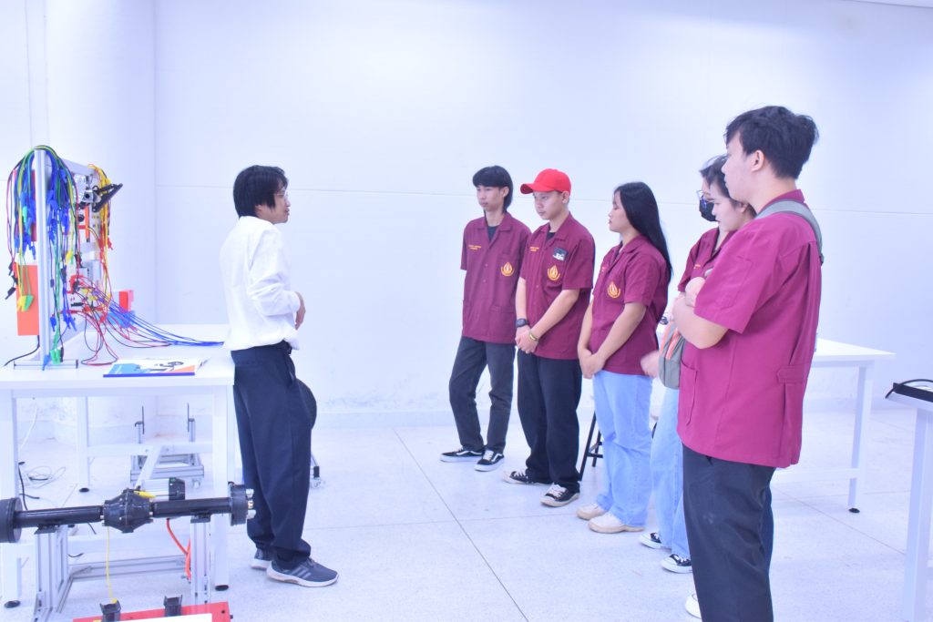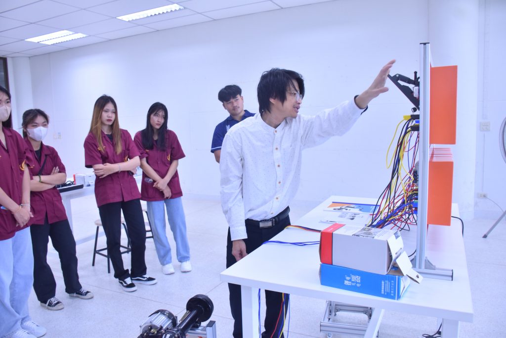 วันที่ 6 พฤศจิกายน 2566 คณะอุตสาหกรรมเเละเทคโนโลยี มทร.อีสาน วิทยาเขตสกลนคร นำโดย ผศ.ดร.สัณหวัจน์ ทองแดง รองคณบดีฝ่ายวิชาการและวิจัย พร้อมด้วยคณะผู้บริหาร คณาจารย์ และเจ้าหน้าที่ ร่วมต้อนรับคณะศึกษาดูงาน จากวิทยาลัยเทคโนโลยีอุตสาหกรรม ศรีสงคราม มหาวิทยาลัยนครพนม ในโอกาสเข้าเยี่ยมชมและฟังบรรยายการจัดการเรียนการสอน นิทรรศผลงานนวัตกรรม ซึ่งประกอบด้วย นวัตกรรมการพัฒนาระบบตรวจจับหมวกนิรภัยในพื้นที่ควบคุมด้วยเทคโนโลยี AIoT นวัตกรรม Smart Trash Bin for Smart City : STB4SC นวัตกรรมด้านยานยนต์ไฟฟ้า EV และนวัตกรรมด้านไฟฟ้าระบบราง โดยได้รับเกียรติจาก ผศ.ดร.สัณหวัจน์ ทองแดง ว่าที่ร้อยตรีกฤษฎา บุญมีวิเศษ ผศ.ดร.จีระพงศ์ ศรีวิชัย ผศ.คมกฤษณ์ ศรีสุวรรณ์ อาจารย์เมธา ทัศคร คุณธานีรัตน์ ร่มเกษ คุณเยาวภา ราชคำ และ คุณอภิชาต ราชคำ เป็นวิทยากร
