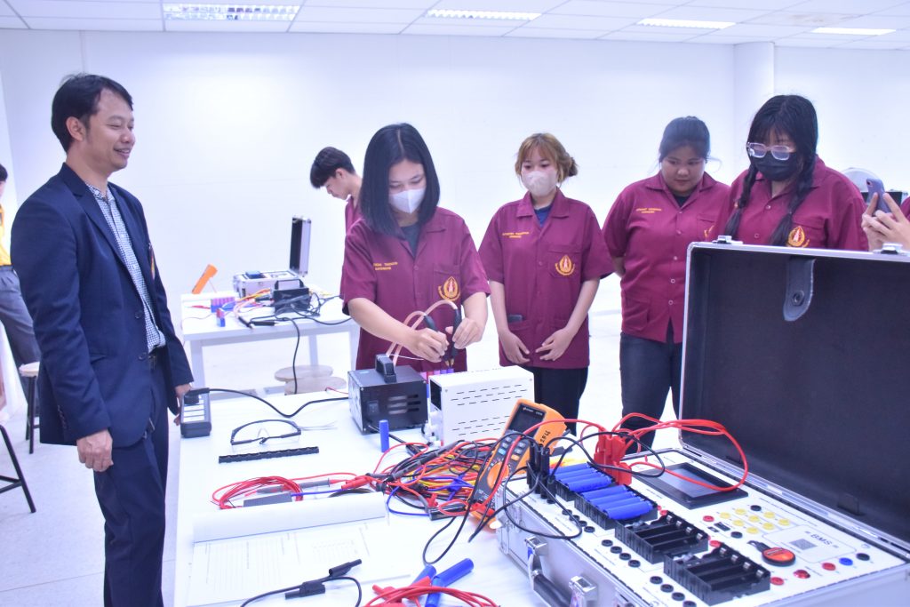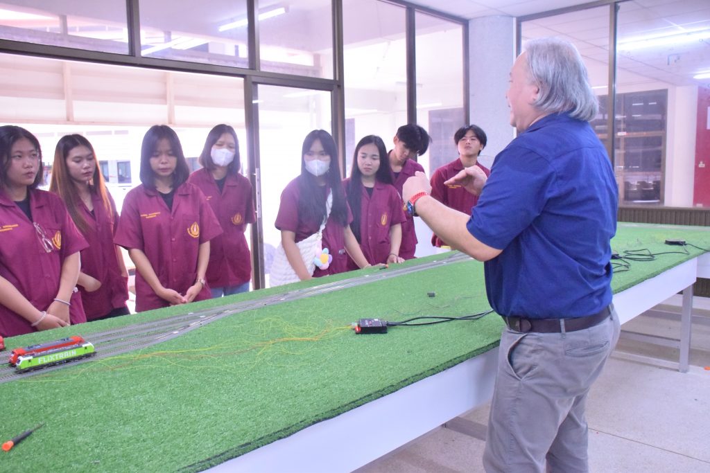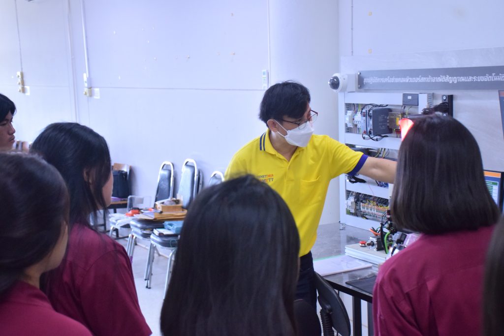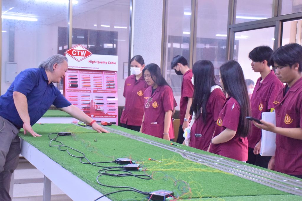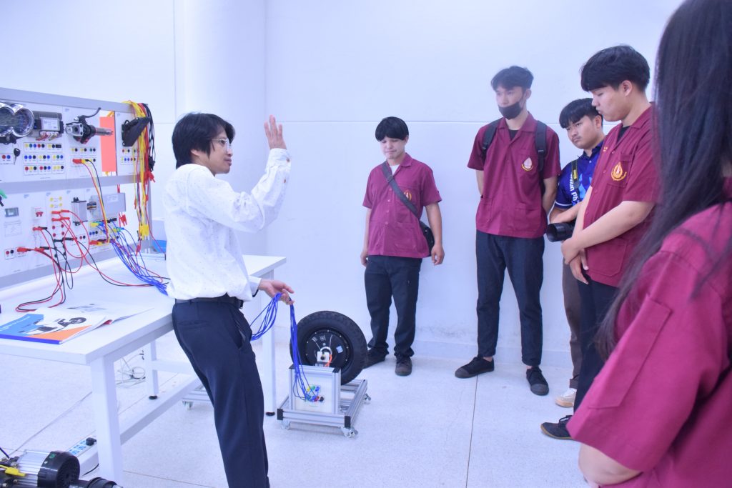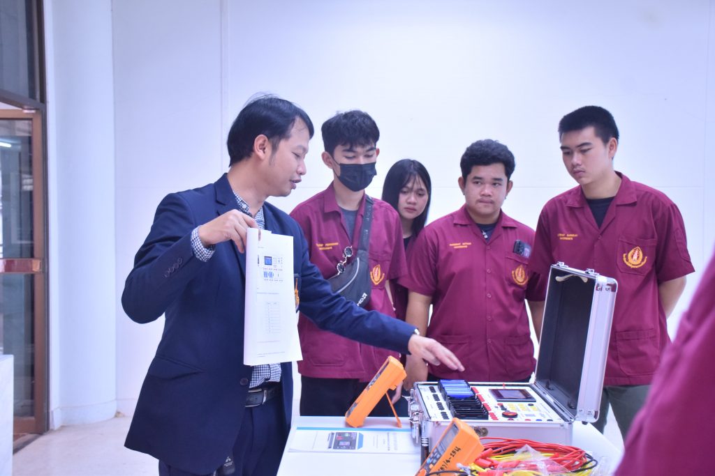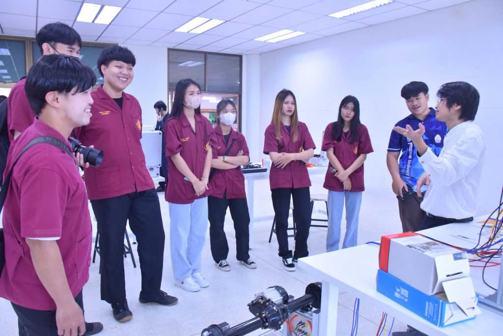 วันที่ 6 พฤศจิกายน 2566 คณะอุตสาหกรรมเเละเทคโนโลยี มทร.อีสาน วิทยาเขตสกลนคร นำโดย ผศ.ดร.สัณหวัจน์ ทองแดง รองคณบดีฝ่ายวิชาการและวิจัย พร้อมด้วยคณะผู้บริหาร คณาจารย์ และเจ้าหน้าที่ ร่วมต้อนรับคณะศึกษาดูงาน จากวิทยาลัยเทคโนโลยีอุตสาหกรรม ศรีสงคราม มหาวิทยาลัยนครพนม ในโอกาสเข้าเยี่ยมชมและฟังบรรยายการจัดการเรียนการสอน นิทรรศผลงานนวัตกรรม ซึ่งประกอบด้วย นวัตกรรมการพัฒนาระบบตรวจจับหมวกนิรภัยในพื้นที่ควบคุมด้วยเทคโนโลยี AIoT นวัตกรรม Smart Trash Bin for Smart City : STB4SC นวัตกรรมด้านยานยนต์ไฟฟ้า EV และนวัตกรรมด้านไฟฟ้าระบบราง โดยได้รับเกียรติจาก ผศ.ดร.สัณหวัจน์ ทองแดง ว่าที่ร้อยตรีกฤษฎา บุญมีวิเศษ ผศ.ดร.จีระพงศ์ ศรีวิชัย ผศ.คมกฤษณ์ ศรีสุวรรณ์ อาจารย์เมธา ทัศคร คุณธานีรัตน์ ร่มเกษ คุณเยาวภา ราชคำ และ คุณอภิชาต ราชคำ เป็นวิทยากร