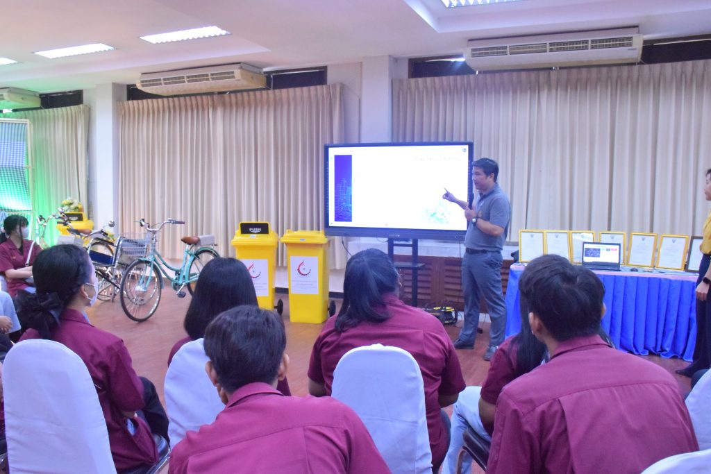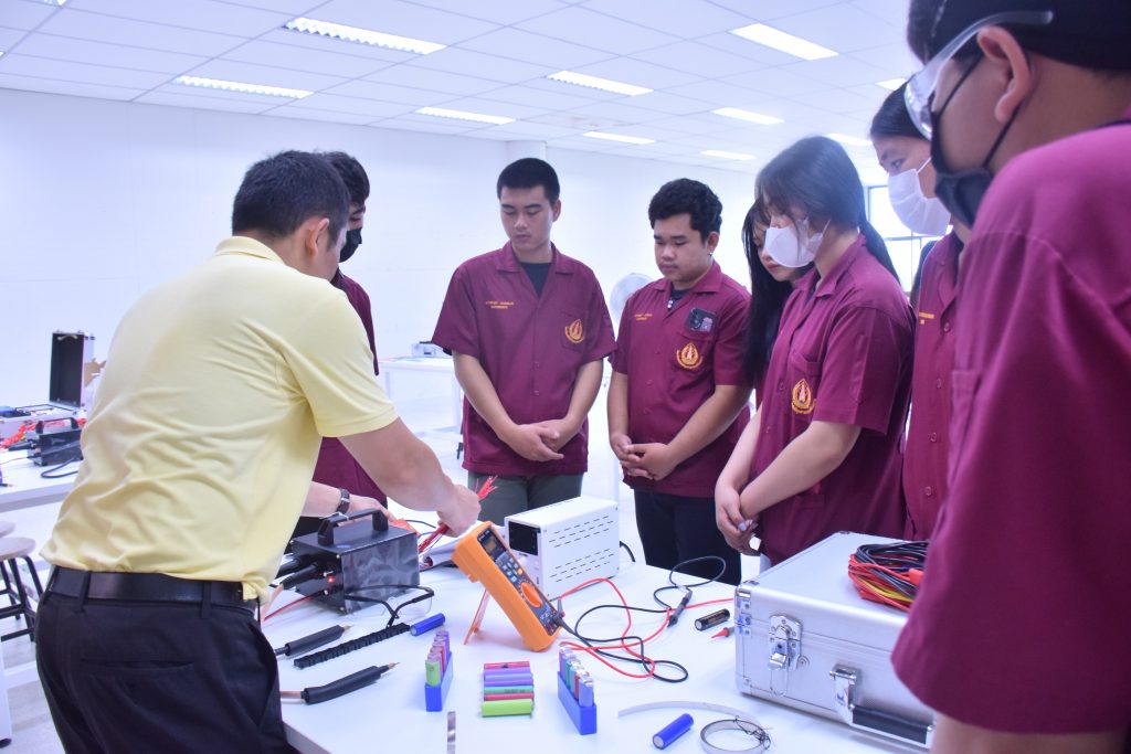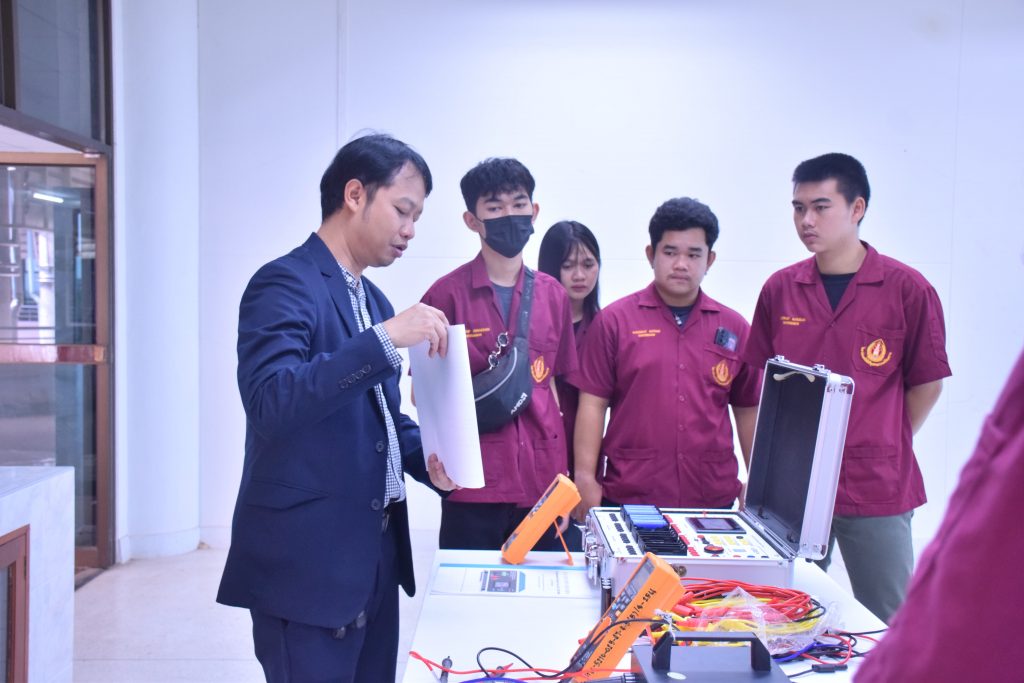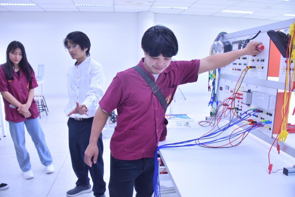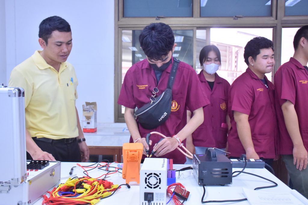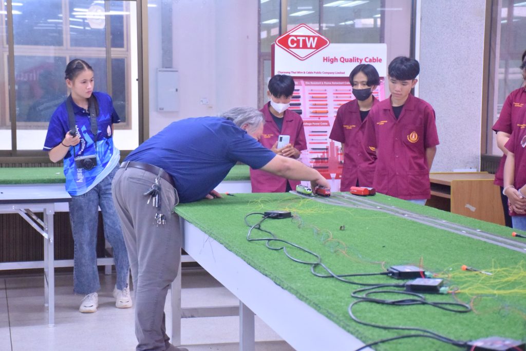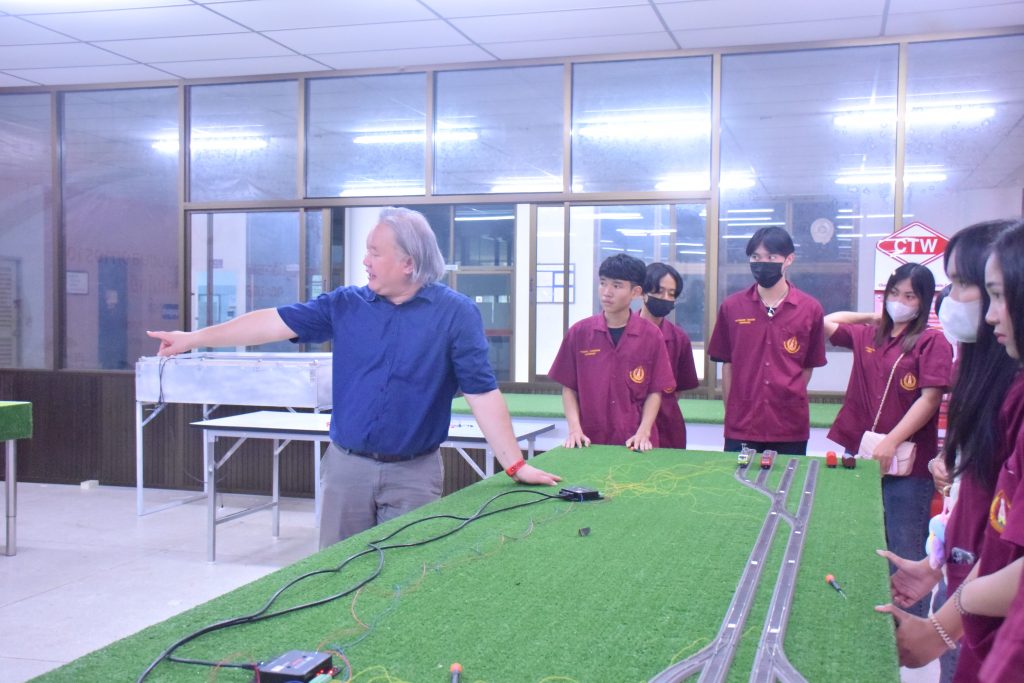 วันที่ 6 พฤศจิกายน 2566 คณะอุตสาหกรรมเเละเทคโนโลยี มทร.อีสาน วิทยาเขตสกลนคร นำโดย ผศ.ดร.สัณหวัจน์ ทองแดง รองคณบดีฝ่ายวิชาการและวิจัย พร้อมด้วยคณะผู้บริหาร คณาจารย์ และเจ้าหน้าที่ ร่วมต้อนรับคณะศึกษาดูงาน จากวิทยาลัยเทคโนโลยีอุตสาหกรรม ศรีสงคราม มหาวิทยาลัยนครพนม ในโอกาสเข้าเยี่ยมชมและฟังบรรยายการจัดการเรียนการสอน นิทรรศผลงานนวัตกรรม ซึ่งประกอบด้วย นวัตกรรมการพัฒนาระบบตรวจจับหมวกนิรภัยในพื้นที่ควบคุมด้วยเทคโนโลยี AIoT นวัตกรรม Smart Trash Bin for Smart City : STB4SC นวัตกรรมด้านยานยนต์ไฟฟ้า EV และนวัตกรรมด้านไฟฟ้าระบบราง โดยได้รับเกียรติจาก ผศ.ดร.สัณหวัจน์ ทองแดง ว่าที่ร้อยตรีกฤษฎา บุญมีวิเศษ ผศ.ดร.จีระพงศ์ ศรีวิชัย ผศ.คมกฤษณ์ ศรีสุวรรณ์ อาจารย์เมธา ทัศคร คุณธานีรัตน์ ร่มเกษ คุณเยาวภา ราชคำ และ คุณอภิชาต ราชคำ เป็นวิทยากร
