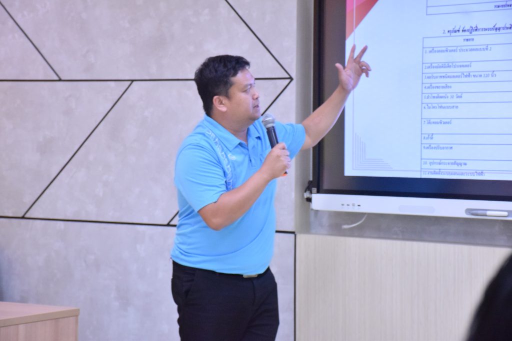 วันที่ 14 พฤศจิกายน 2566 คณะอุตสาหกรรมและเทคโนโลยี นำโดย ผศ.ดร.สุริยา แก้วอาษา คณบดีคณะอุตสาหกรรมและเทคโนโลยี อาจารย์เดือนรุ่ง สุวรรณโสภา รองคณบดีฝ่ายแผนและประกันคุณภาพการศึกษา จัดกิจกรรมนำเสนอ Concept Idea การเสนอขอโครงการงบลงทุน (ครุภัณฑ์-สิ่งก่อสร้าง) เชิงบูรณาการ โดยมีวัตถุประสงค์เพื่อให้อาจารย์ บุคลากร ได้นำเสนอแนวคิด ทิศทางการขับเคลื่อนยุทธศาสตร์มหาวิทยาลัยฯ บูรณาการกับภารกิจหลักของคณะ ทั้งด้านการจัดการเรียนการสอน การวิจัย และบริการวิชาการ โดยกิจกรรมเป็นรูปแบบการแลกเปลี่ยนเรียนรู้อย่างมีส่วนร่วมในภาพของคณะอุตสาหกรรมและเทคโนโลยี ในการนี้ได้รับความสนใจจากอาจารย์บุคลากรเข้าร่วมกิจกรรมและแลกเปลี่ยนเรียนรู้ในทุกสาขาวิชา