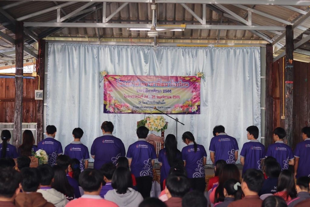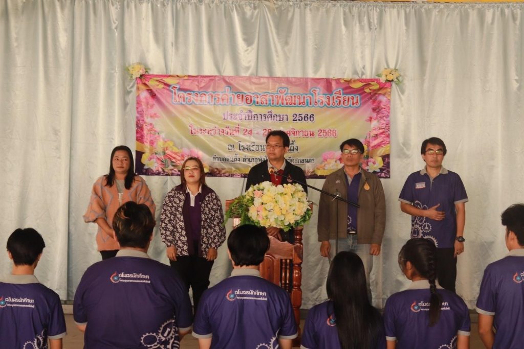 วันที่ 25 – 26 พฤศจิกายน 2566 สโมสรนักศึกษาคณะอุตสาหกรรมและเทคโนโลยี มทร.อีสาน วิทยาเขตสกลนคร จัดโครงการค่ายอาสาพัฒนาโรงเรียน ณ โรงเรียนบ้านต้นผึ้ง อำเภอพังโคน จังหวัดสกลนคร เพื่อให้นักศึกษามีส่วนร่วมในการพัฒนาโรงเรียน พัฒนาศักยภาพความเป็นผู้นำที่มีคุณธรรม จริยธรรม สร้างจิตสำนึกที่ดีในการเสียสละรับใช้สังคม ตลอดจนเป็นการบริการวิชาการสร้างประโยชน์ต่อชุมชนและสังคม โดยมีกิจกรรมมอบทุนการศึกษาให้กับนักเรียนโรงเรียนบ้านต้นผึ้ง จำนวน 10 ทุน รวมจำนวน 5,000 บาท ในการนี้ ผศ.ดร.สุริยา แก้วอาษา คณบดีคณะอุตสาหกรรมและเทคโนโลยี ให้เกียรติเป็นประธานในพิธีเปิดโครงการ โดยมีผู้อำนวยการโรงเรียนบ้านต้นผึ้ง คณะครู ผู้ใหญ่บ้าน และคณะผู้นำชุมชน เข้าร่วมโครงการครั้งนี้ด้วย