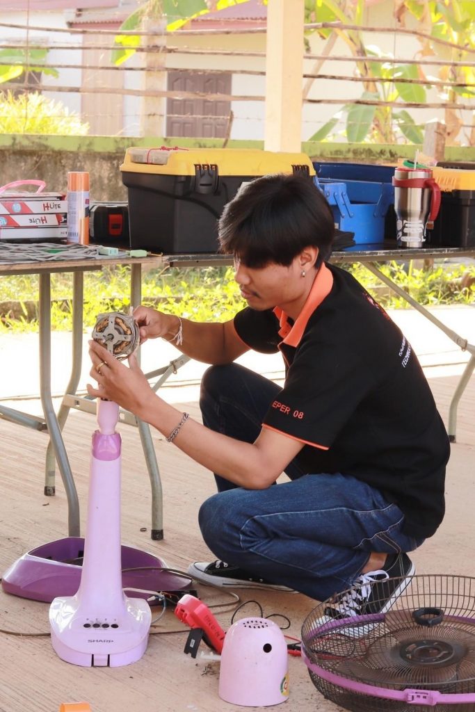 ในวันที่ 24 – 25 พฤศจิกายน 2566 คณะอุตสาหกรรมและเทคโนโลยี จัดโครงการค่ายอาสาพัฒนาทักษะวิชาชีพ ณ โรงเรียนบ้านต้นผึ้ง อำเภอพังโคน จังหวัดสกลนคร โดยมีวัตถุประสงค์เพื่อส่งเสริมทักษะการพัฒนาทักษะด้านวิชาชีพ ส่งเสริมทักษะการใช้ชีวิตร่วมกับผู้อื่น มีความรับผิดชอบต่อหน้าที่ มีคุณธรรมจริยธรรม โดยผู้เข้าร่วมโครงการเป็นกลุ่มนักศึกษาโครงการทุนนวัตกรรมวิชาชีพชั้นสูงกองทุนเพื่อความเสมอภาคทางการศึกษา (กสศ.) กลุ่มแผน 5 ปี (ปวช.) รุ่น 2 จำนวน 27 คน ในการนี้ ผศ.ดร.สุริยา แก้วอาษา คณบดีคณะอุตสาหกรรมและเทคโนโลยี ให้เกียรติ เป็นประธานในพิธีเปิดโครงการ โดยมีคณาจารย์ และนักศึกษา คณะอุตสาหกรรมและเทคโนโลยี พร้อมด้วยผู้อำนวยการโรงเรียนบ้านต้นผึ้ง คณะครู ผู้ใหญ่บ้าน และคณะผู้นำชุมชน เข้าร่วมโครงการครั้งนี้ด้วย