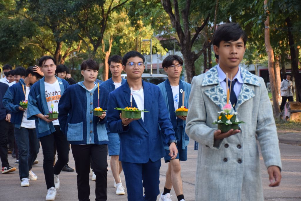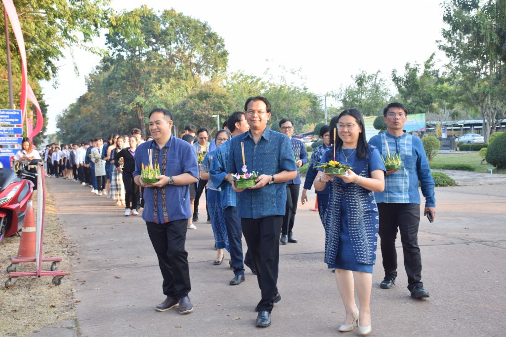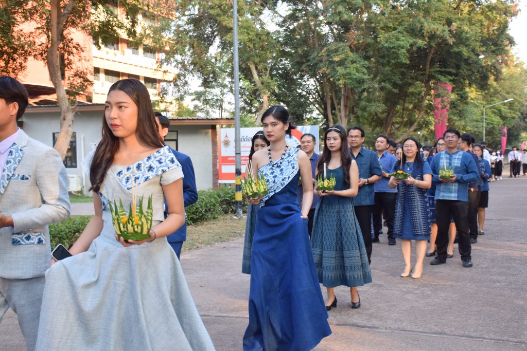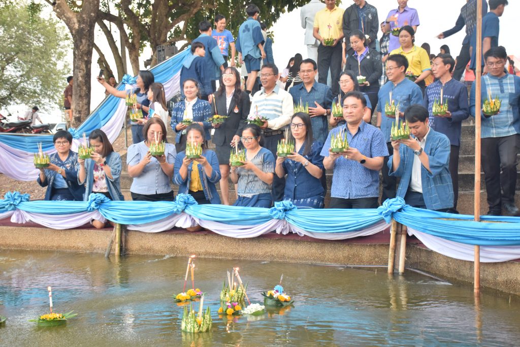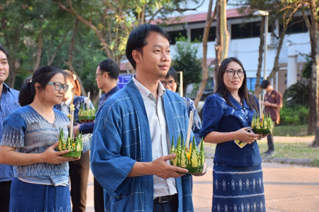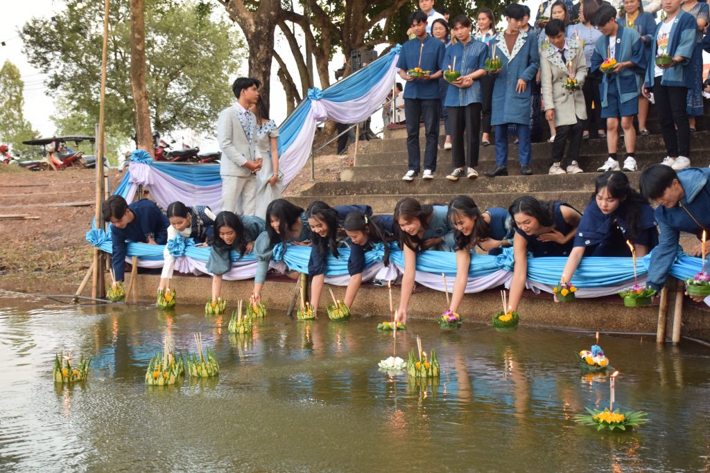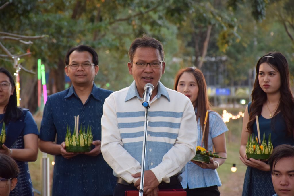 วันที่ 27 พฤศจิกายน 2566 สโมสรนักศึกษาคณะอุตสาหกรรมและเทคโนโลยี จัดโครงการอนุรักษ์ประเพณีไทย “ลอยกระทง” ประจำปีการศึกษา 2566 ณ บริเวณท่าน้ำหน้าอาคารสำนักงานวิทยาเขตสกลนคร เพื่อส่งเสริมให้นักศึกษาได้ตระหนักถึงการอนุรักษ์วัฒนธรรมประเพณีอันดีงามของไทย ร่วมกันสืบสานประเพณีวันลอยกระทง ทั้งนี้ ผศ.ดร.สุริยา แก้วอาษา พร้อมด้วย คณะผู้บริหาร คณาจารย์ เจ้าหน้าที่ และนักศึกษา ร่วมสวมชุดผ้าไทย ผ้าย้อมคราม เดินขบวนเข้าร่วมงานลอยกระทงในปีนี้ เพื่อส่งเสริมการแต่งชุดผ้าไทย และสืบสานภูมิปัญญาผ้าย้อมครามของจังหวัดสกลนคร ในการนี้ ผศ.น.สพ.ดร.ชเวง สารคล่อง รองอธิการบดีประจำวิทยาเขตสกลนคร ให้เกียรติเป็นประธานในพิธีเปิดโครงการ พร้อมทั้งร่วมลอยกระทงในครั้งนี้ด้วย